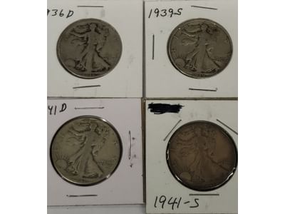 143 4 Walking Liberty Half-Dollars (1936-D, 1939-S, 1941-D, 1941-S)