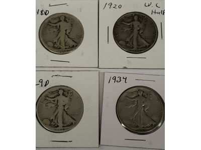 145 4 Walking Liberty Half-Dollars (1918-D, 1920, 1929-D, 1934)