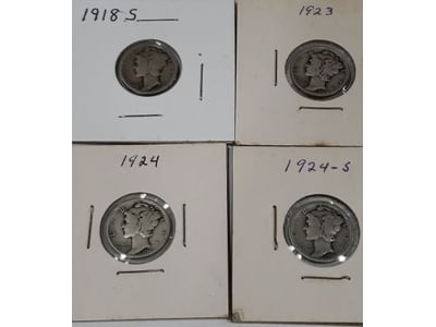 161 4 Mercury Dimes (1918-S, 1923, 1924, 1924-S)