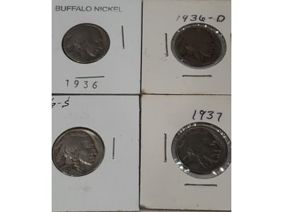 164 4 Buffalo Nickels (1936, 1936-D, 1936-S, 1937)