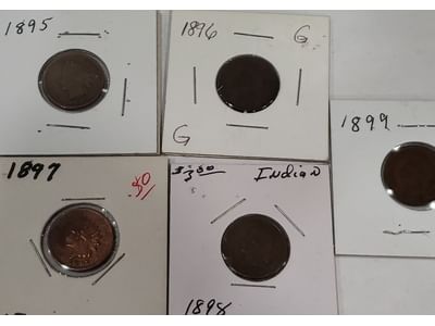 179 5 Indian Head Pennies (1895, 1896, 1897, 1898, 1899)