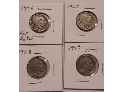 165 4 Buffalo Nickels (1928, 1929, 1934, 1935)