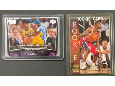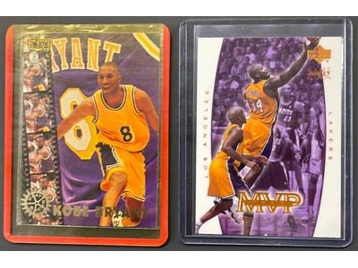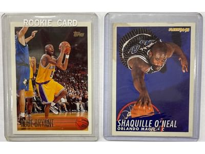530 2 basketball cards - Kobe Bryant Rookie Card, Topps 96-97 - Shaquille O’Neal, Fleer 94-95