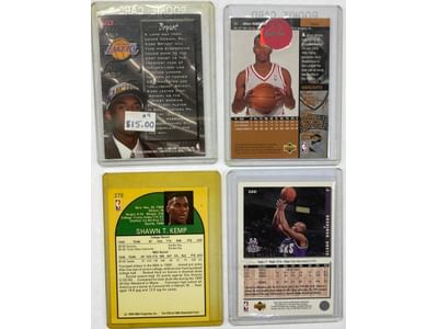 527 4 Rookie basketball cards - Kobe Bryant, Fleer - Allen Iverson, Upper Deck - Shawn Kemp, NBA Hoops - Glenn Robinson, Collector’s Choice