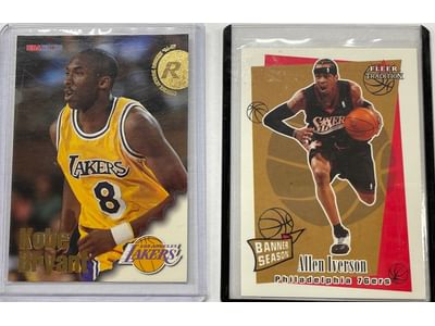 528 2 basketball cards - Kobe Bryant, Rookie, NBAHOOPS 86-97 - Allen Iverson, Fleer 03-04