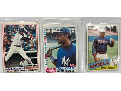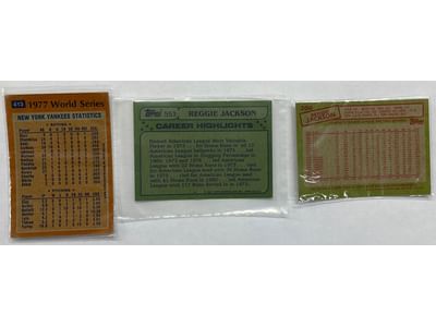 537 3 Reggie Jackson baseball cards - #413 Topps 1978 World Series - #551 1982 Topps - Angels, #200 Topps 1985