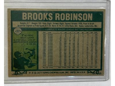 542 1 Brooks Robinson baseball card, Orioles, #285 Topps 1977