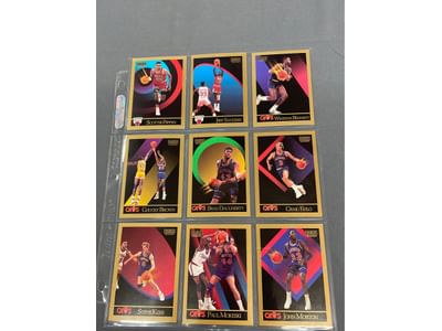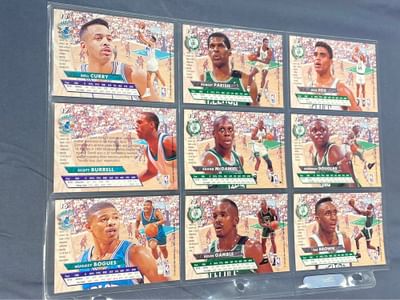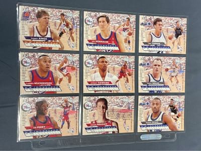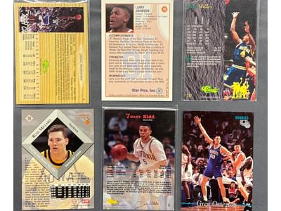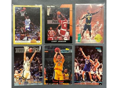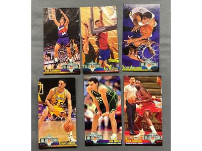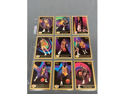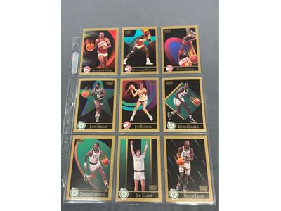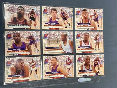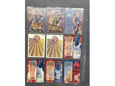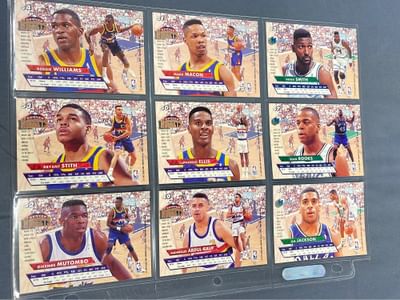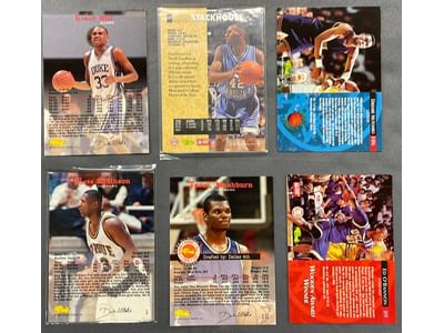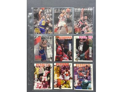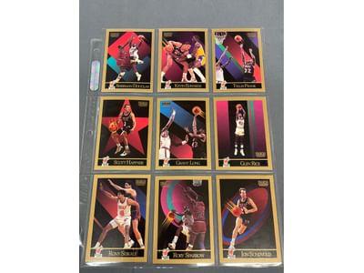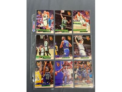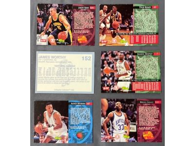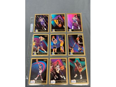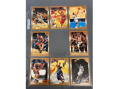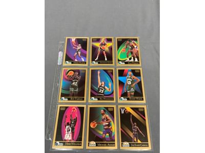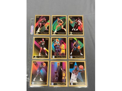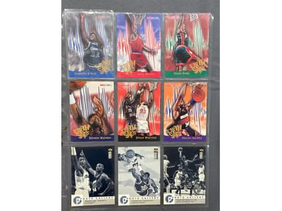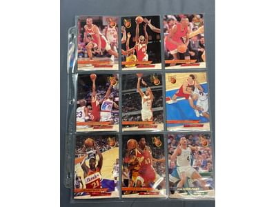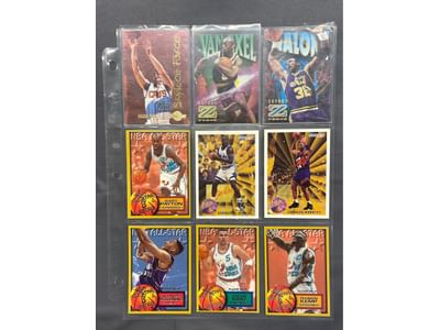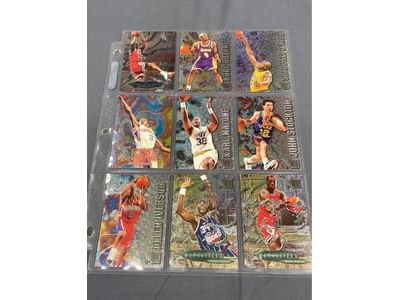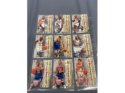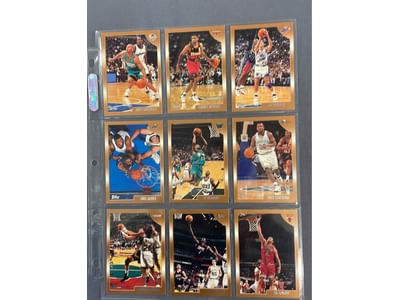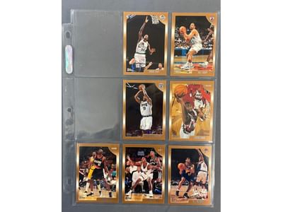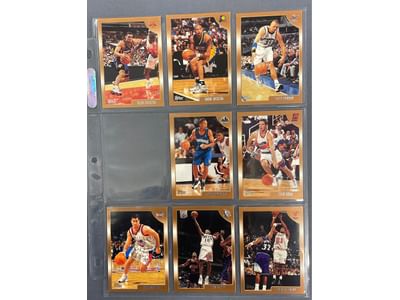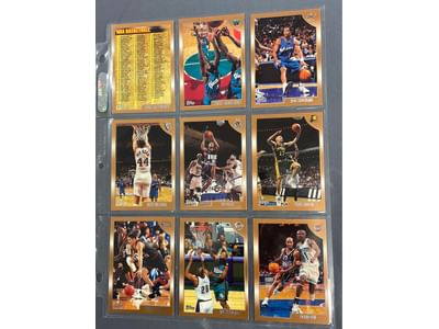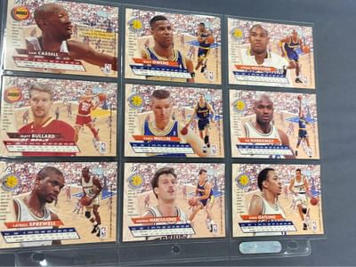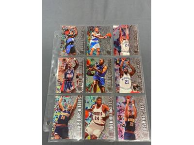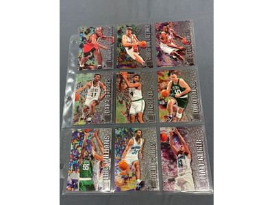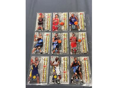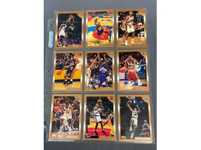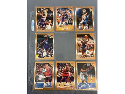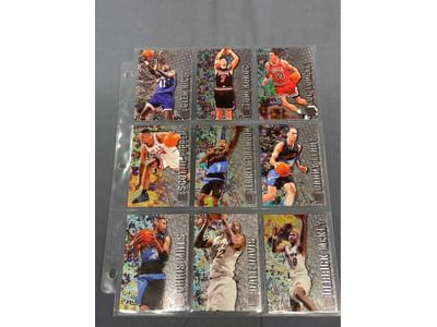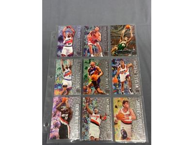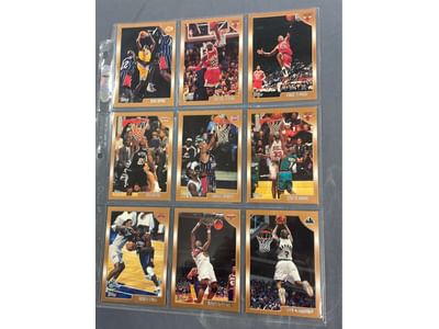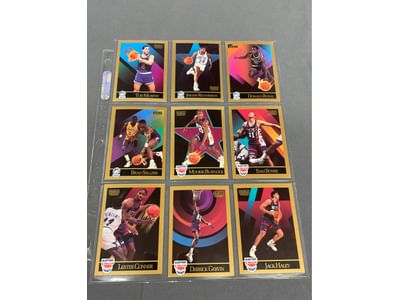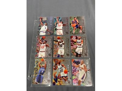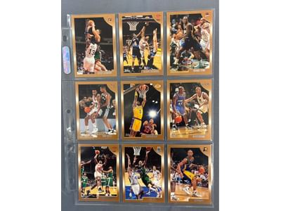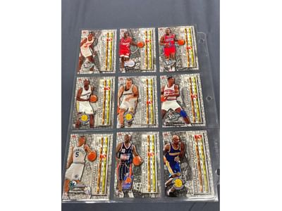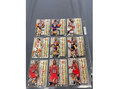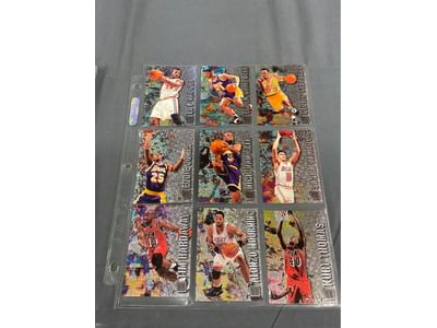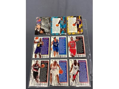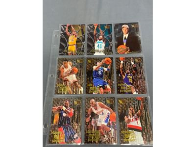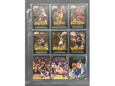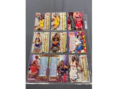 604 9 Card Assortment - Fleer 97-98 Million Dollas Moments , inc., Allen Iverson, Kobe Bryant, Shawn Kemp - Skybix 95-96 Top This, inc., Glenn Robinson, Isaiah Rider, Jason Kidd