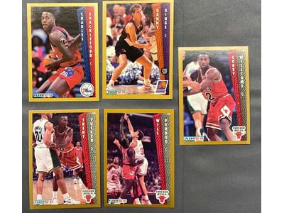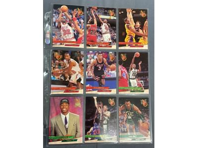 595 9 cards- Upper Deck Scoring Threats 92-93 - Jordan, World Com - Fleer 94-95 Team Leaders - Stadium Club 94-95 College Teammates