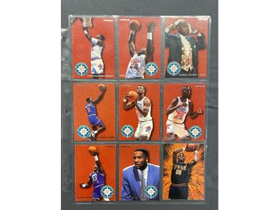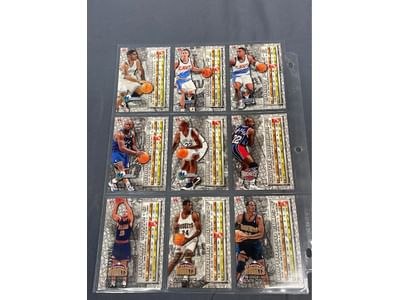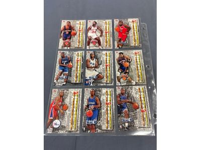 608 9 Card Assortment of Specialty Cards, inc., Stephon Marbury, Jerry Stackhouse, and an Allen Iverson PowerDeck card for computer