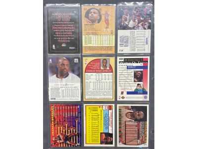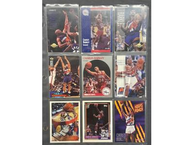 605 9 Card Assortment - NBAHOOPS 91-92, Jordan, Bird, Magic - Topps 93-94 Future Scoring Leader, inc, Charles Barkley - Topps 94-95 Paint Patrol, Chris Webber, Hakeem Olajuwon