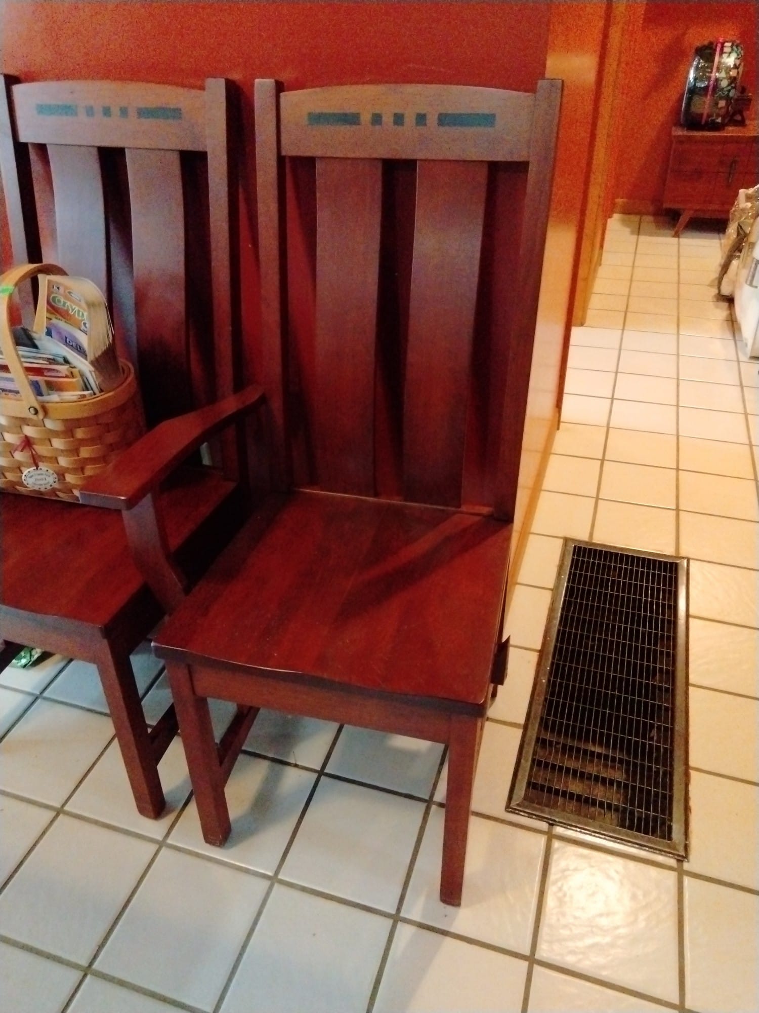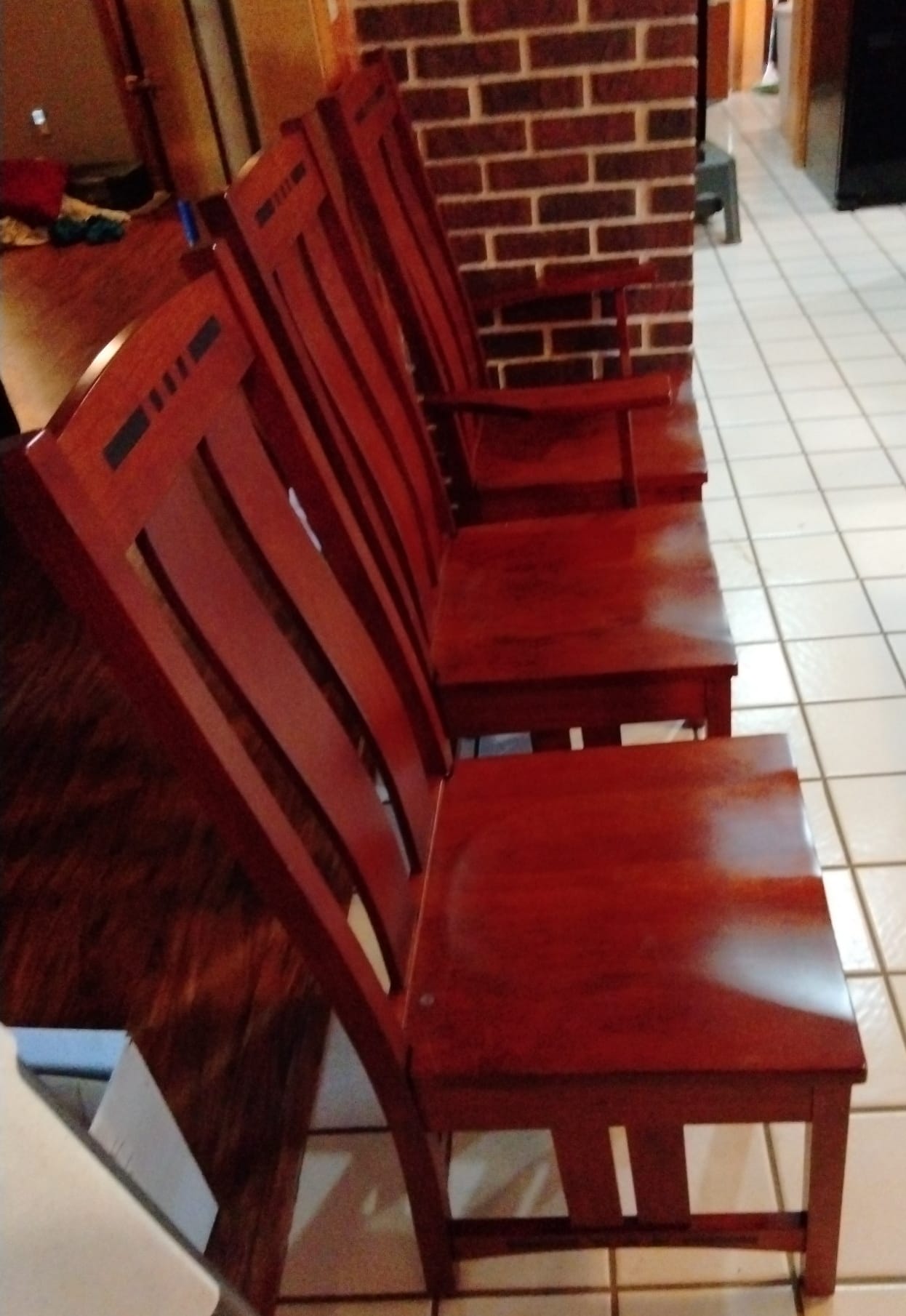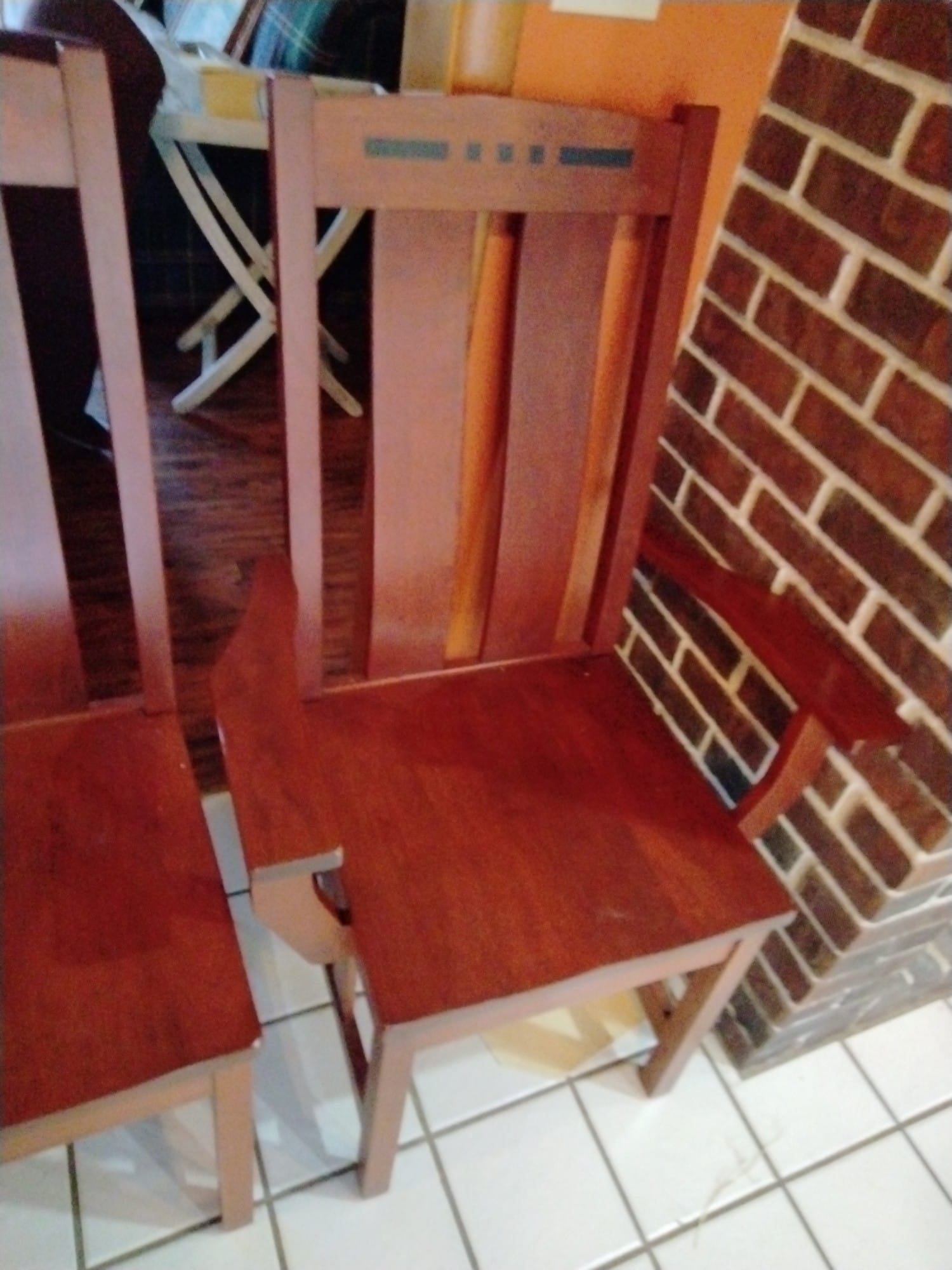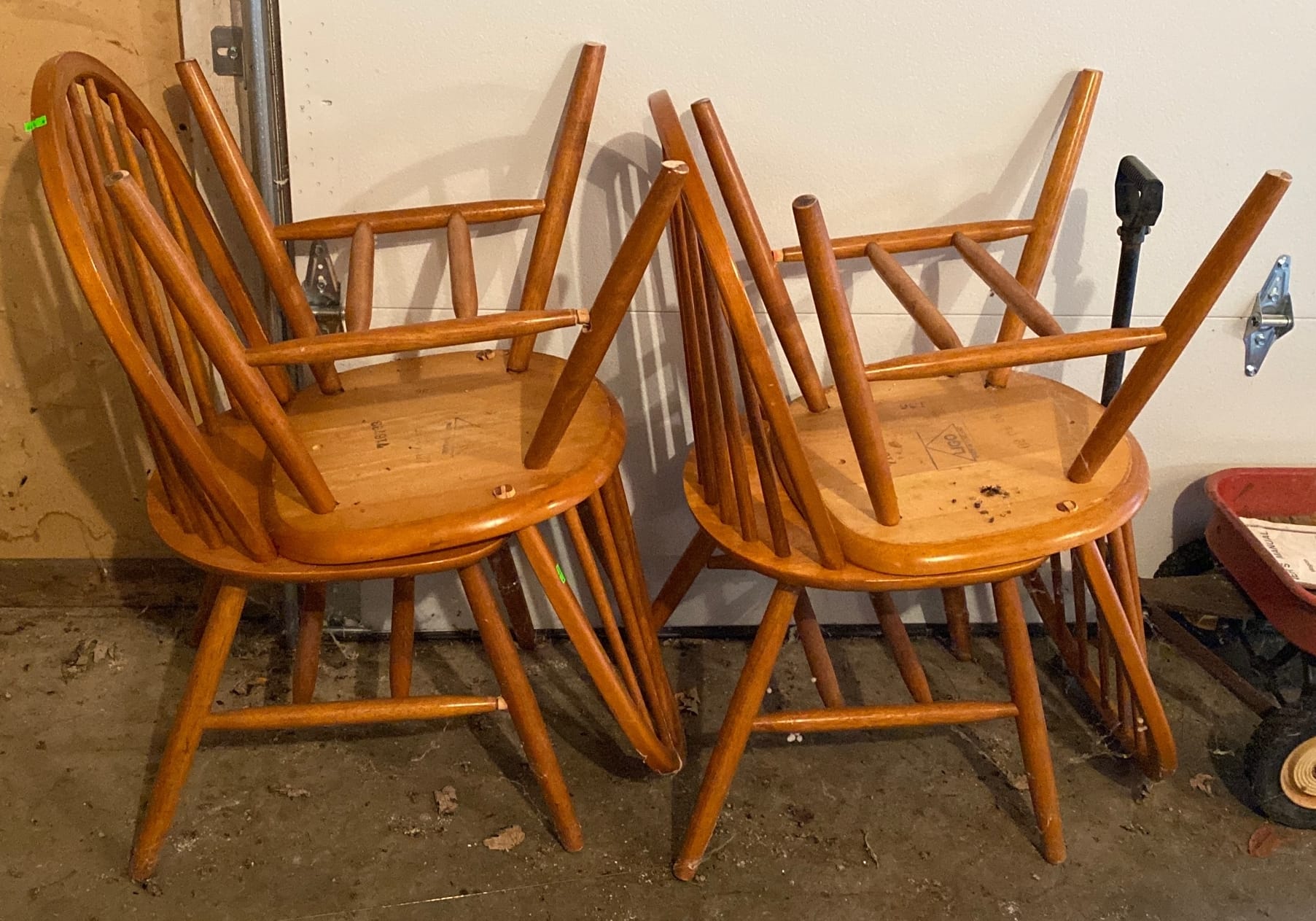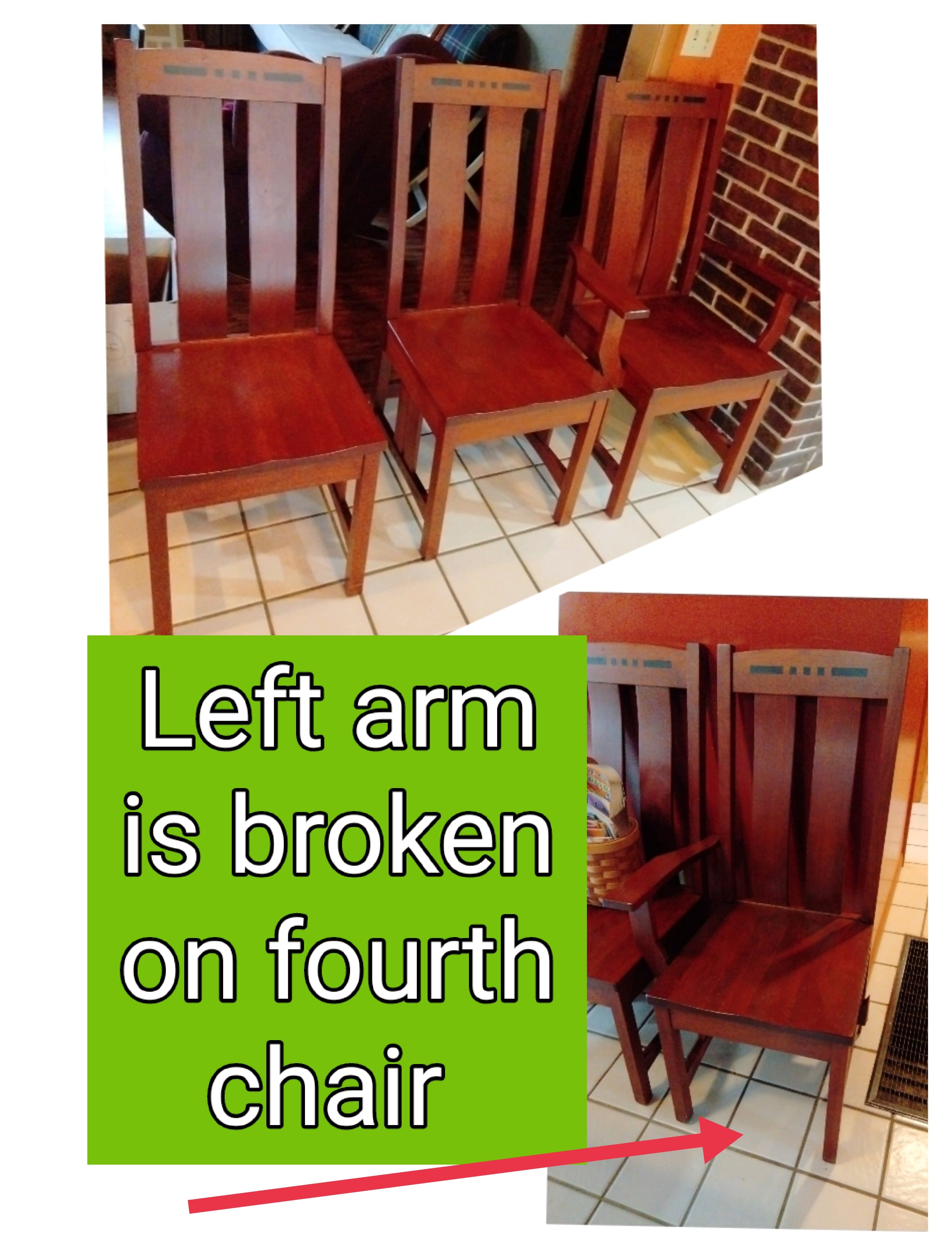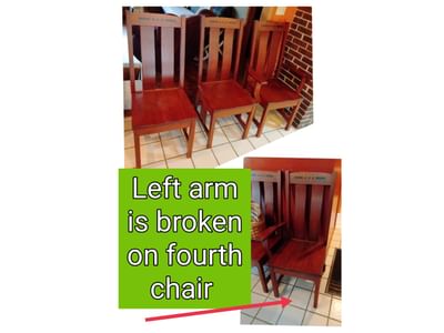 101 4 - Dining chairs, one chair is damaged arm is broke
