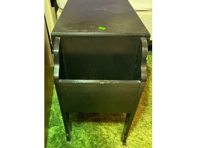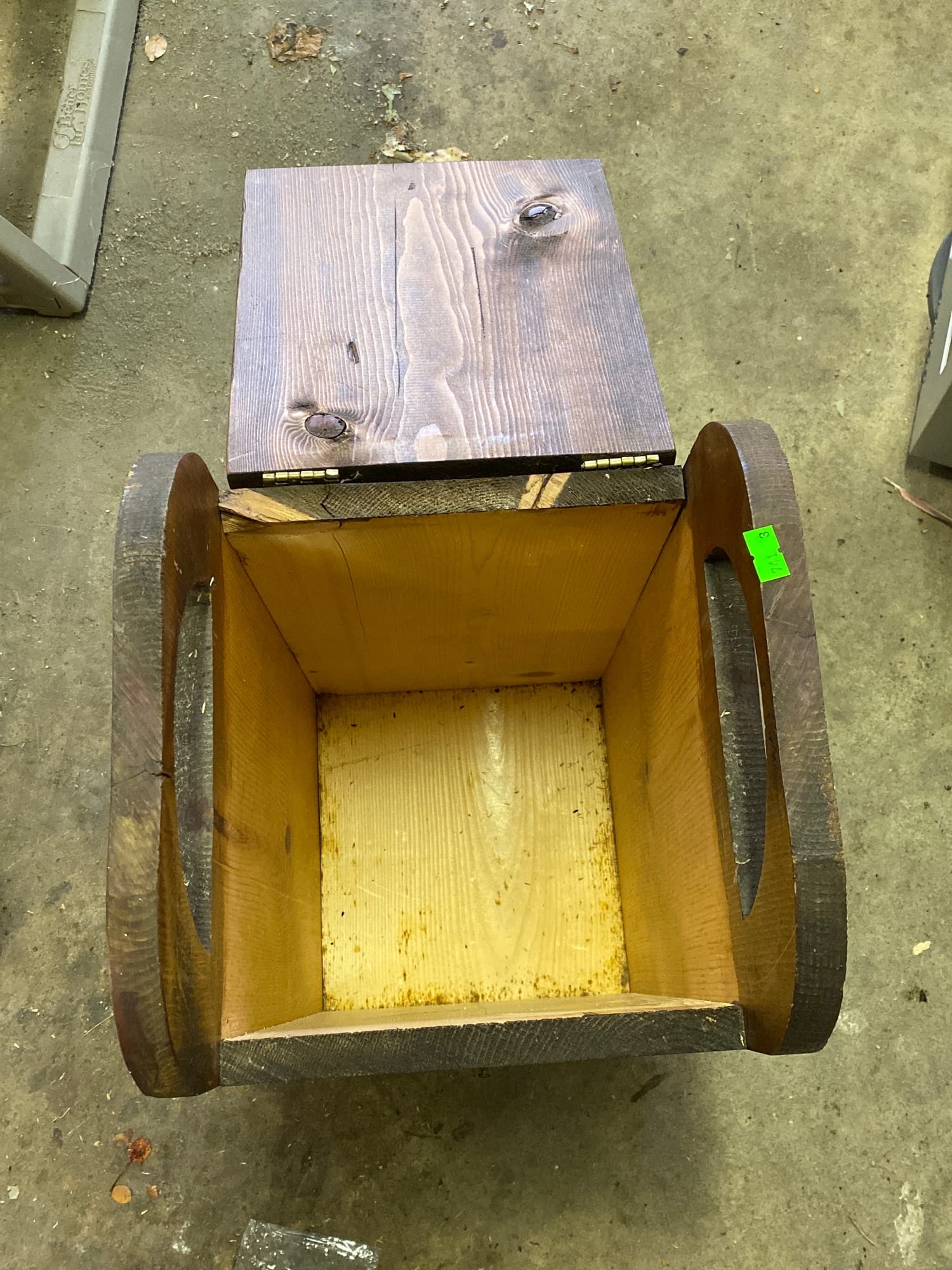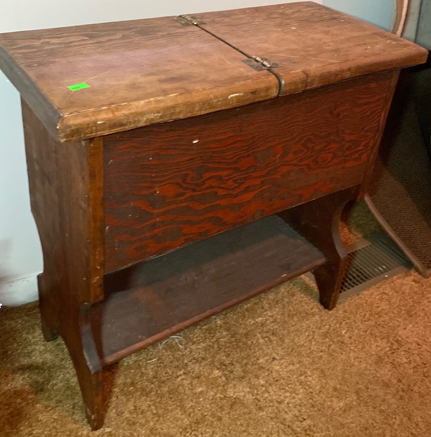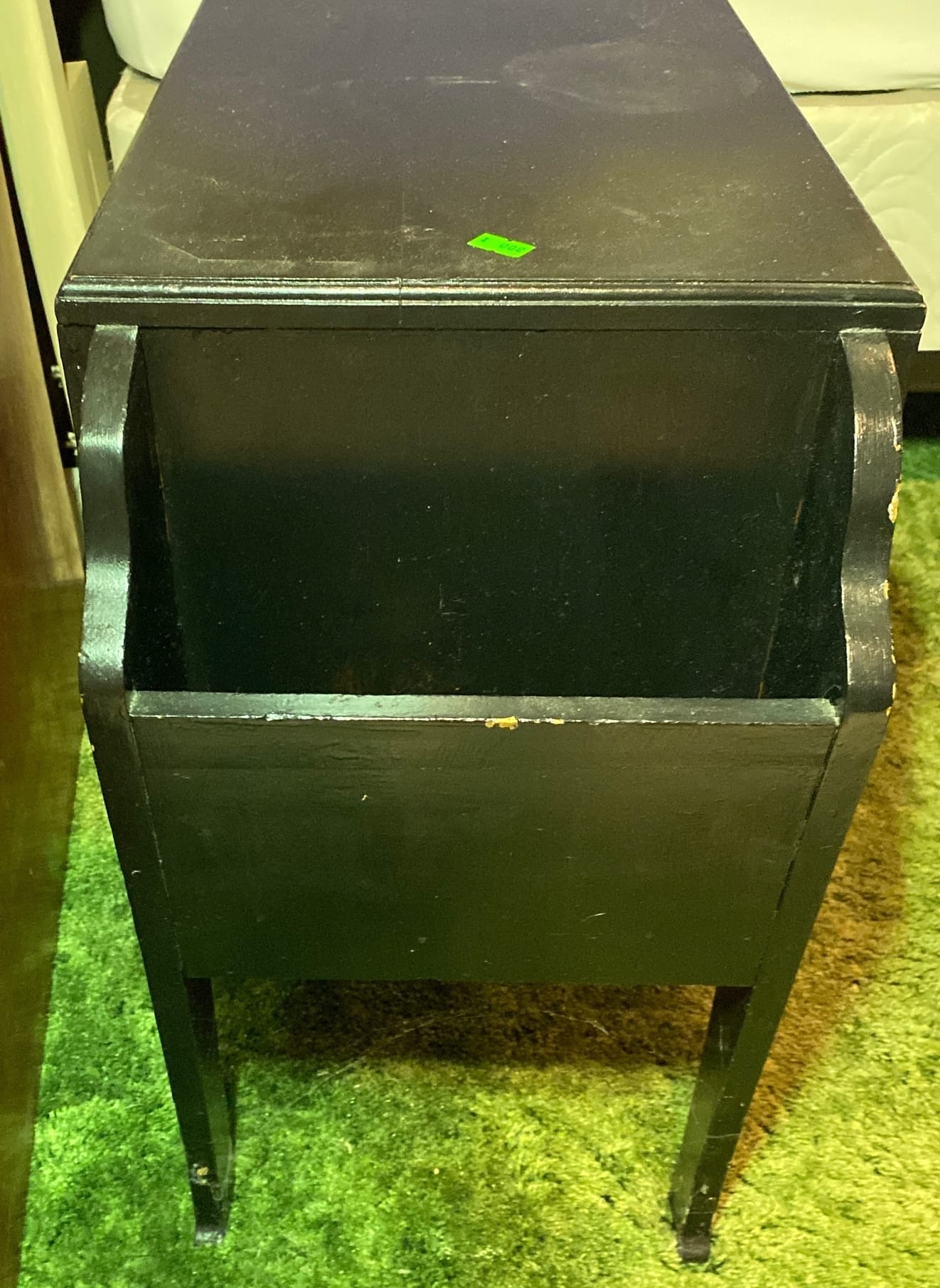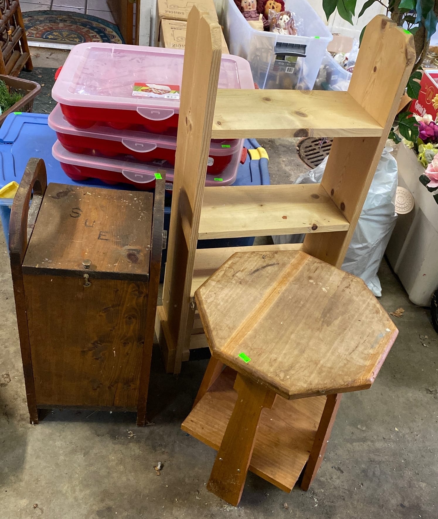 741 3 - Wood shelf 16x7x36, storage box stained 11x24x10 & side stand finish wear 15x19
