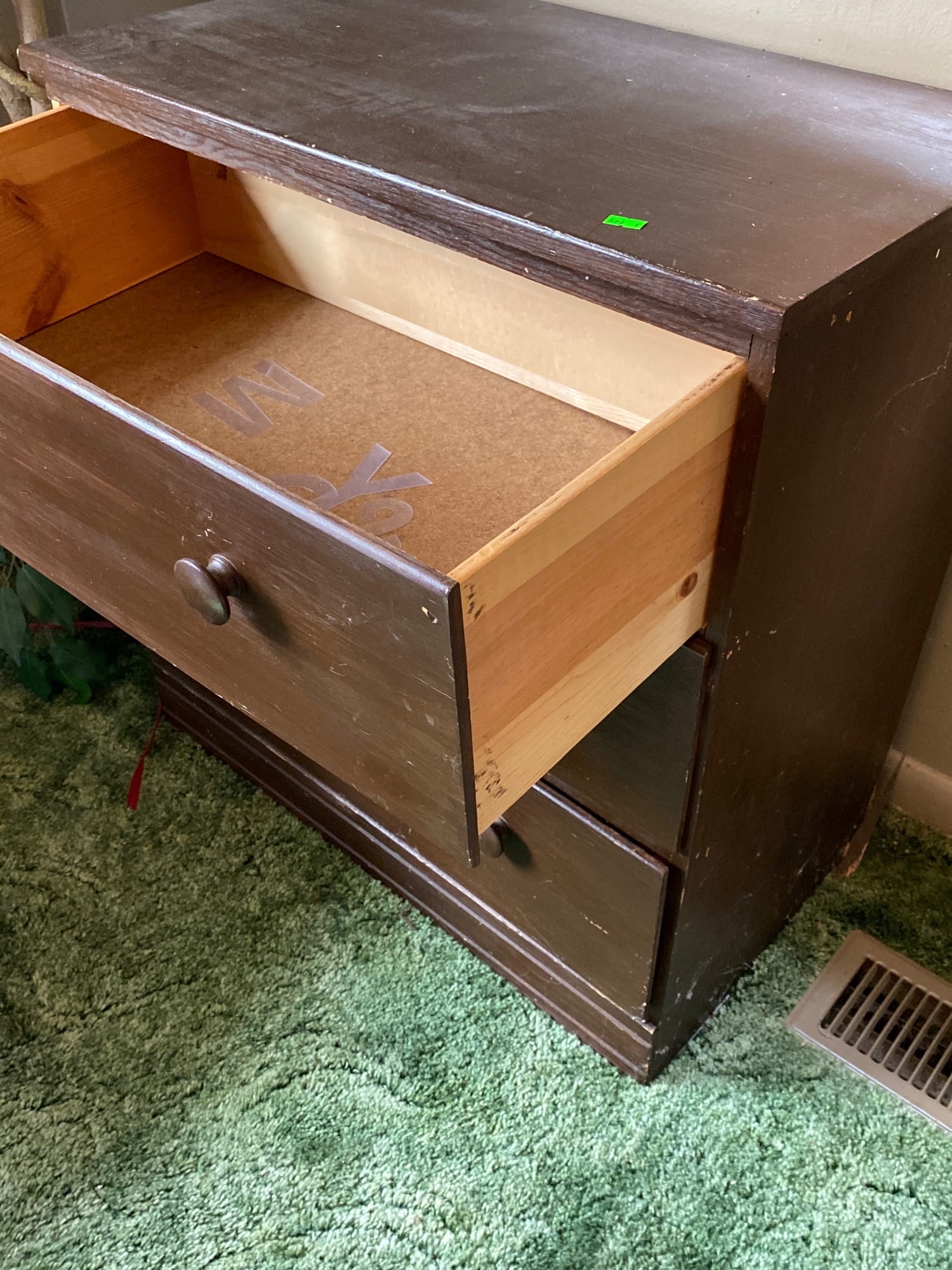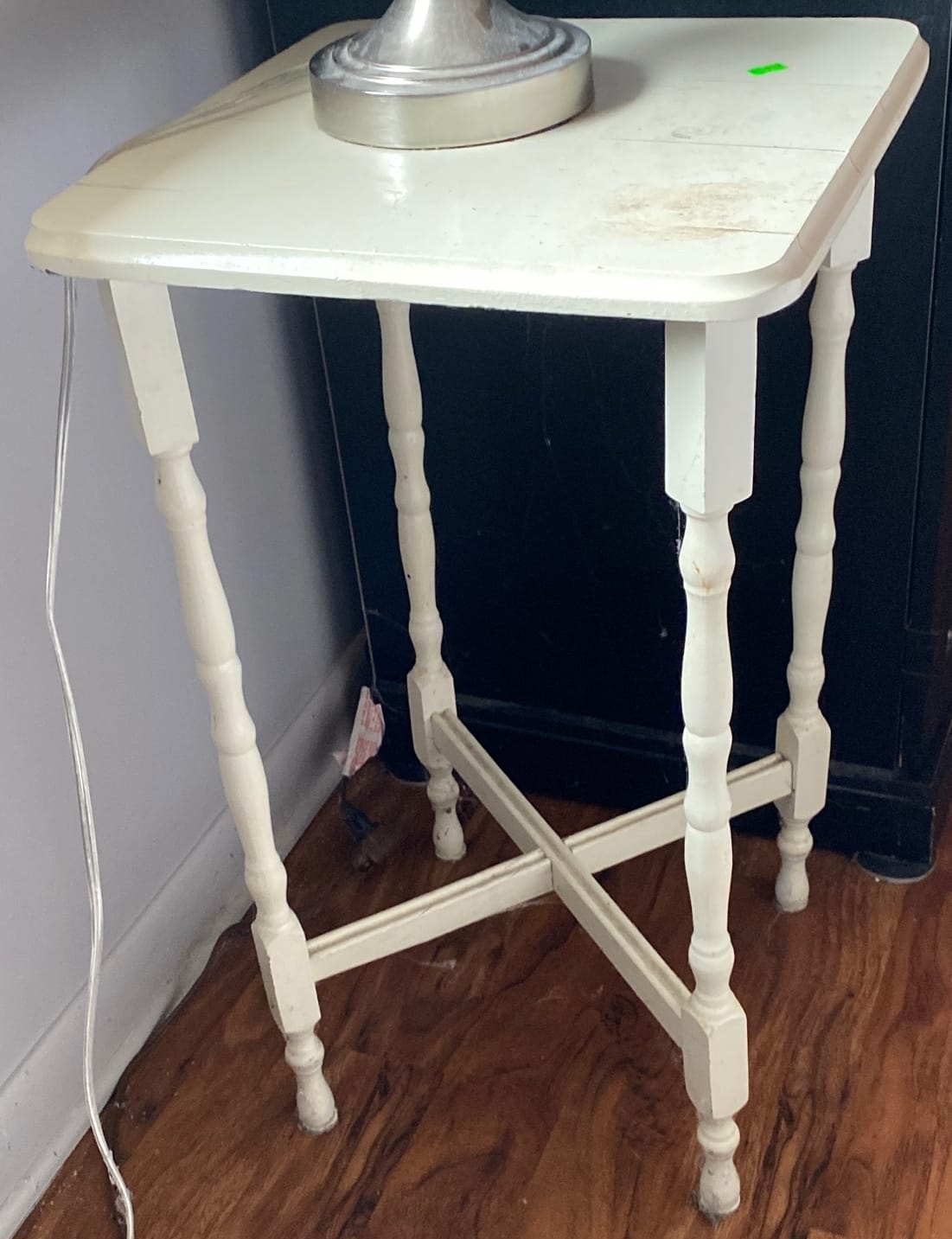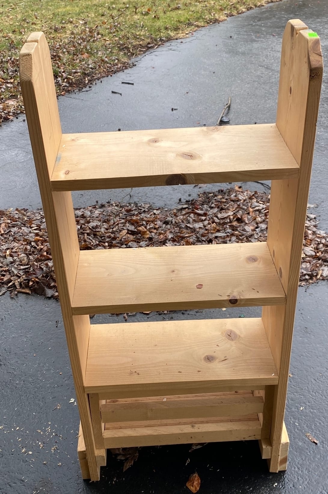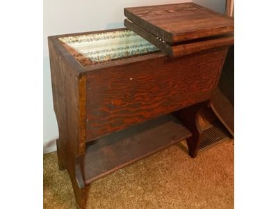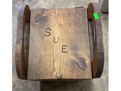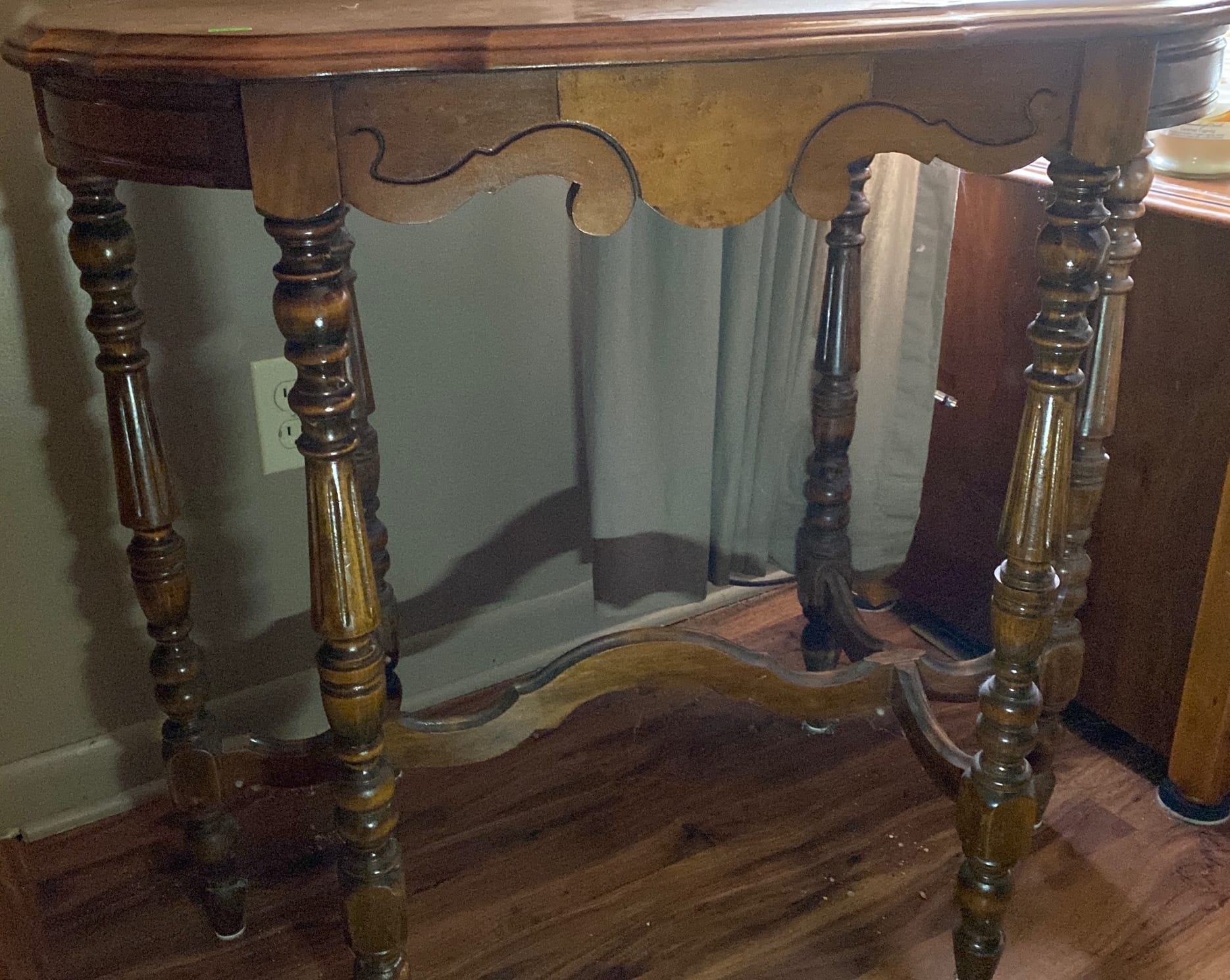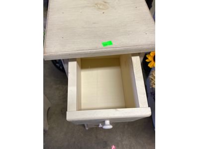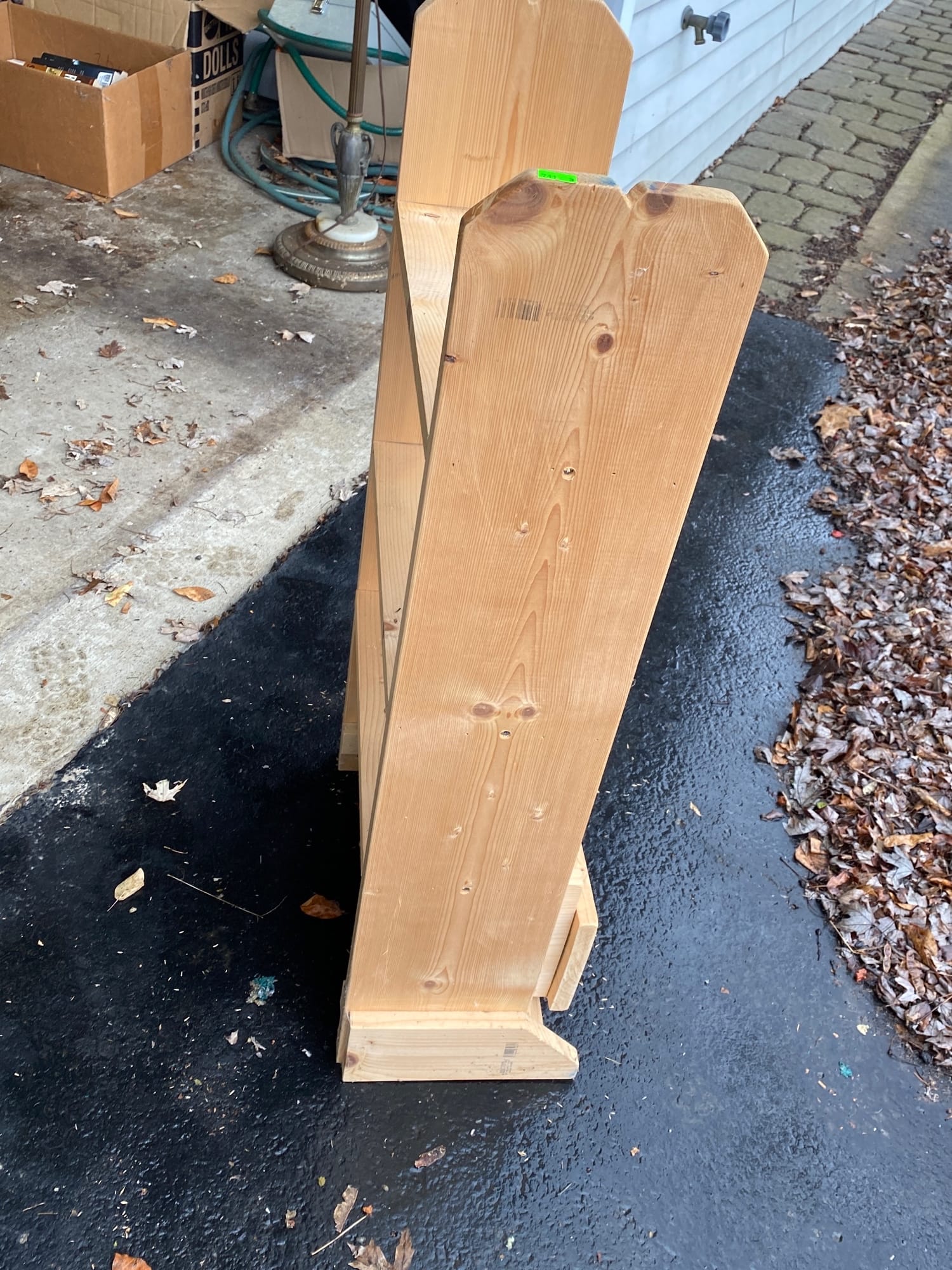 741 3 - Wood shelf 16x7x36, storage box stained 11x24x10 & side stand finish wear 15x19