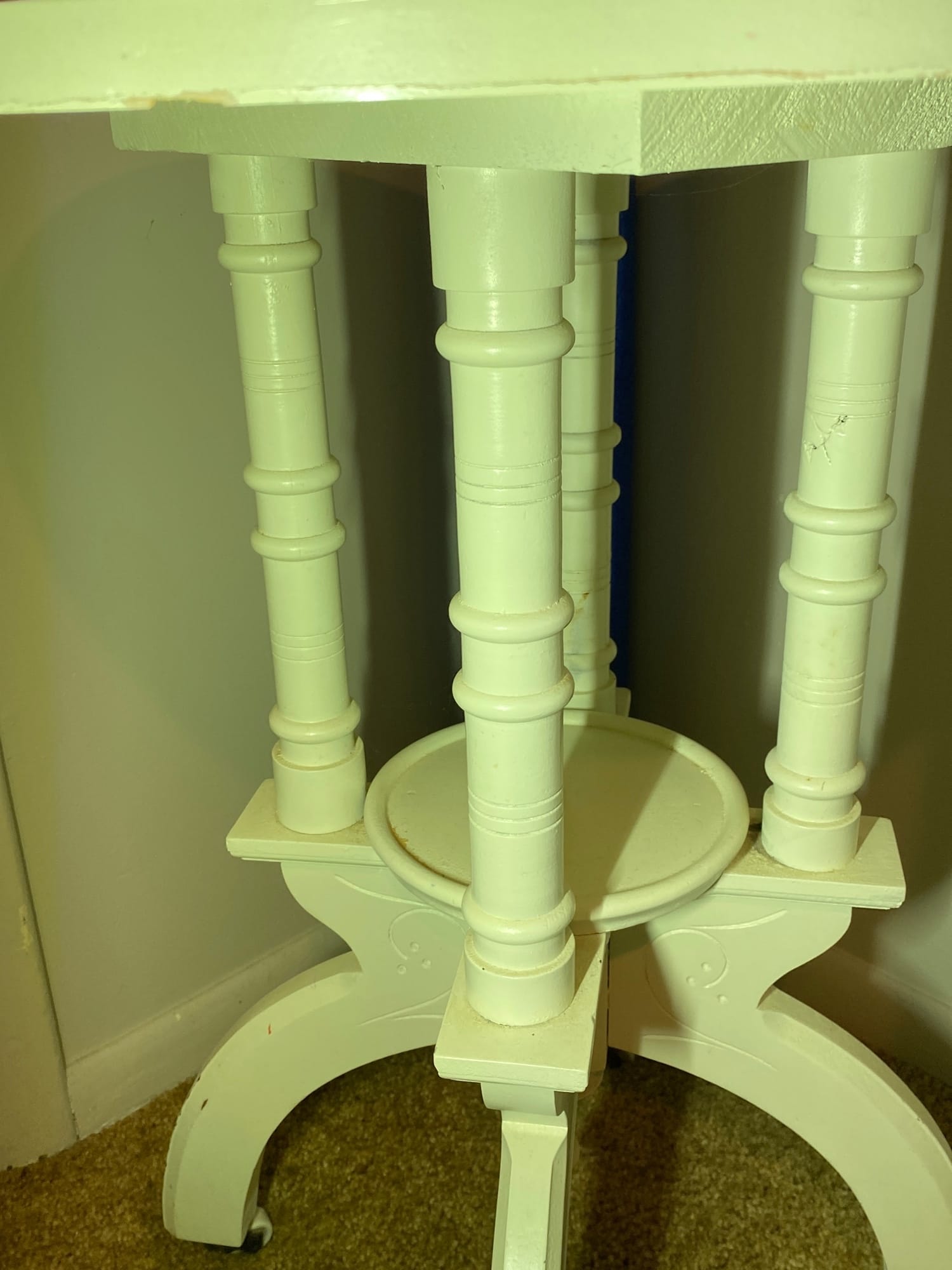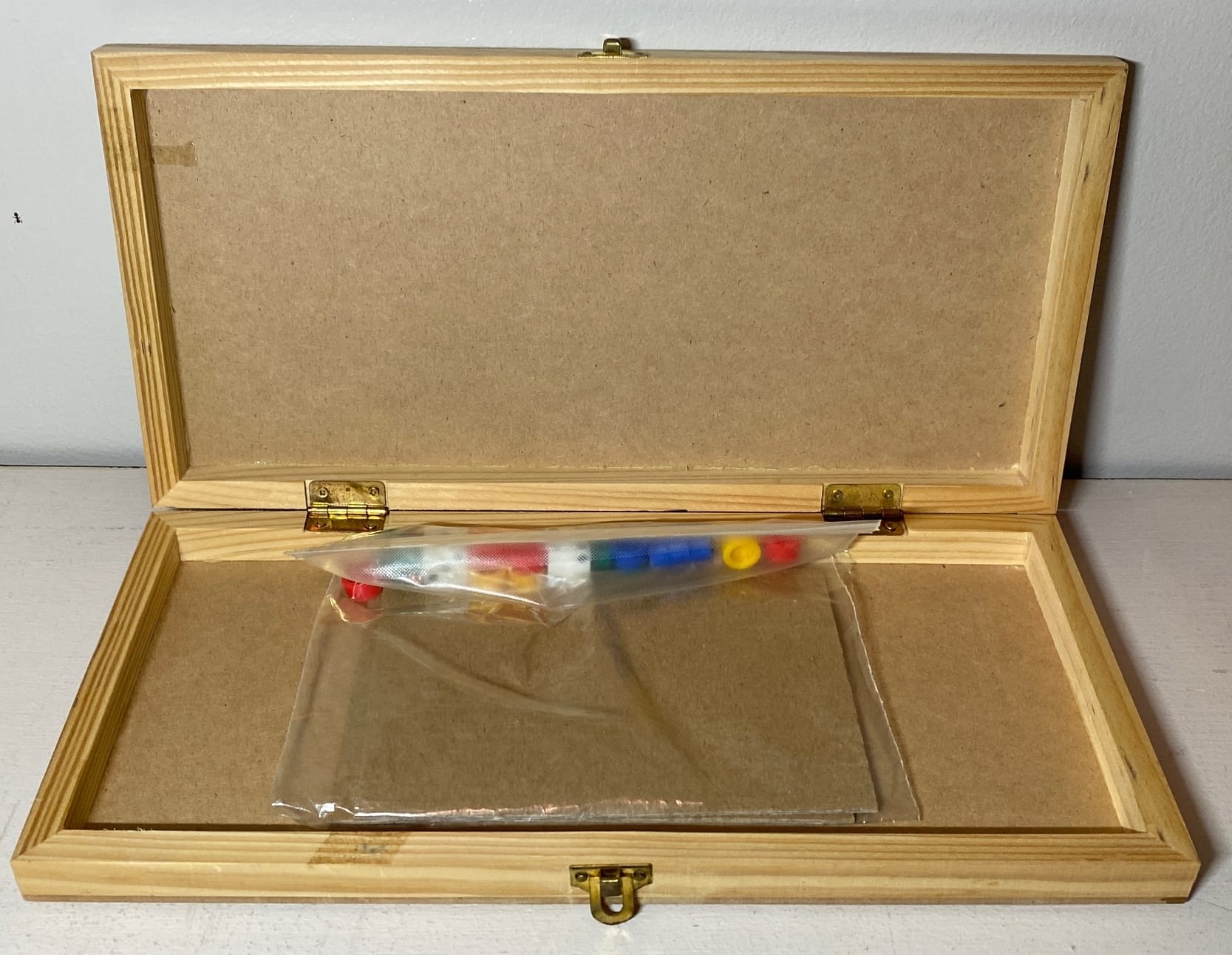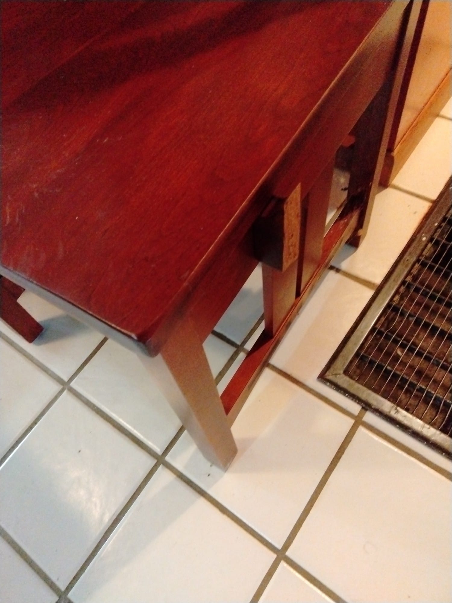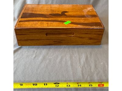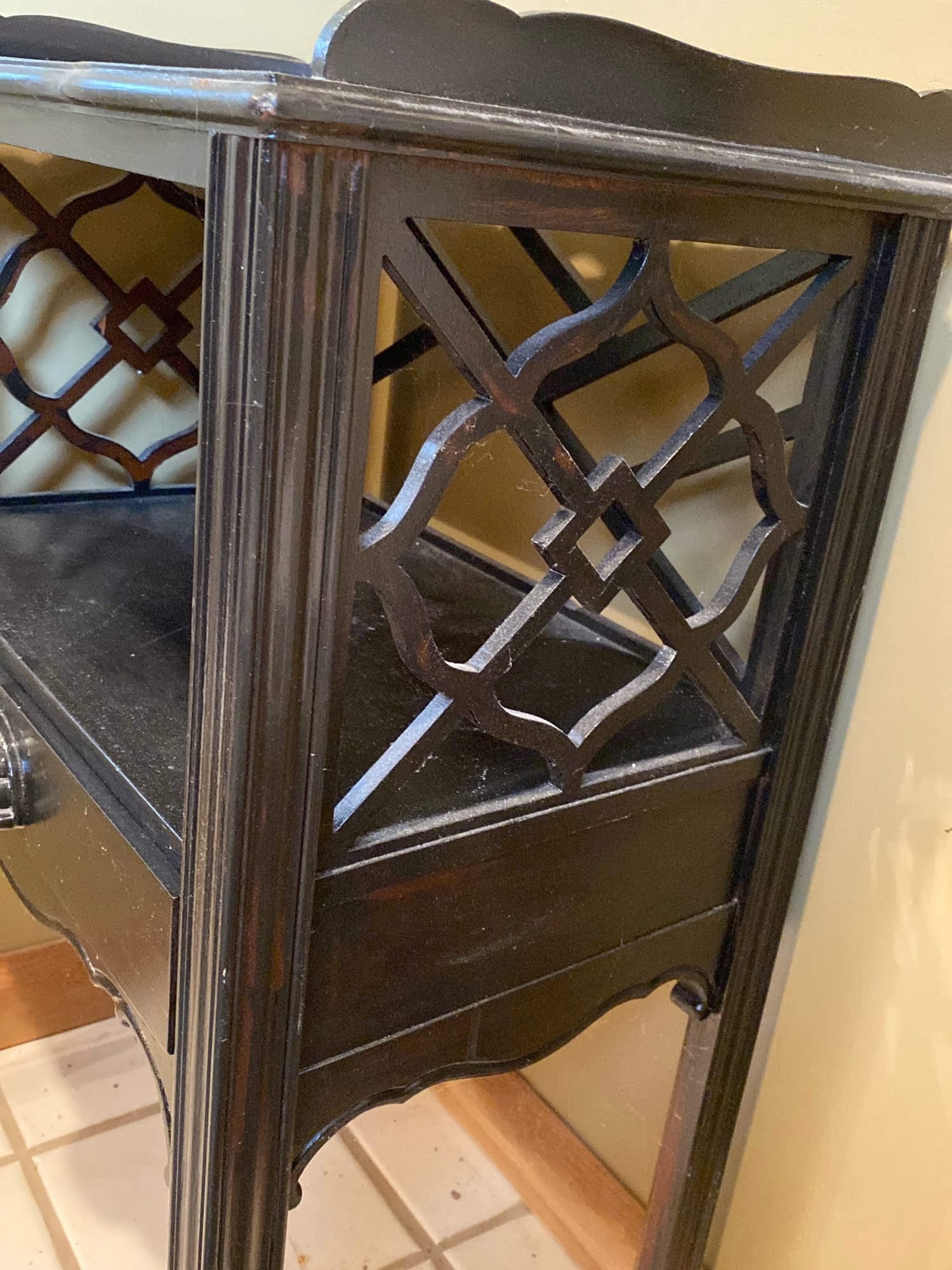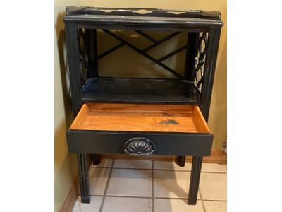 741 3 - Wood shelf 16x7x36, storage box stained 11x24x10 & side stand finish wear 15x19