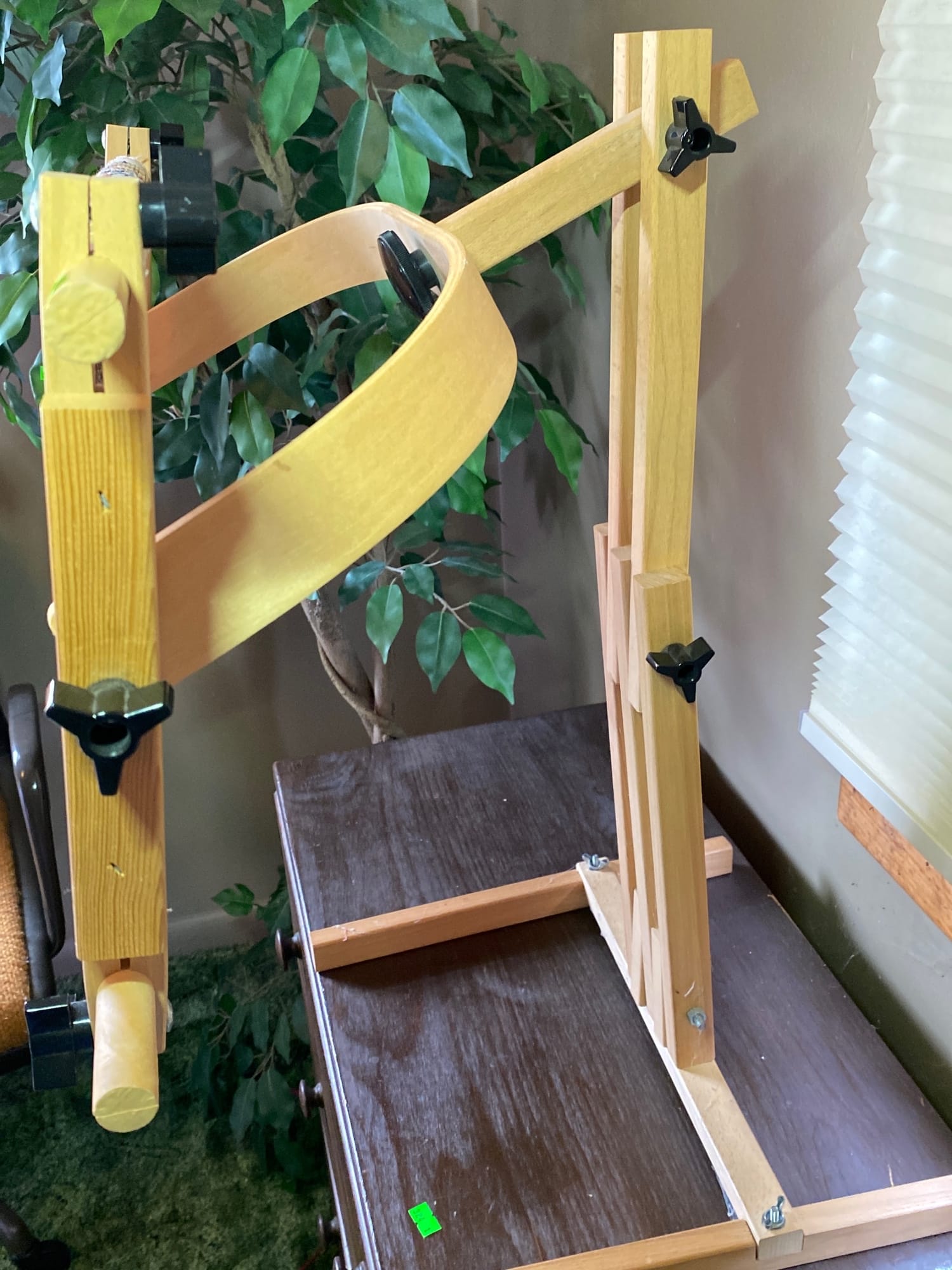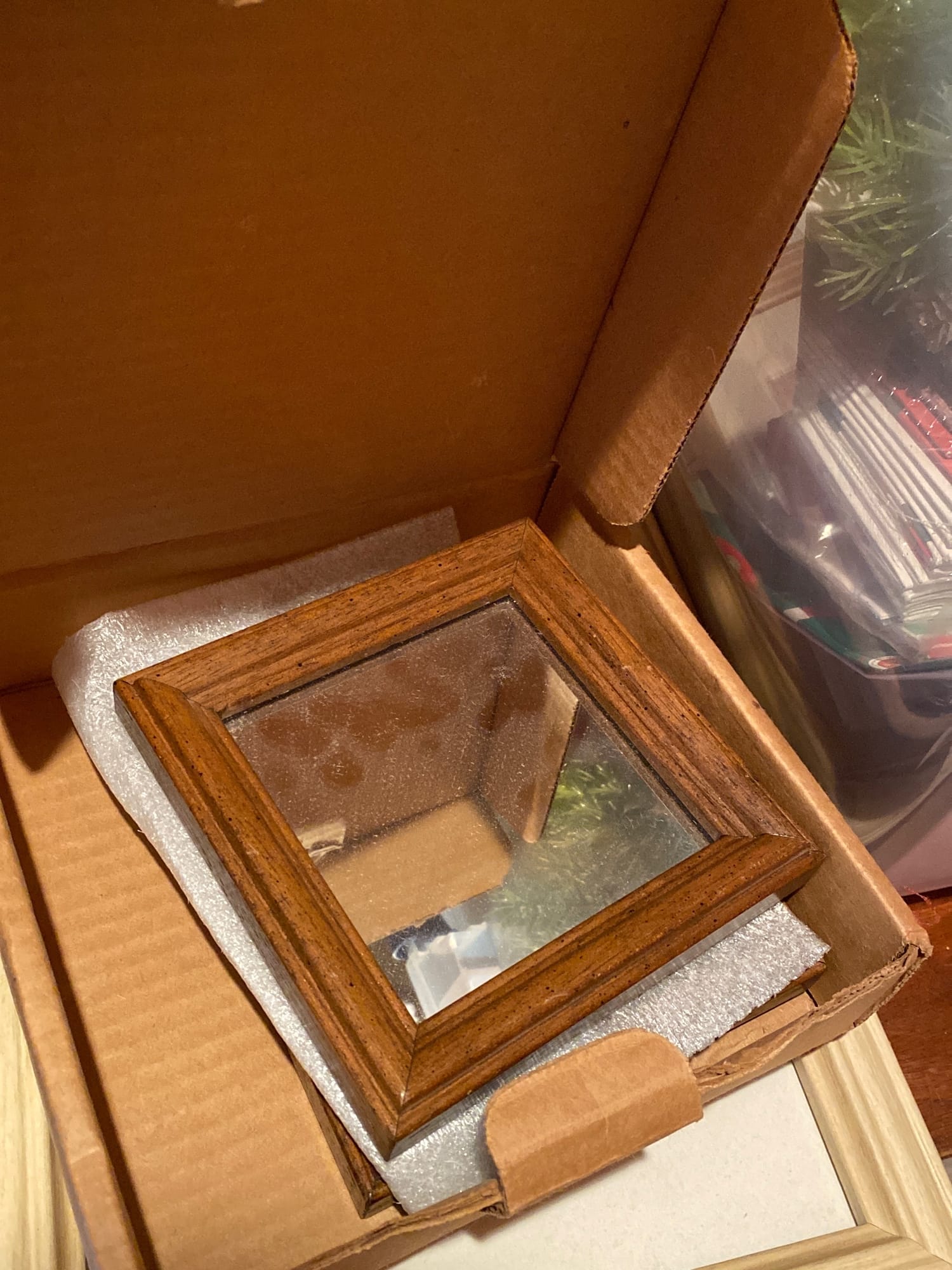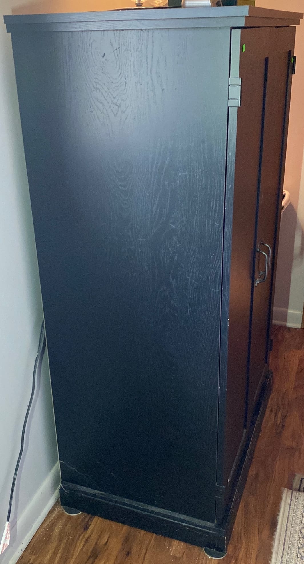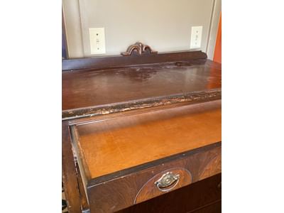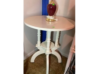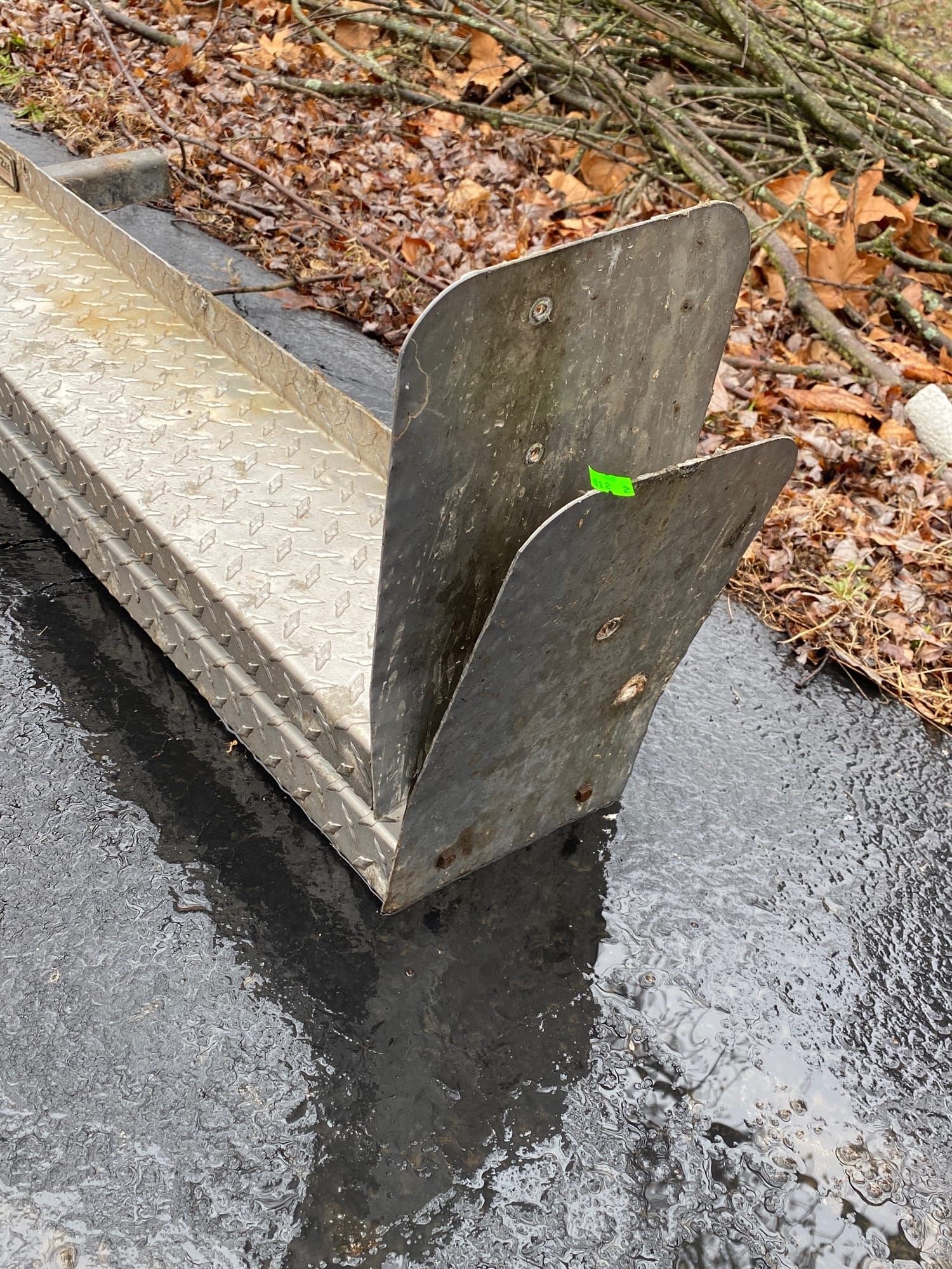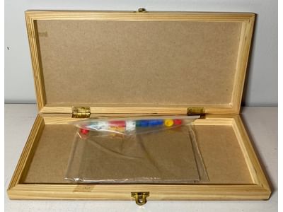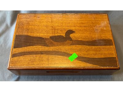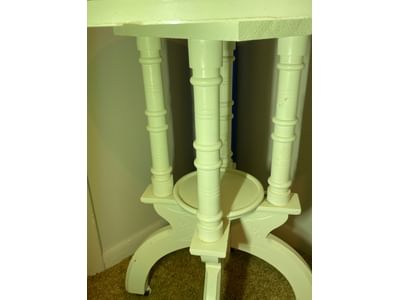 741 3 - Wood shelf 16x7x36, storage box stained 11x24x10 & side stand finish wear 15x19