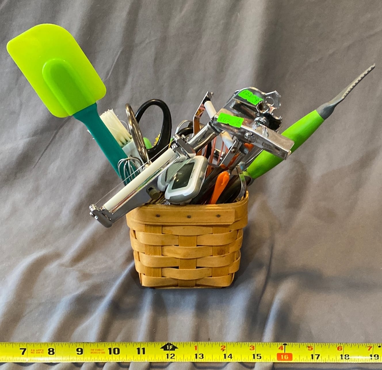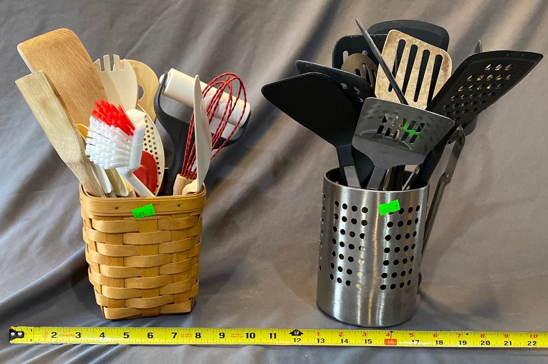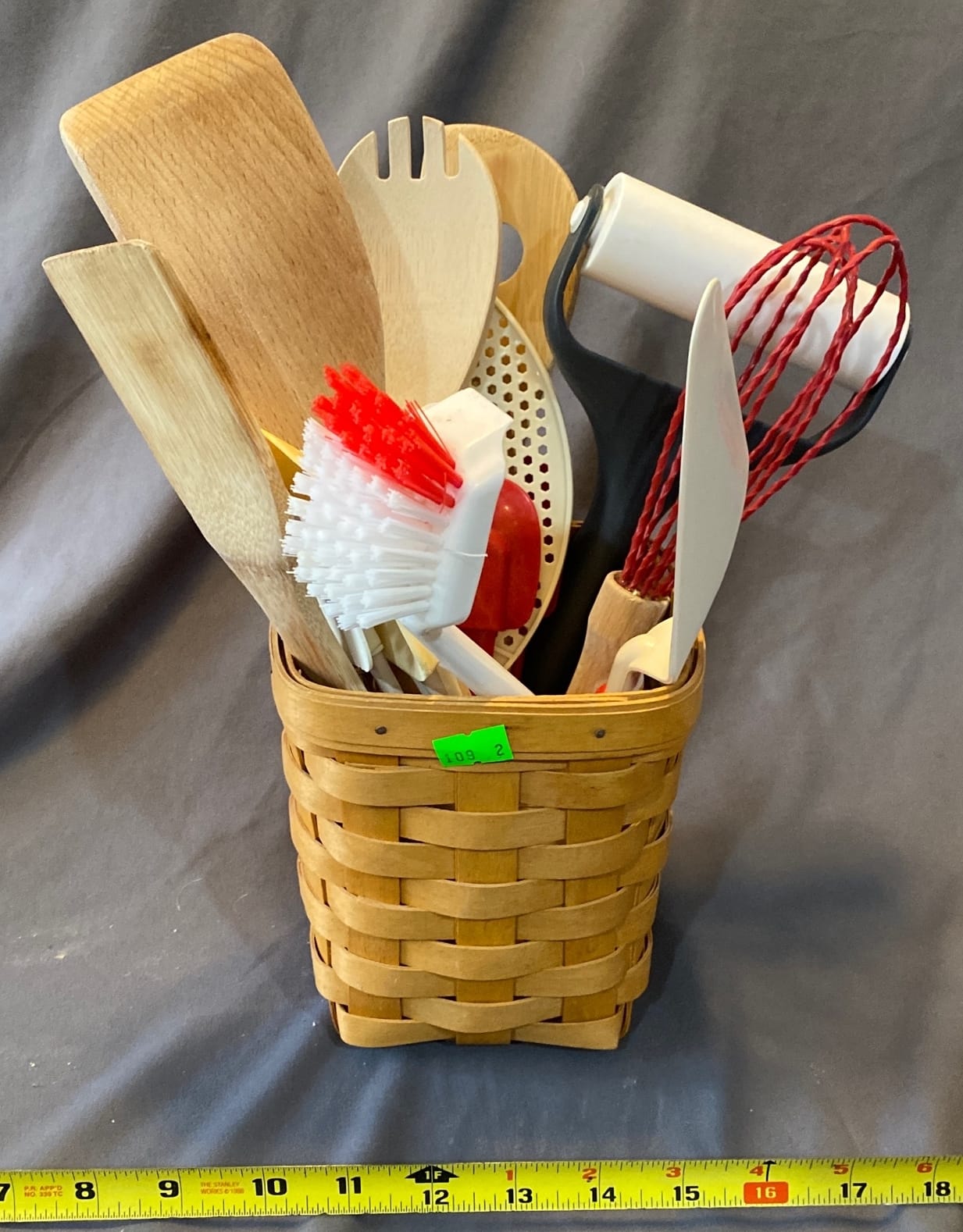 109 Longaberger Basket and SS Container with Kitchen Utensils