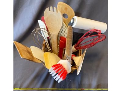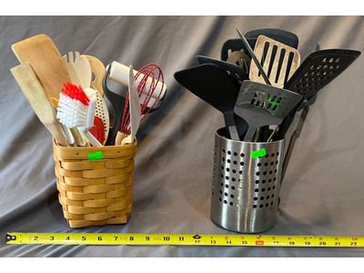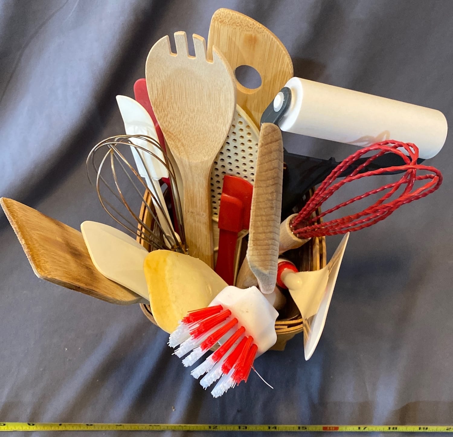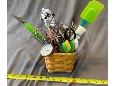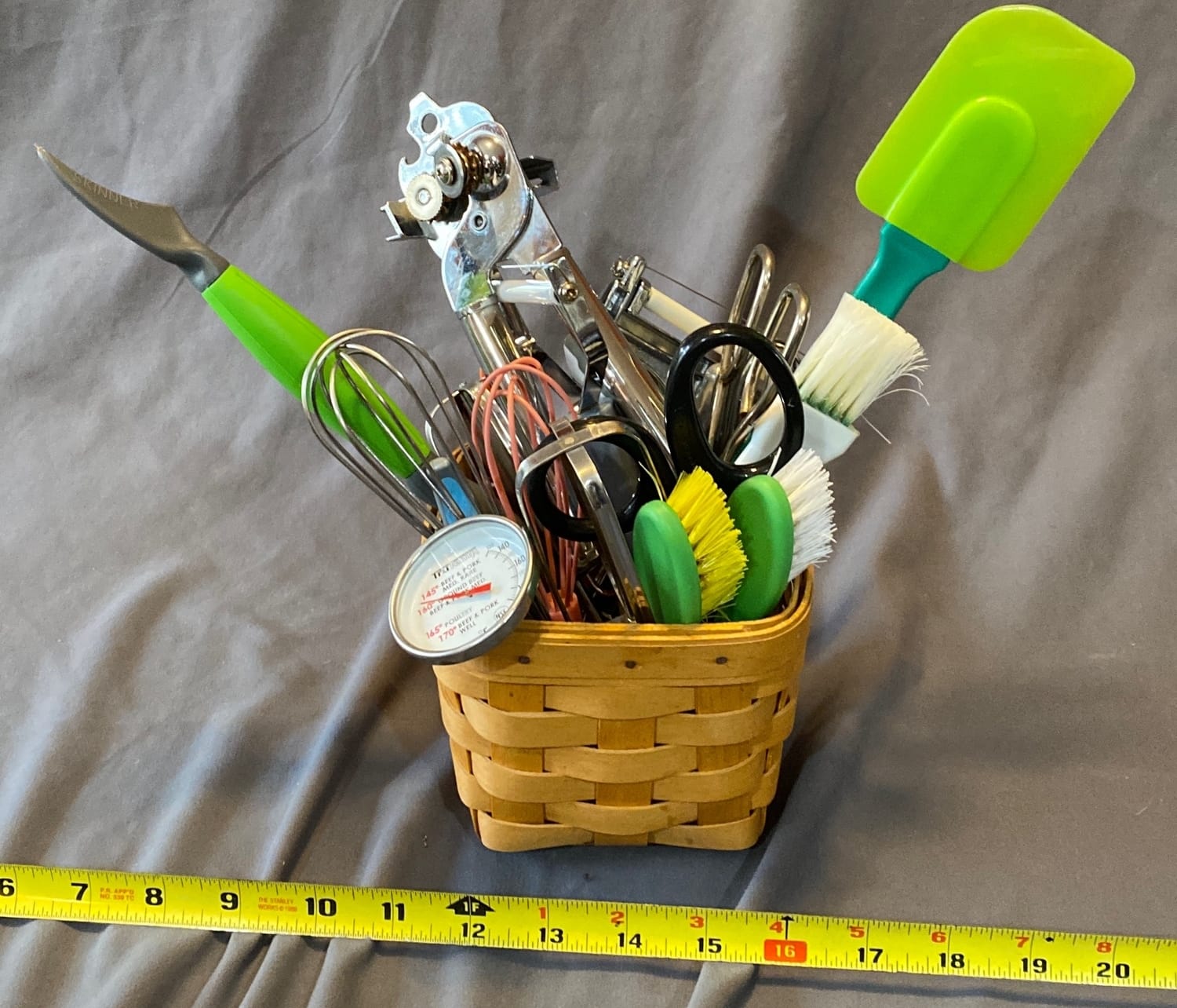 109 Longaberger Basket and SS Container with Kitchen Utensils