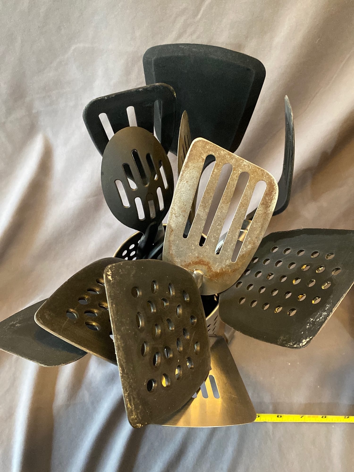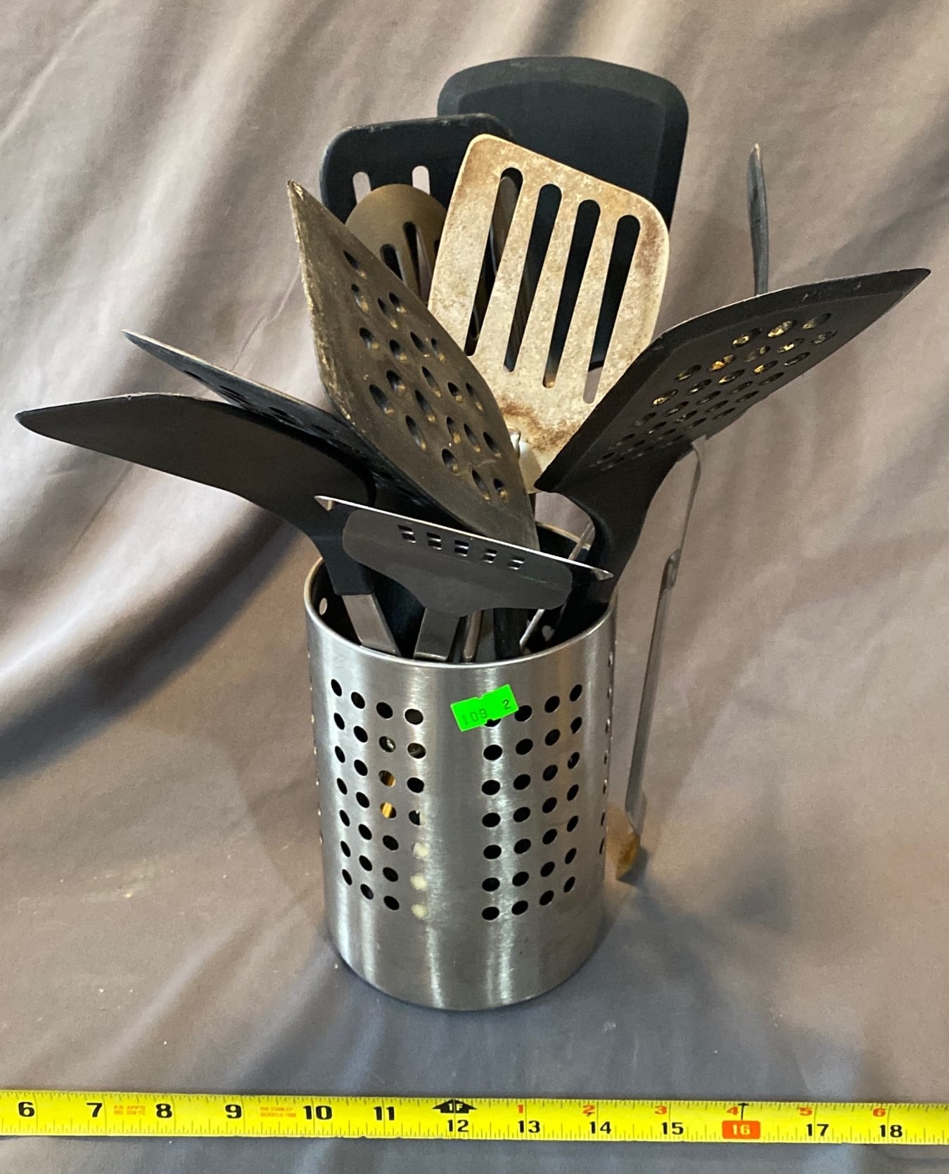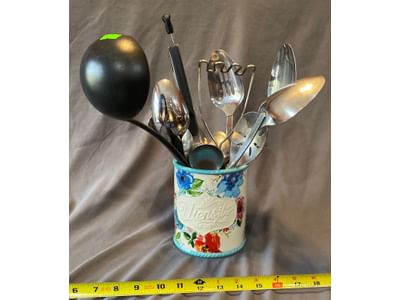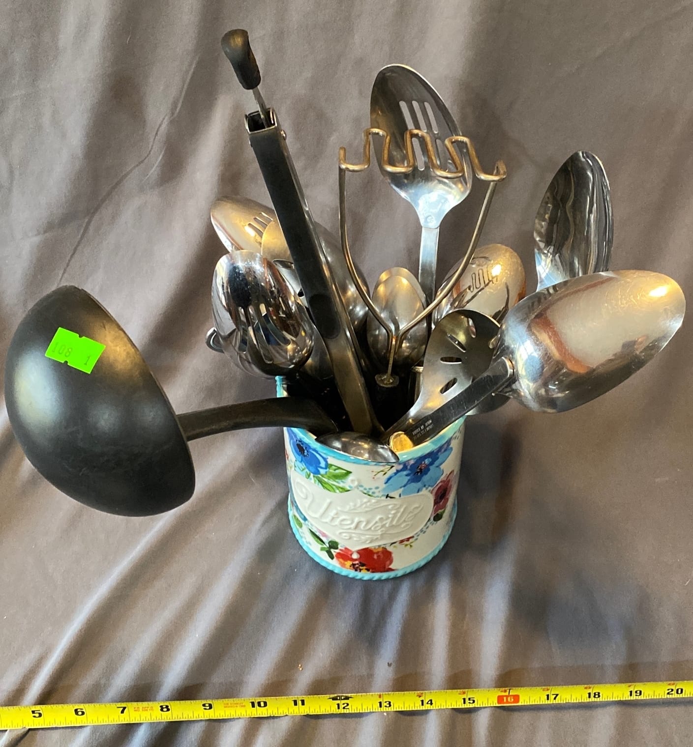 108 Pioneer Woman Utensils Holder with Metal Spoons and Ladles
