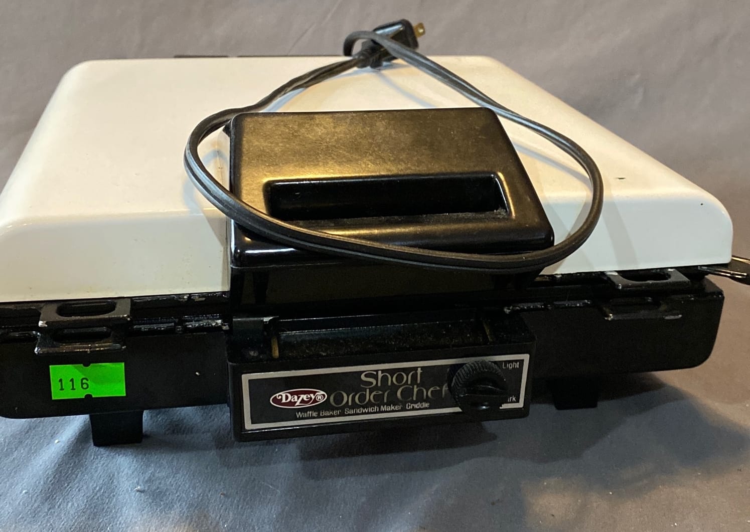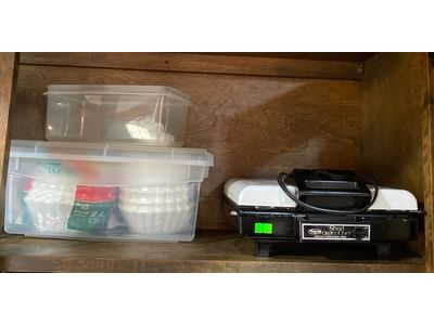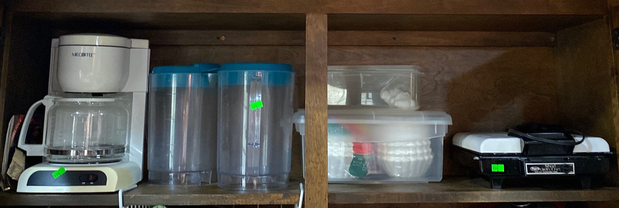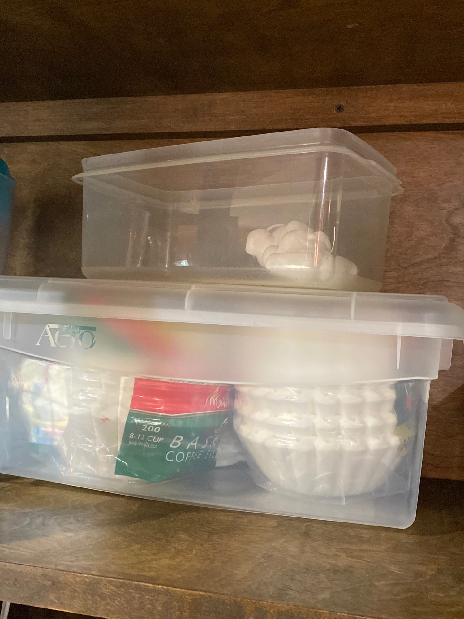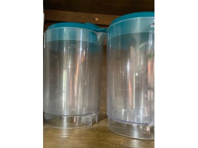 116 Mr. Coffee coffee maker, dazey short order grill, plastic pitchers, storage containers, coffee filters