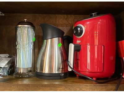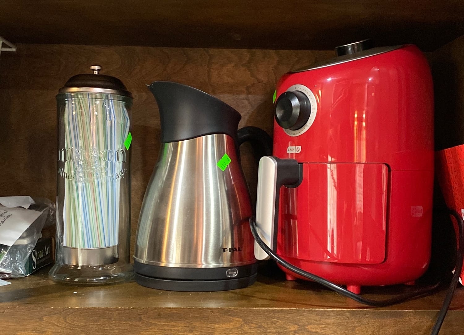117 Dash compact air fryer, T-Fal electric coffee pot, mason straw dispenser
