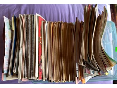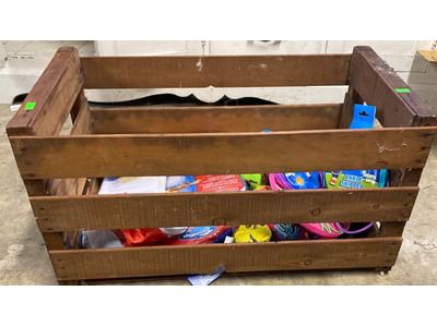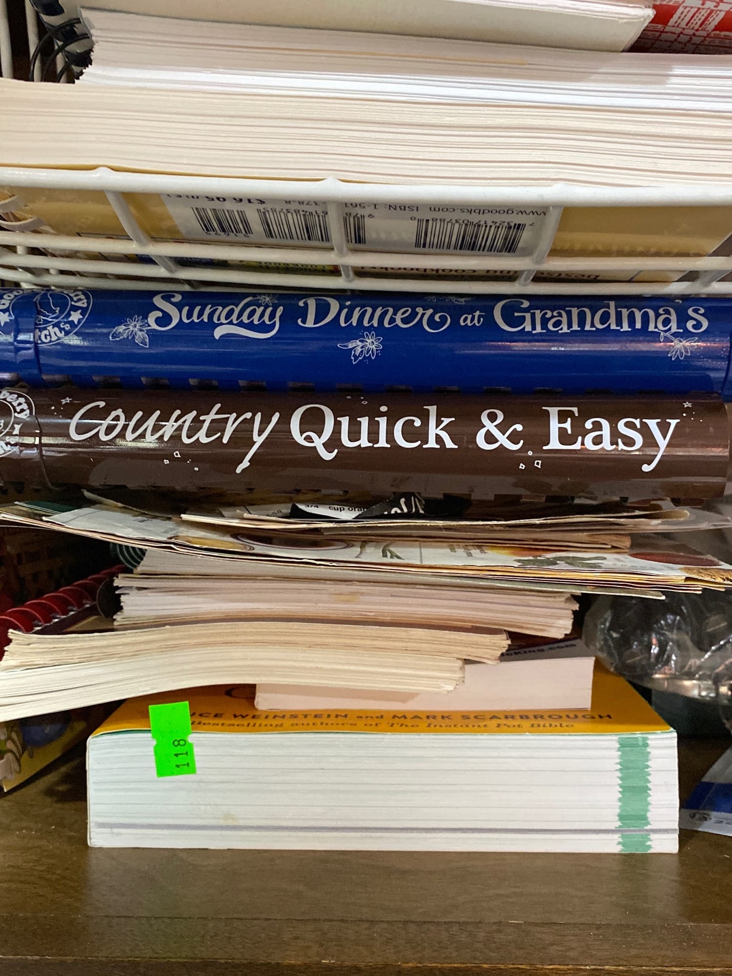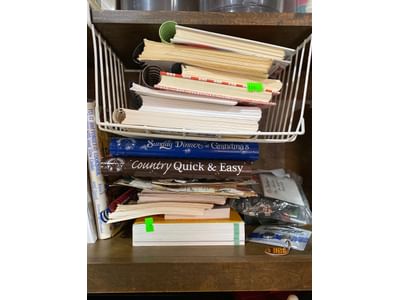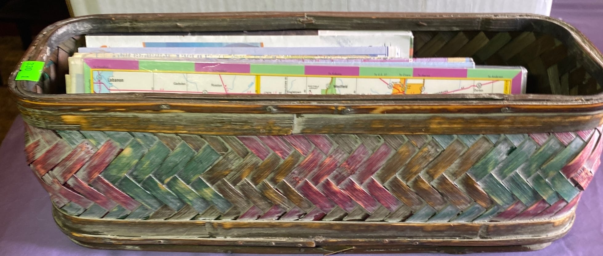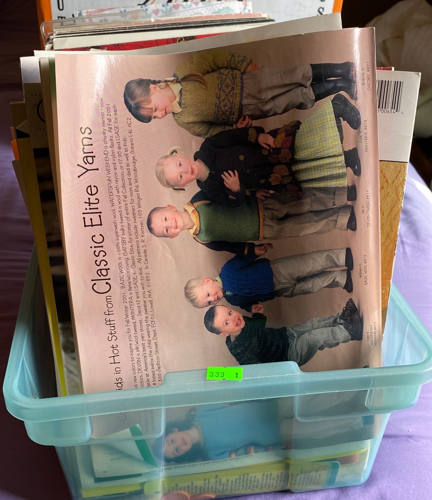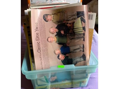 145 Puzzle books and craft magazines in home and garden wood basket 12x8x15