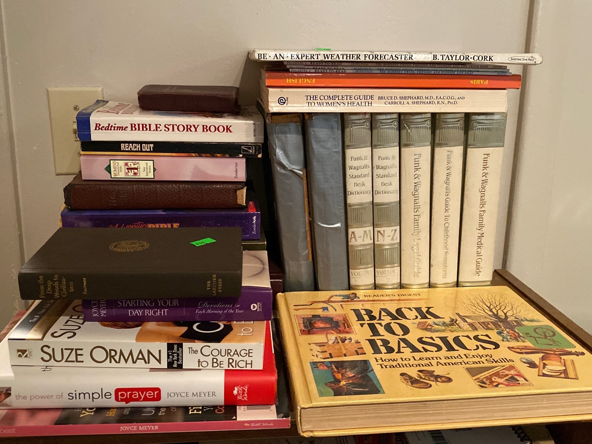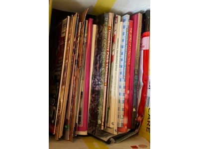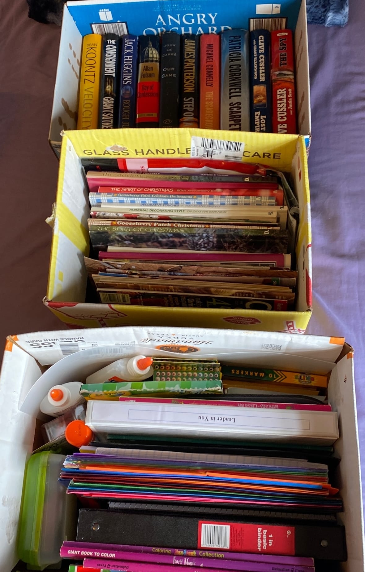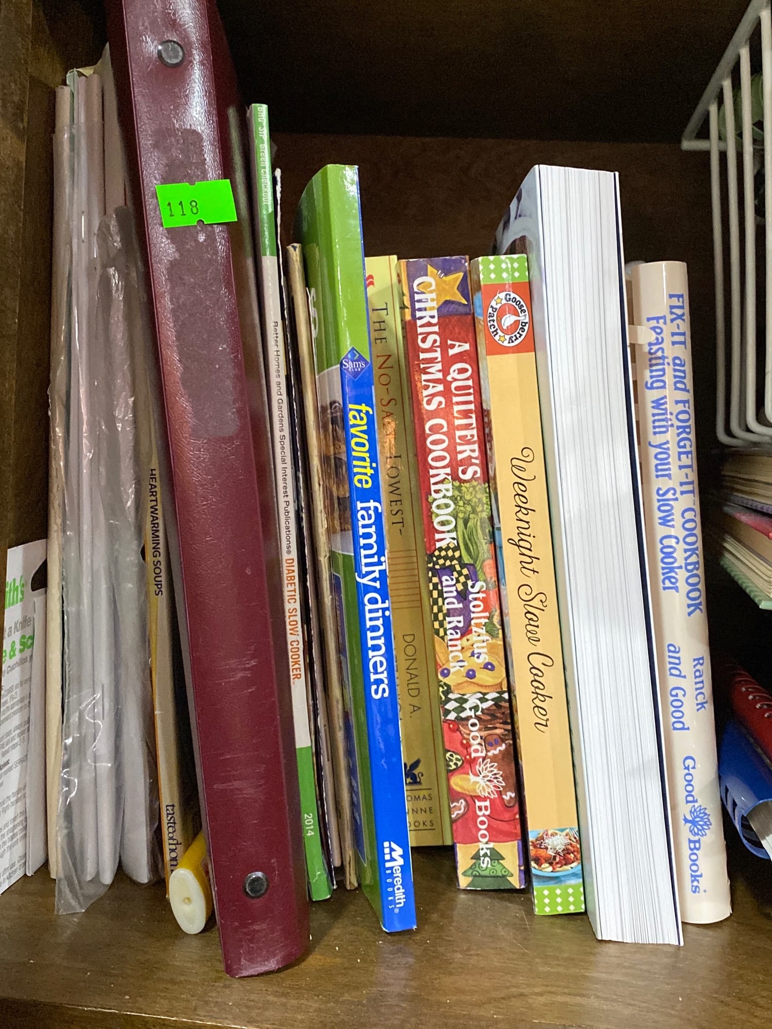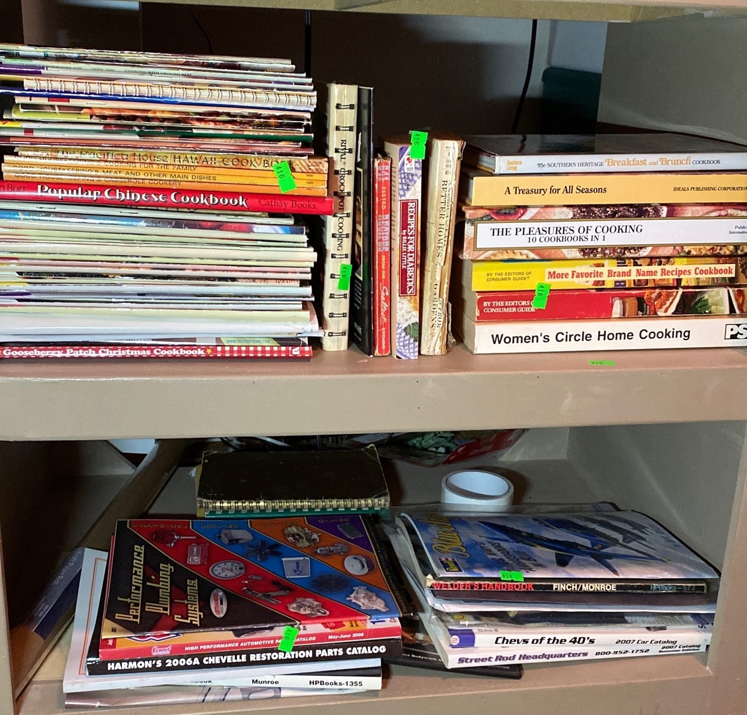 145 Puzzle books and craft magazines in home and garden wood basket 12x8x15