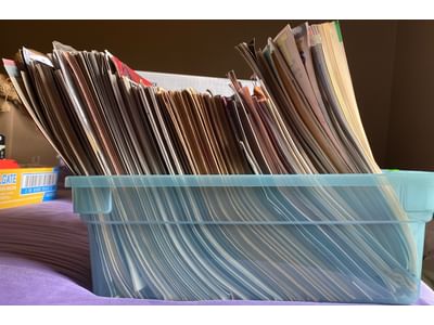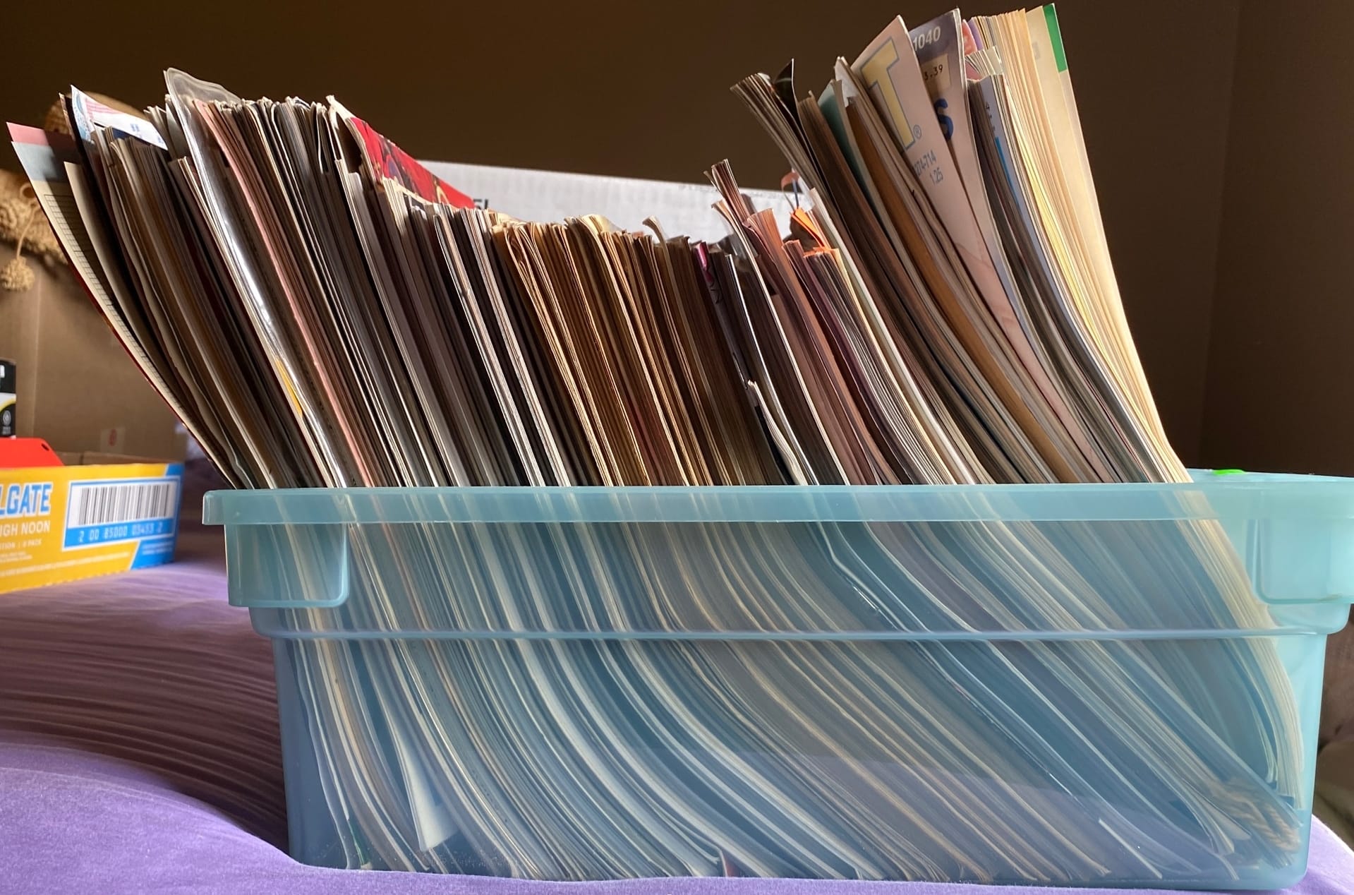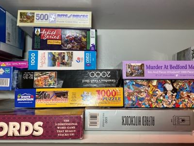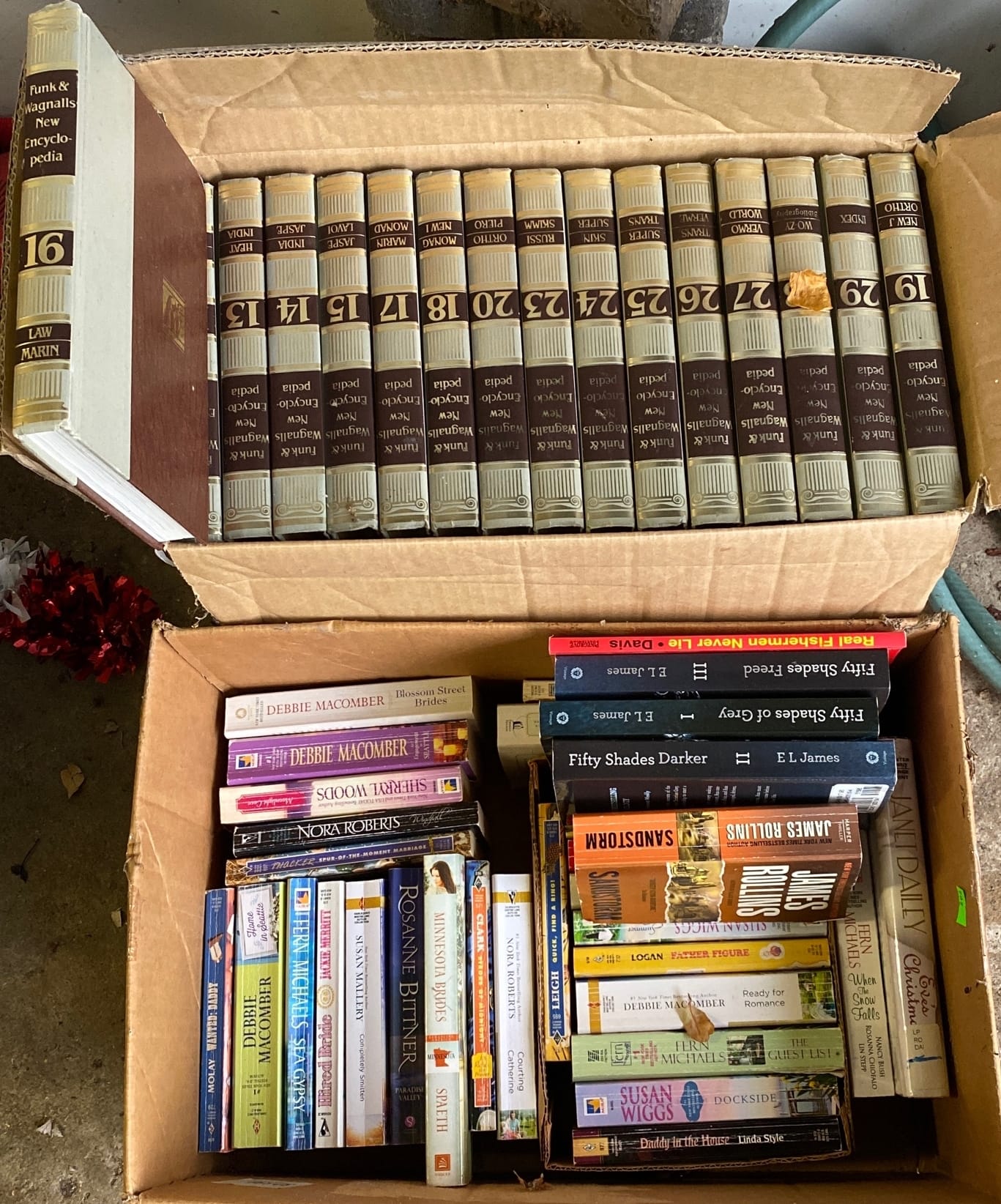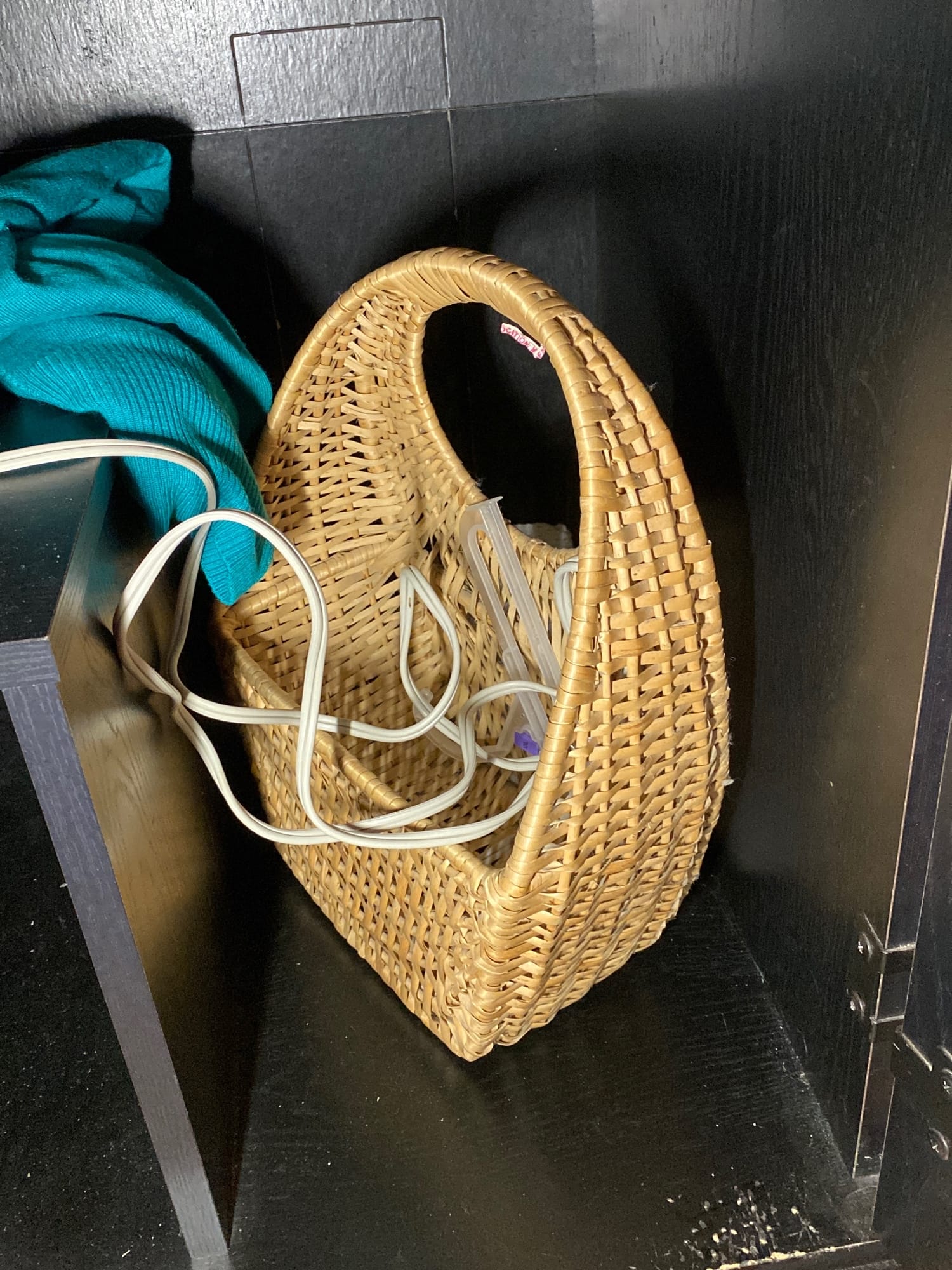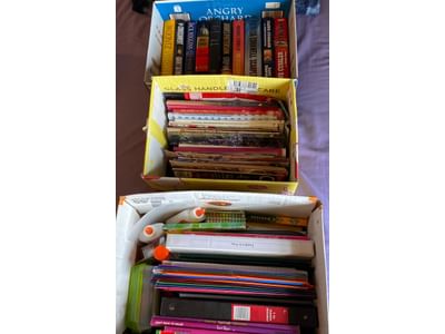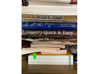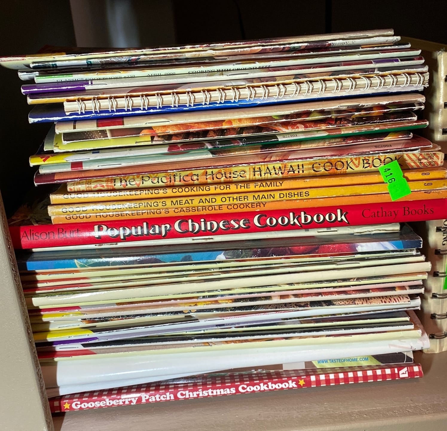 145 Puzzle books and craft magazines in home and garden wood basket 12x8x15