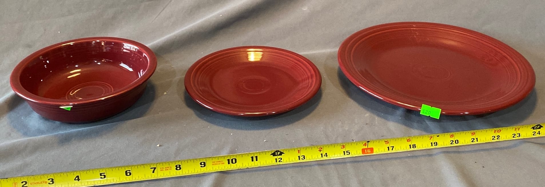 120 Maroon Fiesta plates & bowls - 10in, 7in & 6.5in