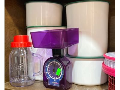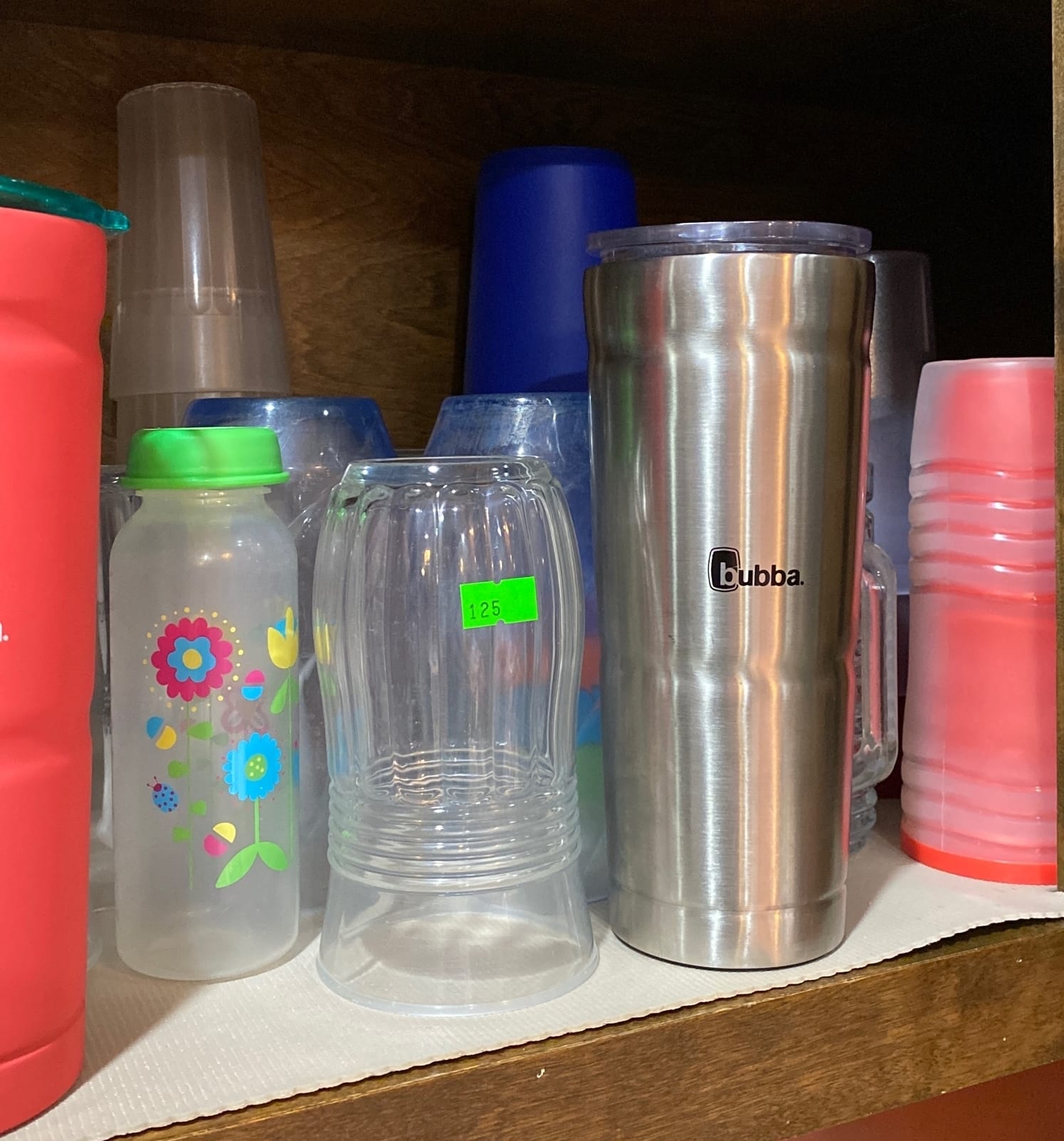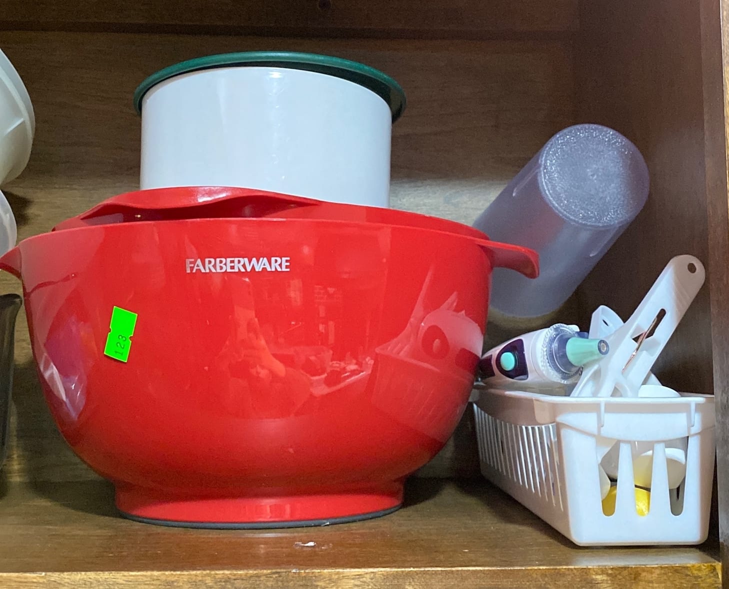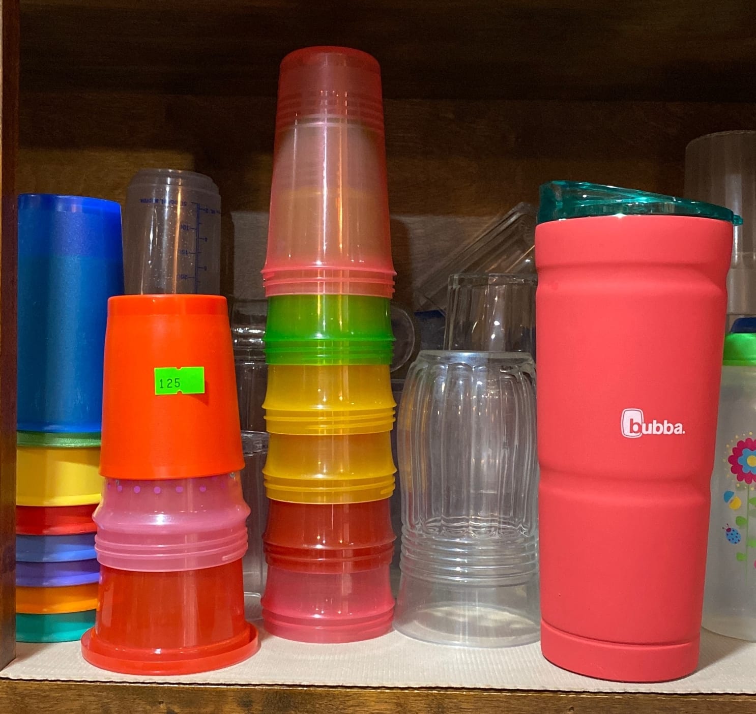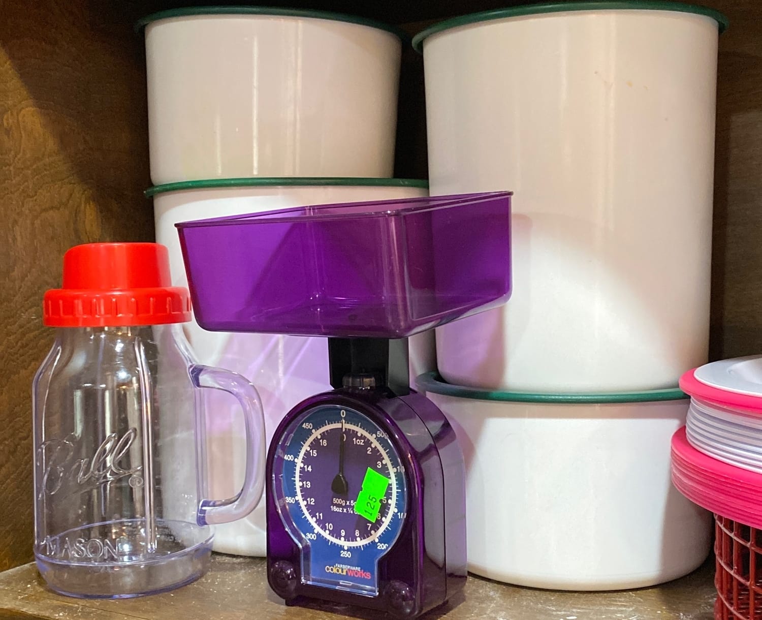 125 Plasticware, Tupperware canisters, Bubba Cups,Farberware, scale, contents as shown in pictures