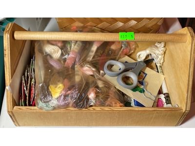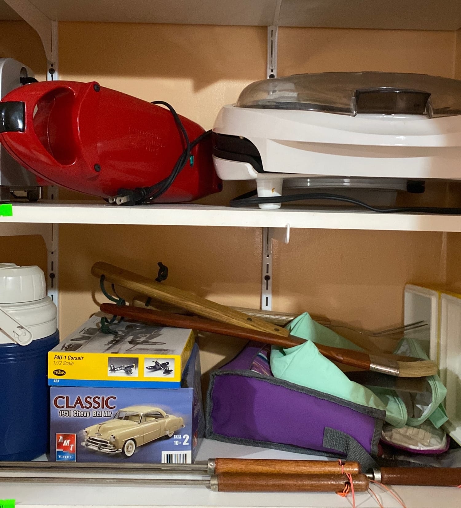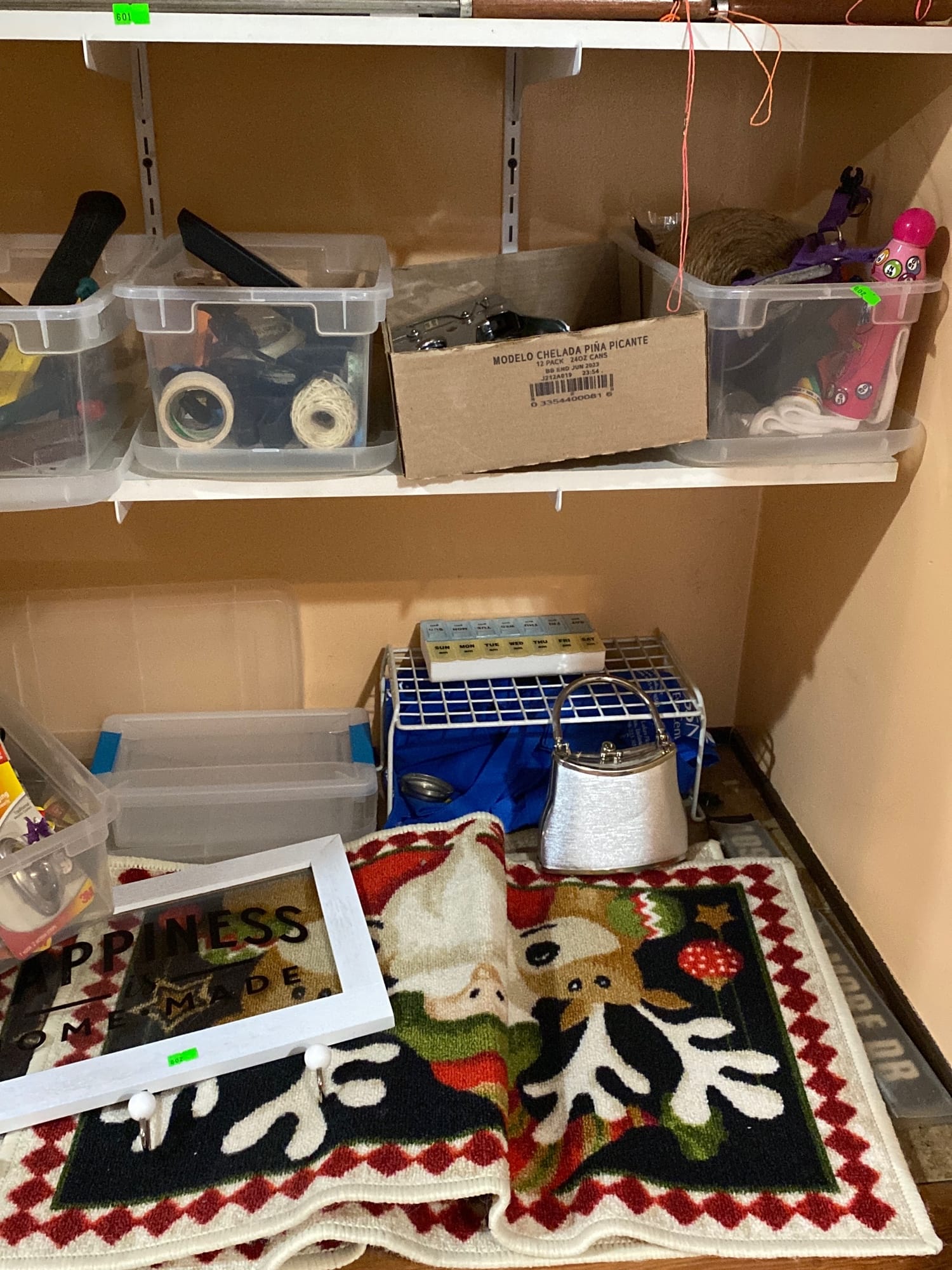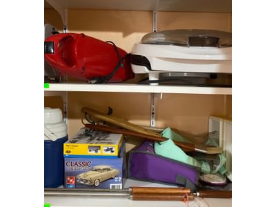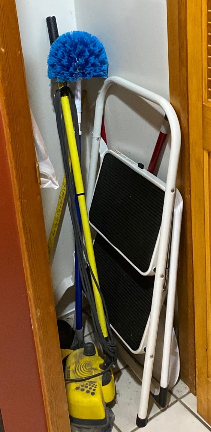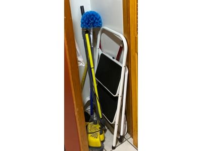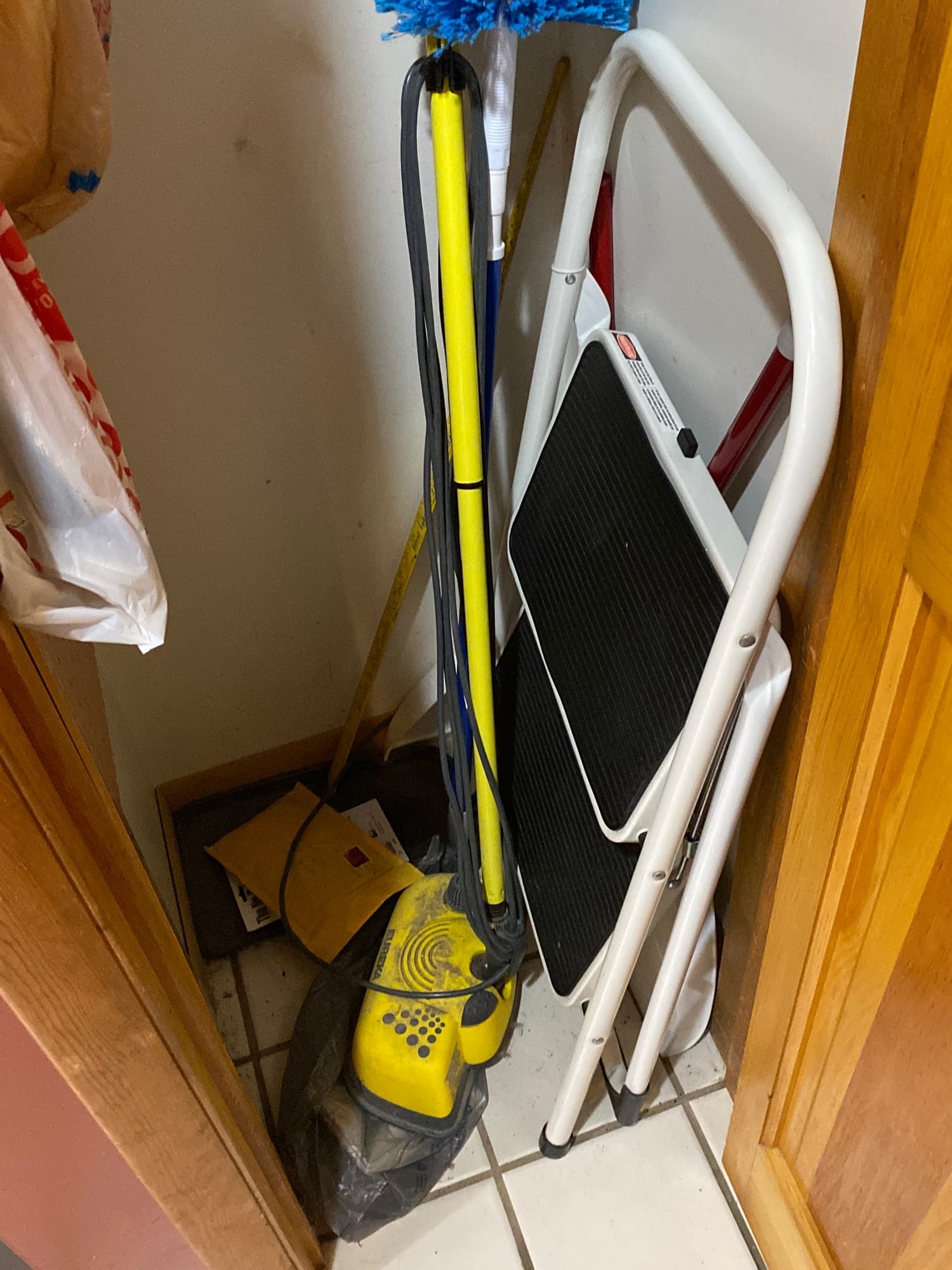 127 Step stool, eureka electric mop, craft supplies, baskets, closet contents as shown in pictures