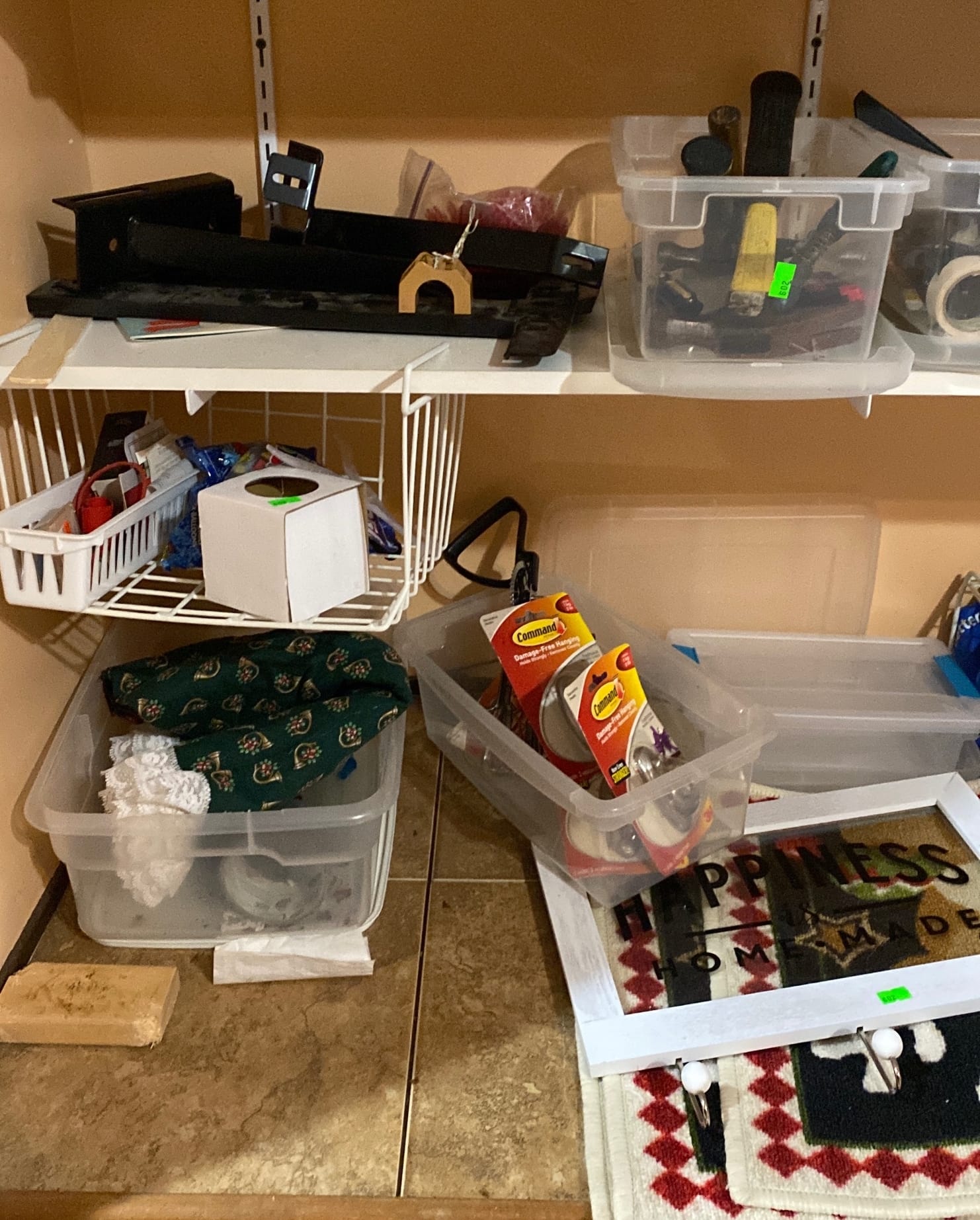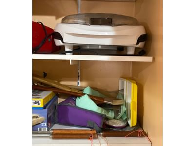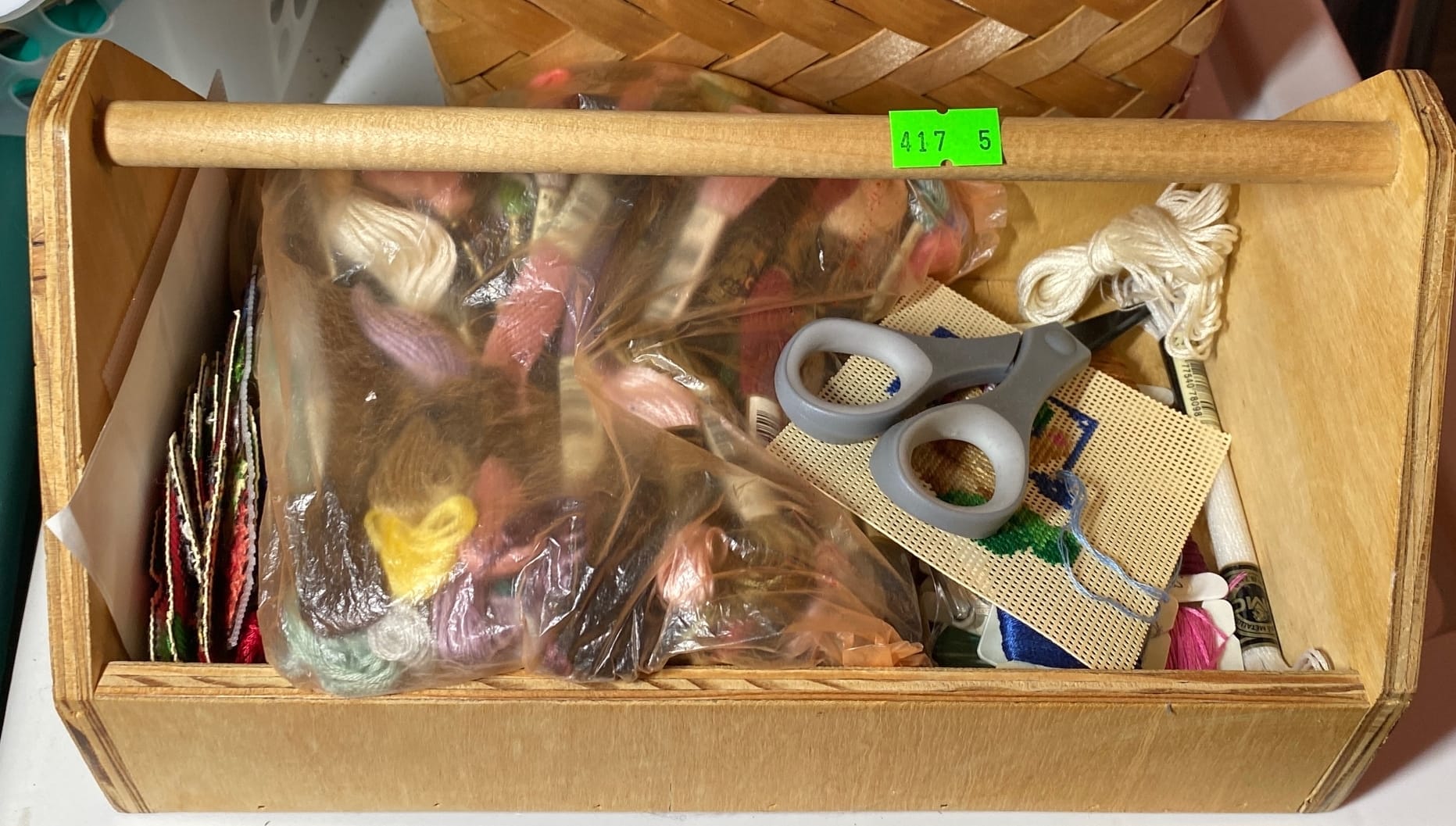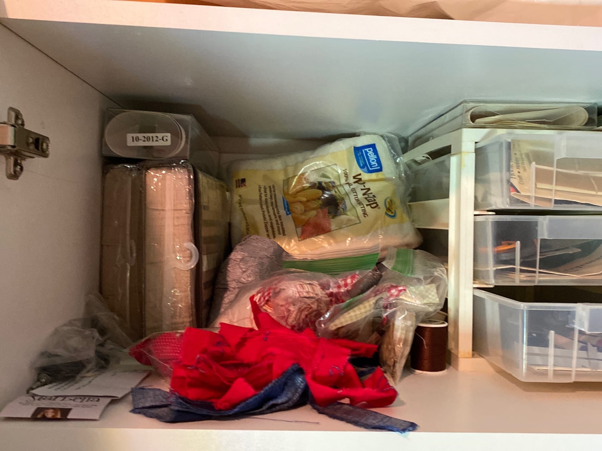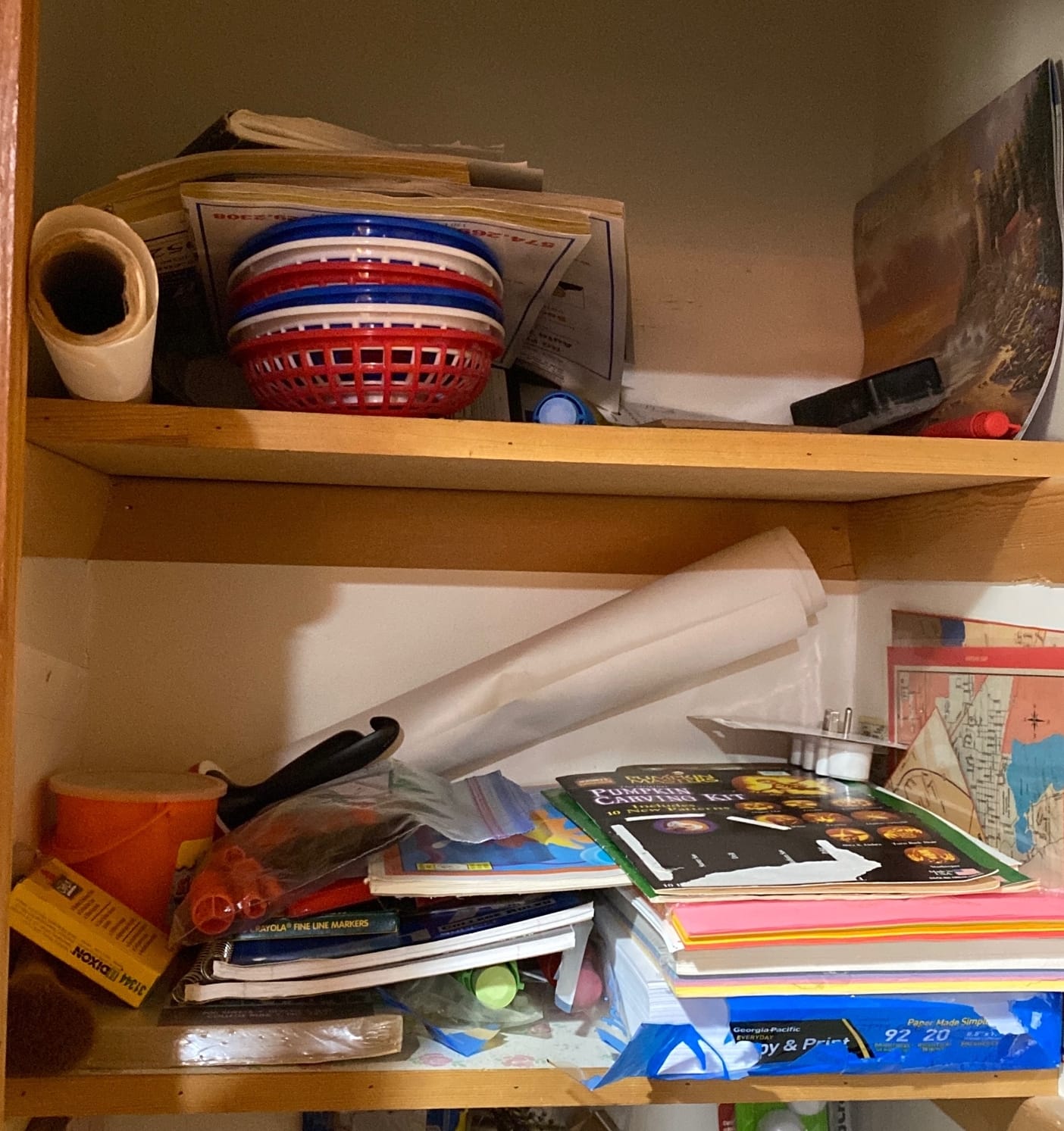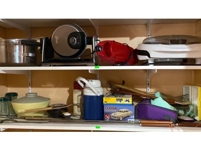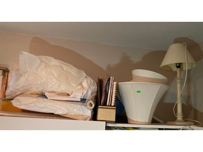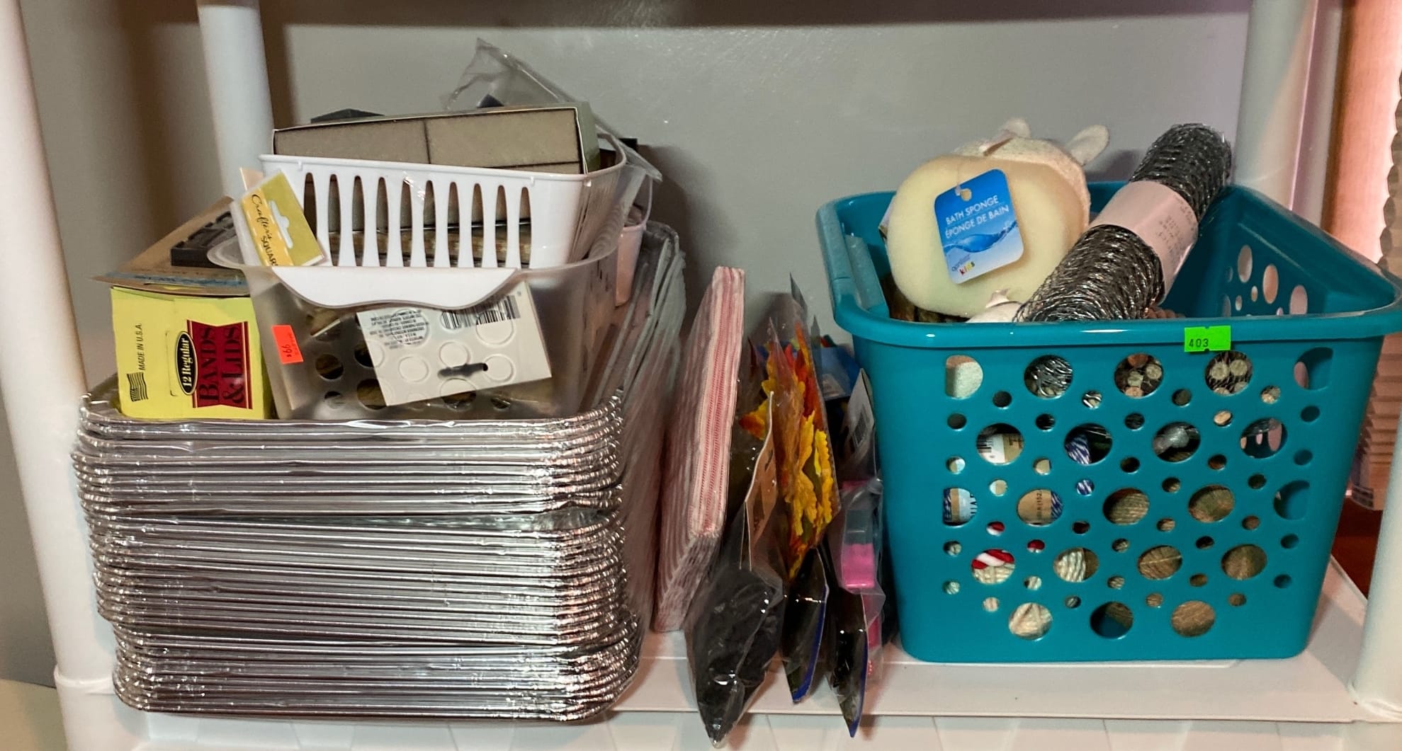 127 Step stool, eureka electric mop, craft supplies, baskets, closet contents as shown in pictures