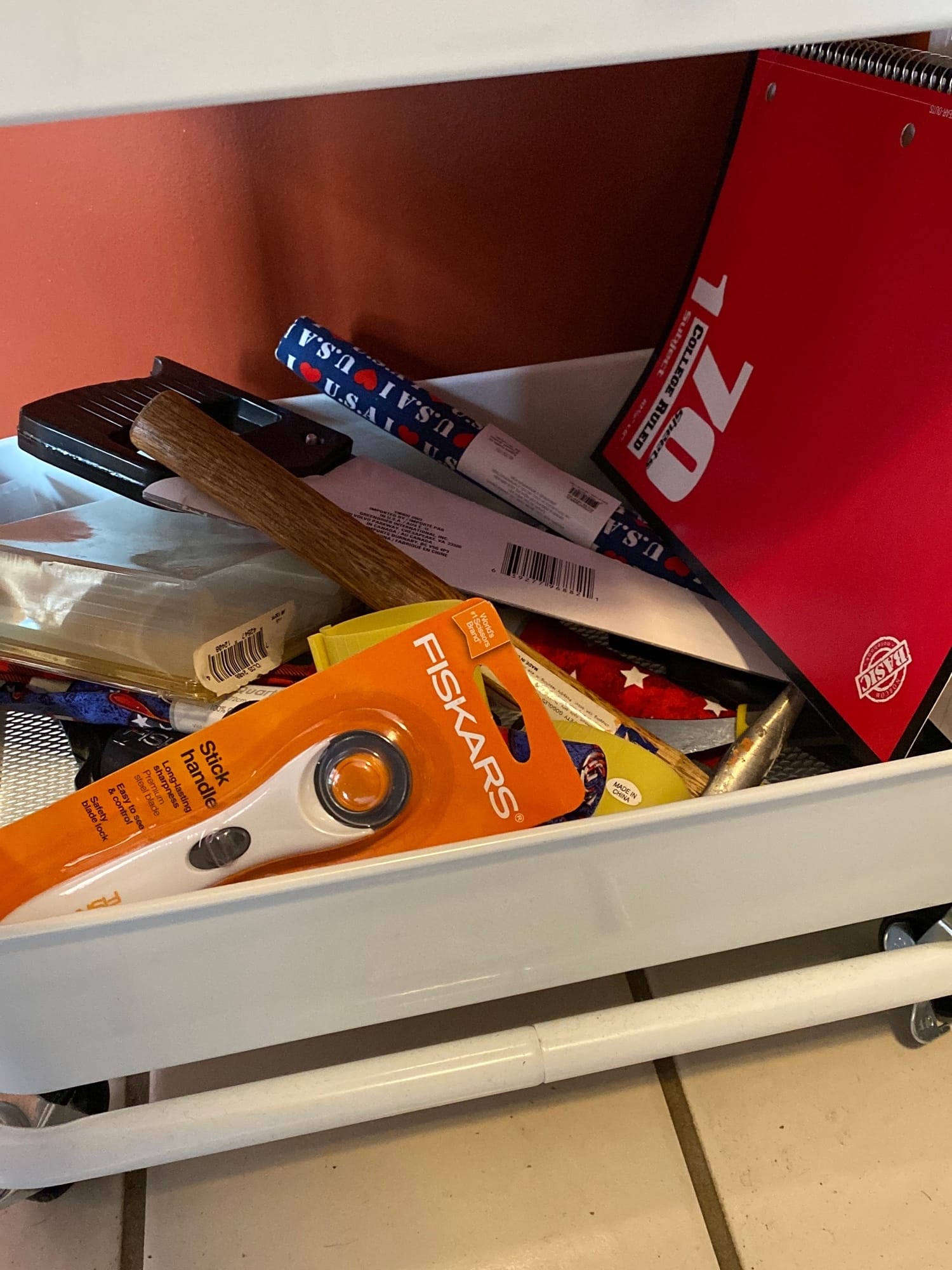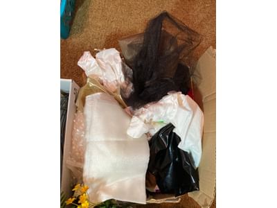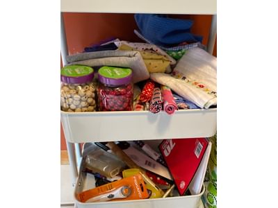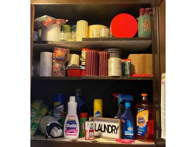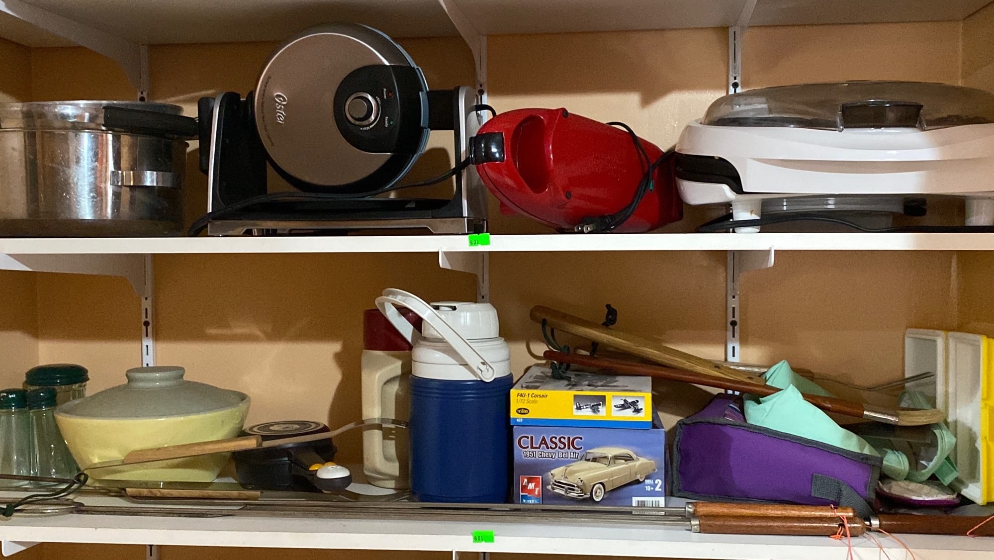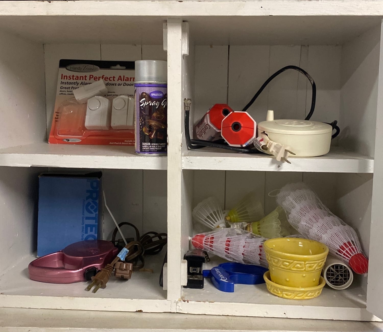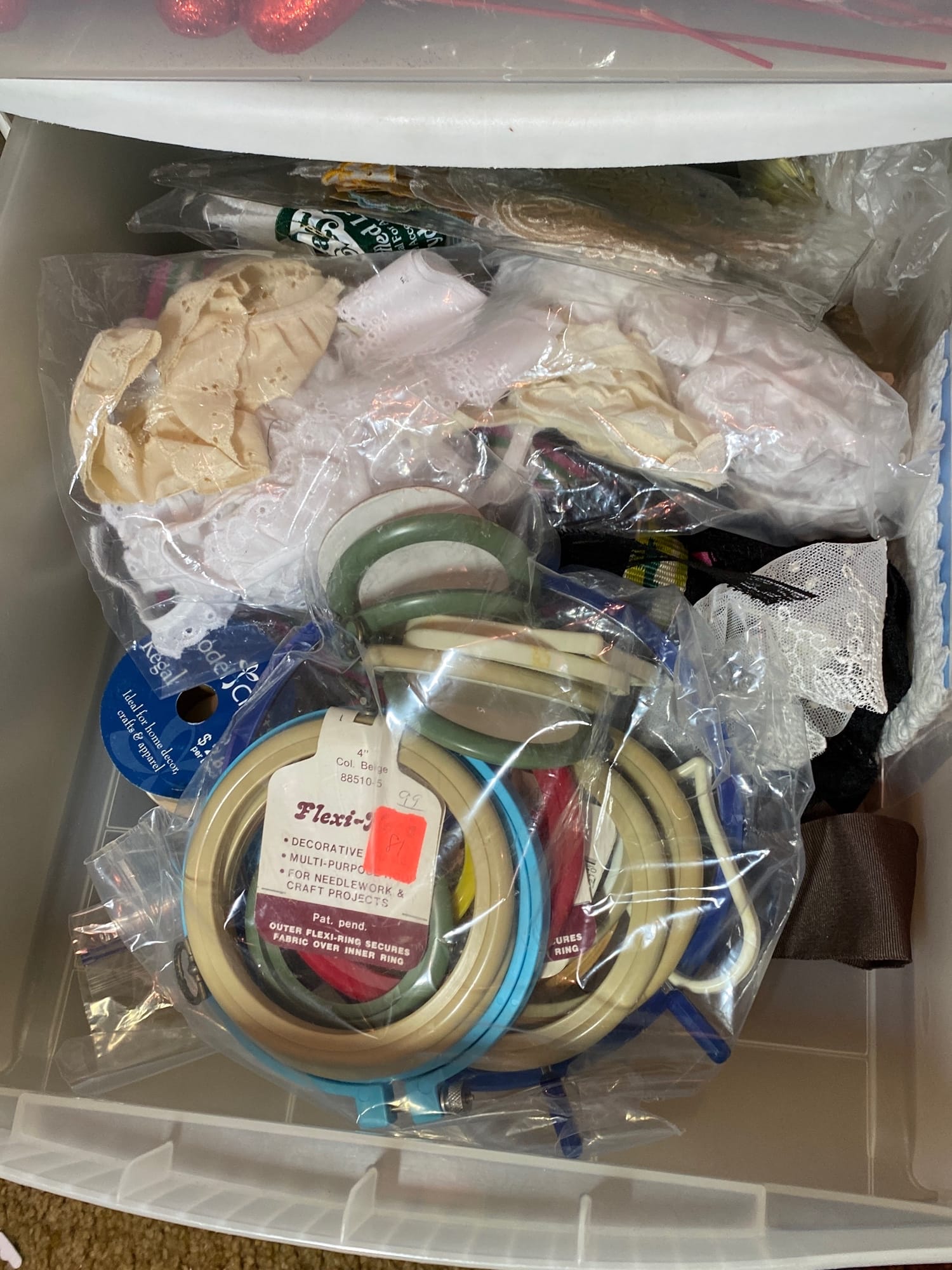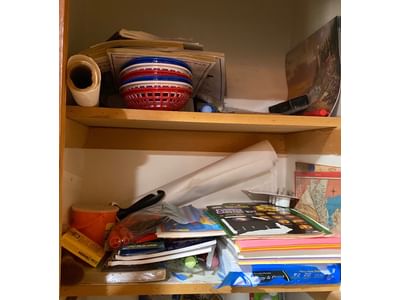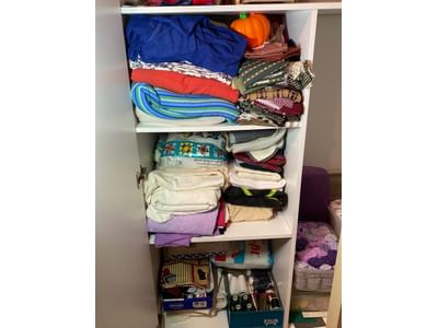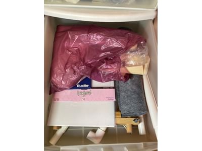 127 Step stool, eureka electric mop, craft supplies, baskets, closet contents as shown in pictures