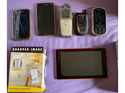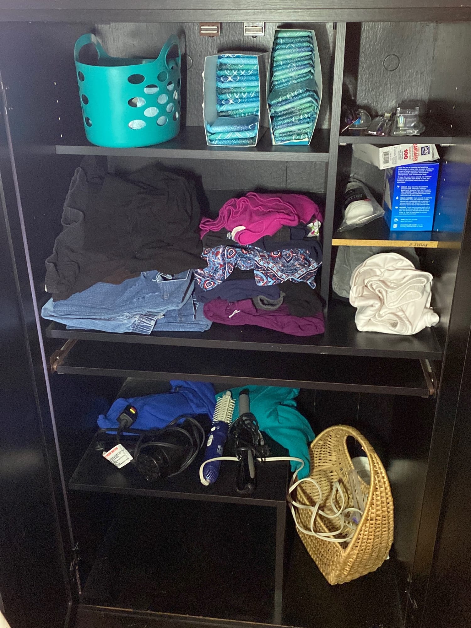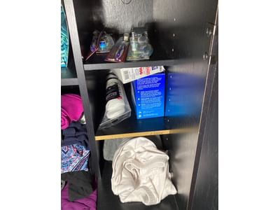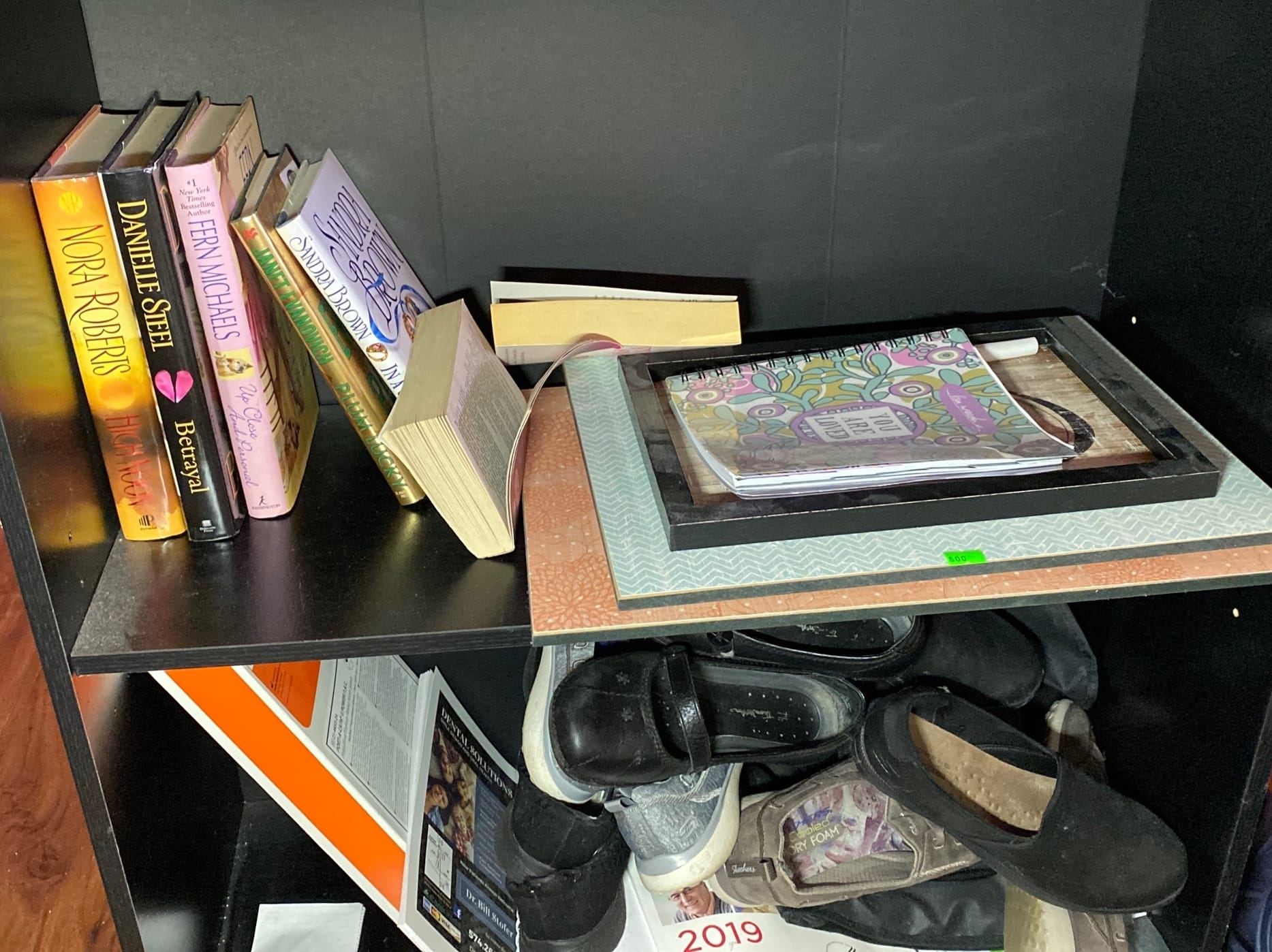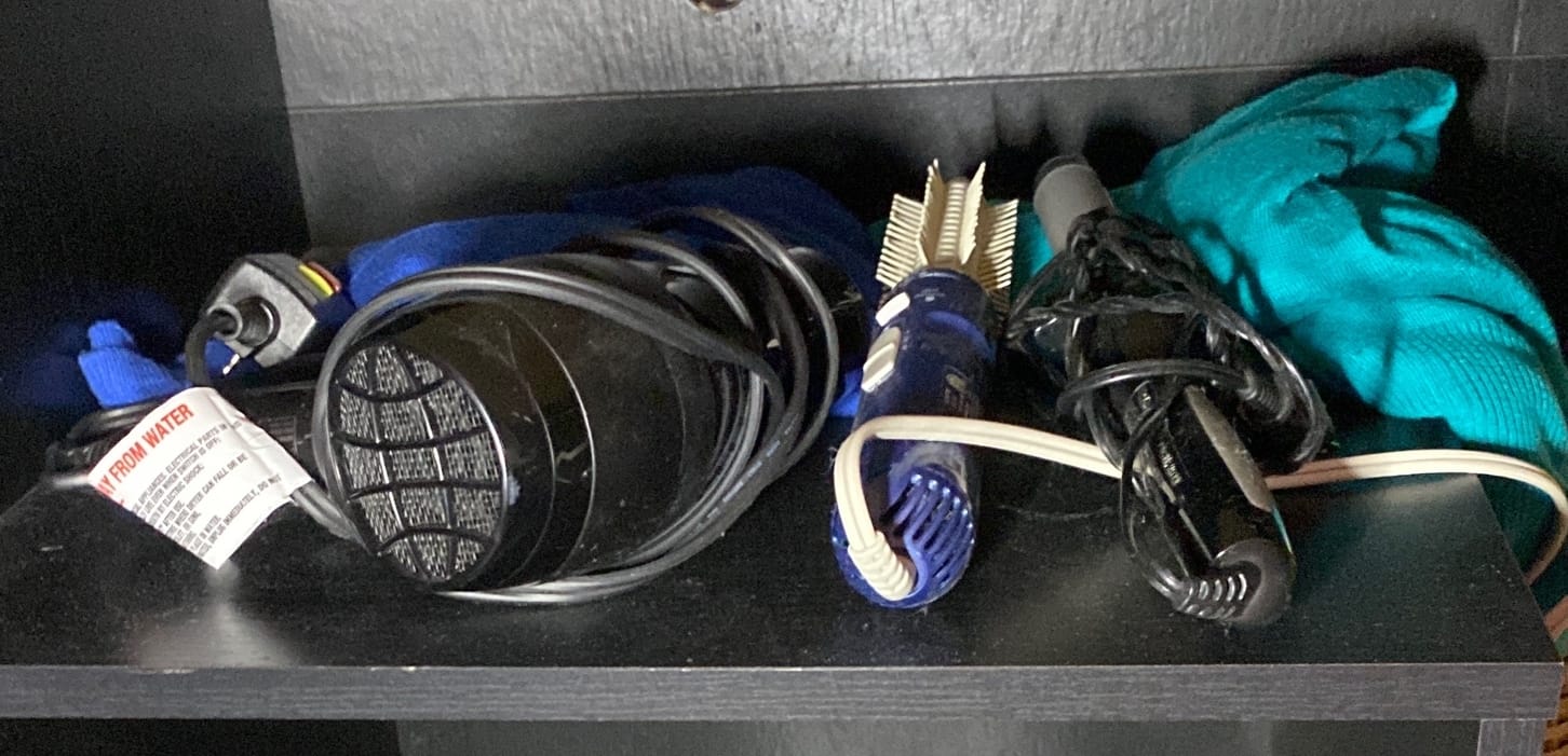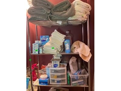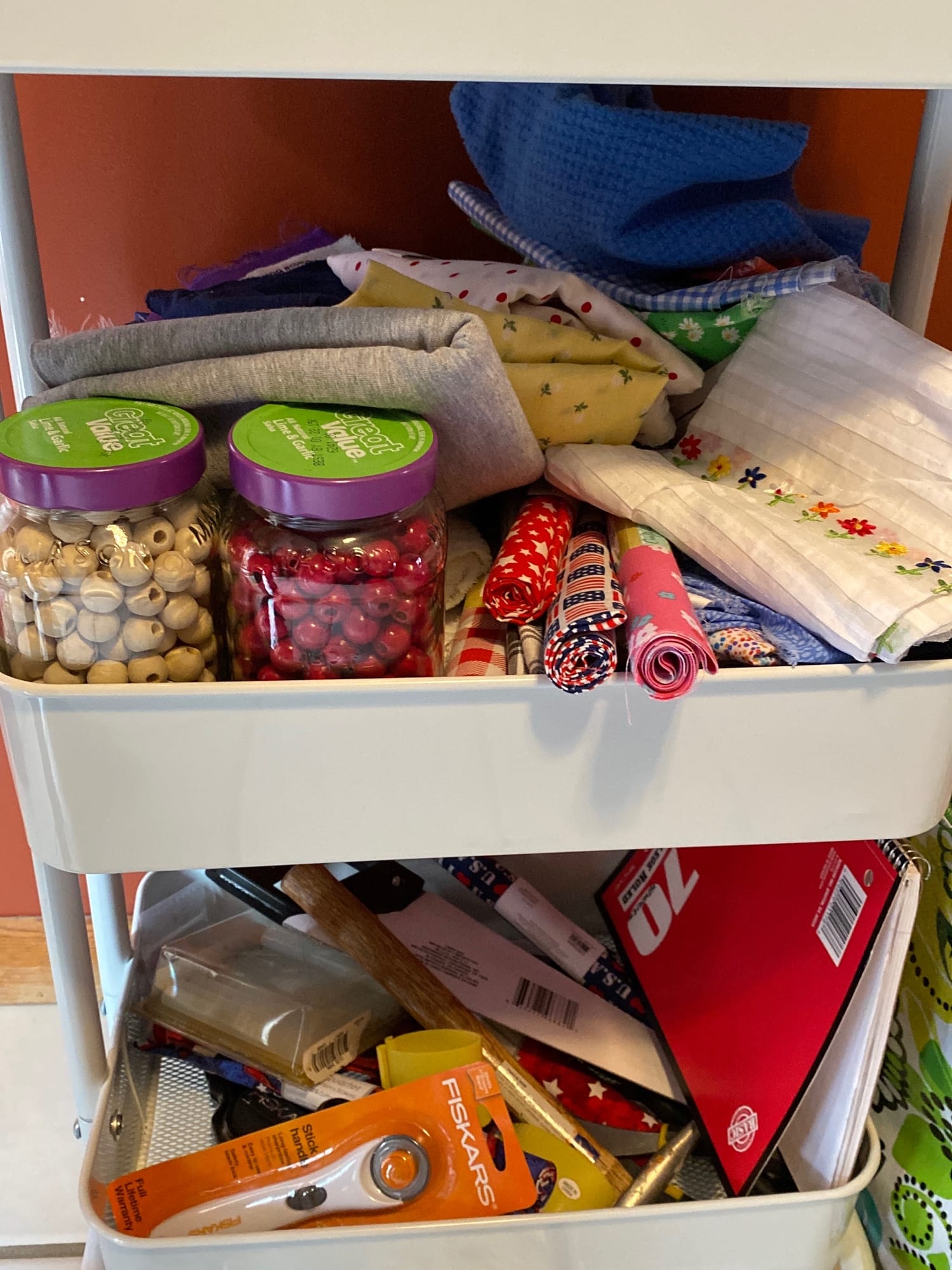 127 Step stool, eureka electric mop, craft supplies, baskets, closet contents as shown in pictures