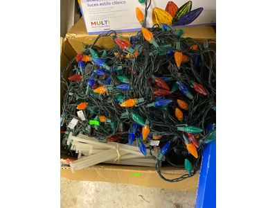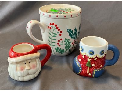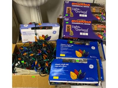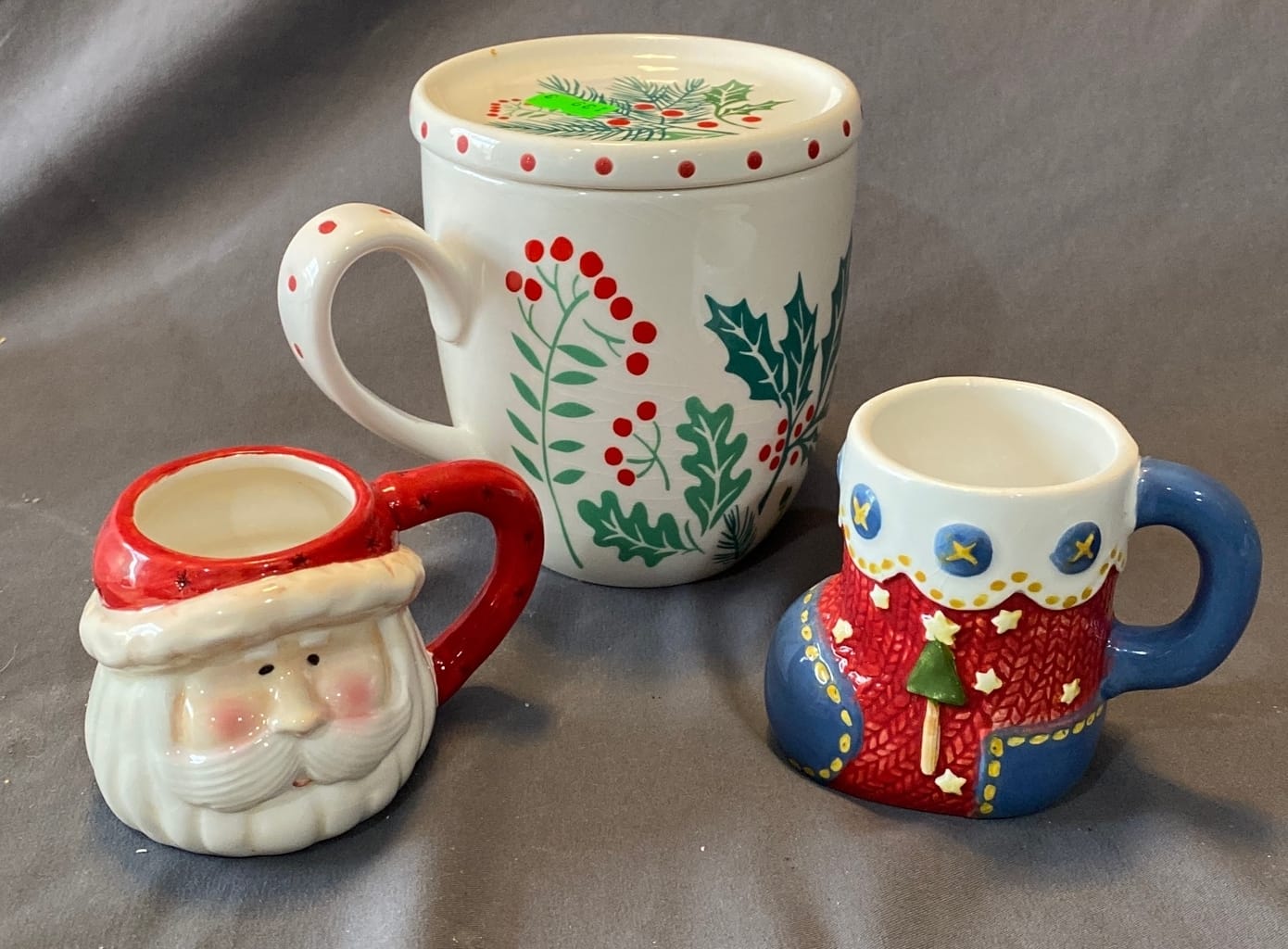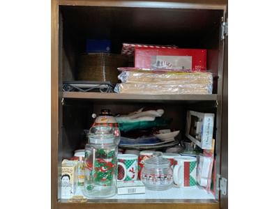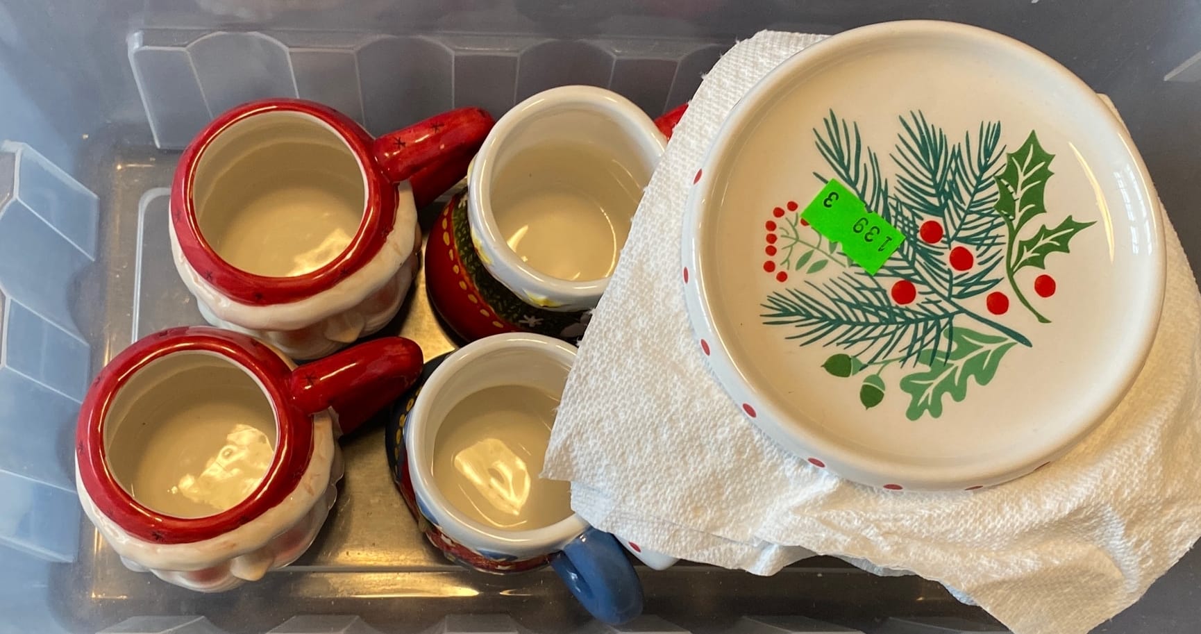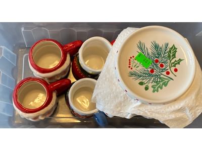 128 Holiday decorations, mugs, corn holders, office supplies, plates, contents as shown in pictures
