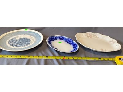 141 Flow Blue Platter 10in, W.S. George platters 12in, Country Charger 12in