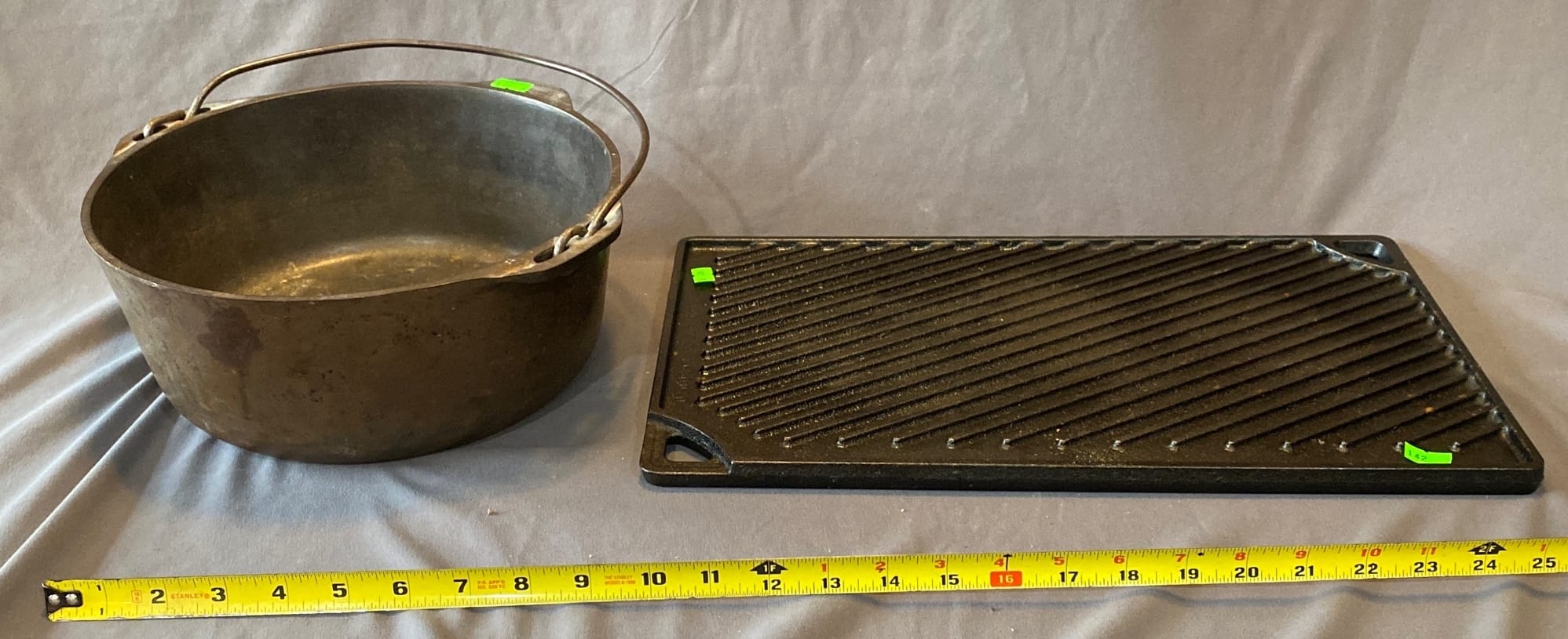 142 2 - Lodge Griddle & Dutch Oven No Lid Unmarked - 16x9.5 & 10in