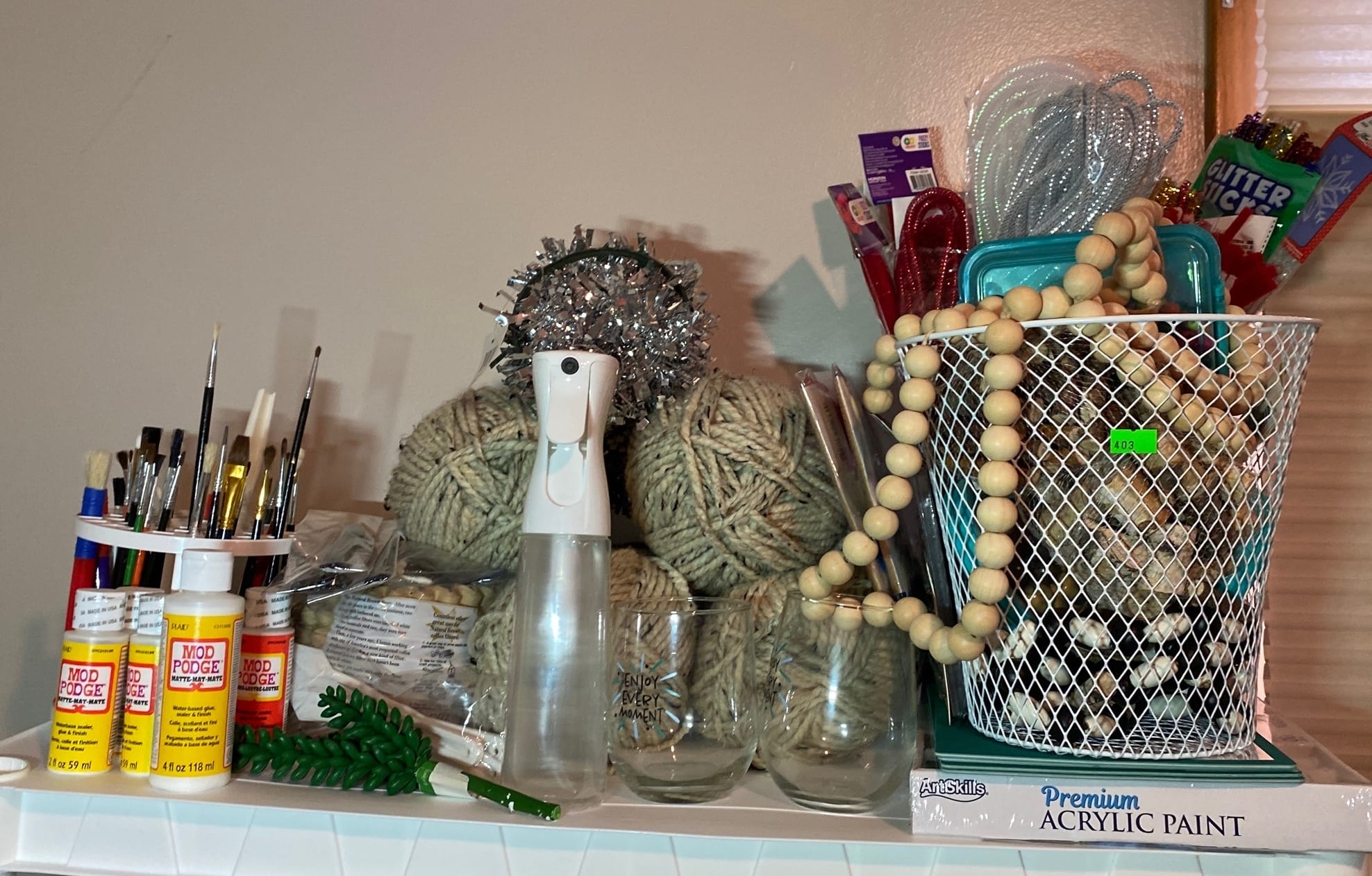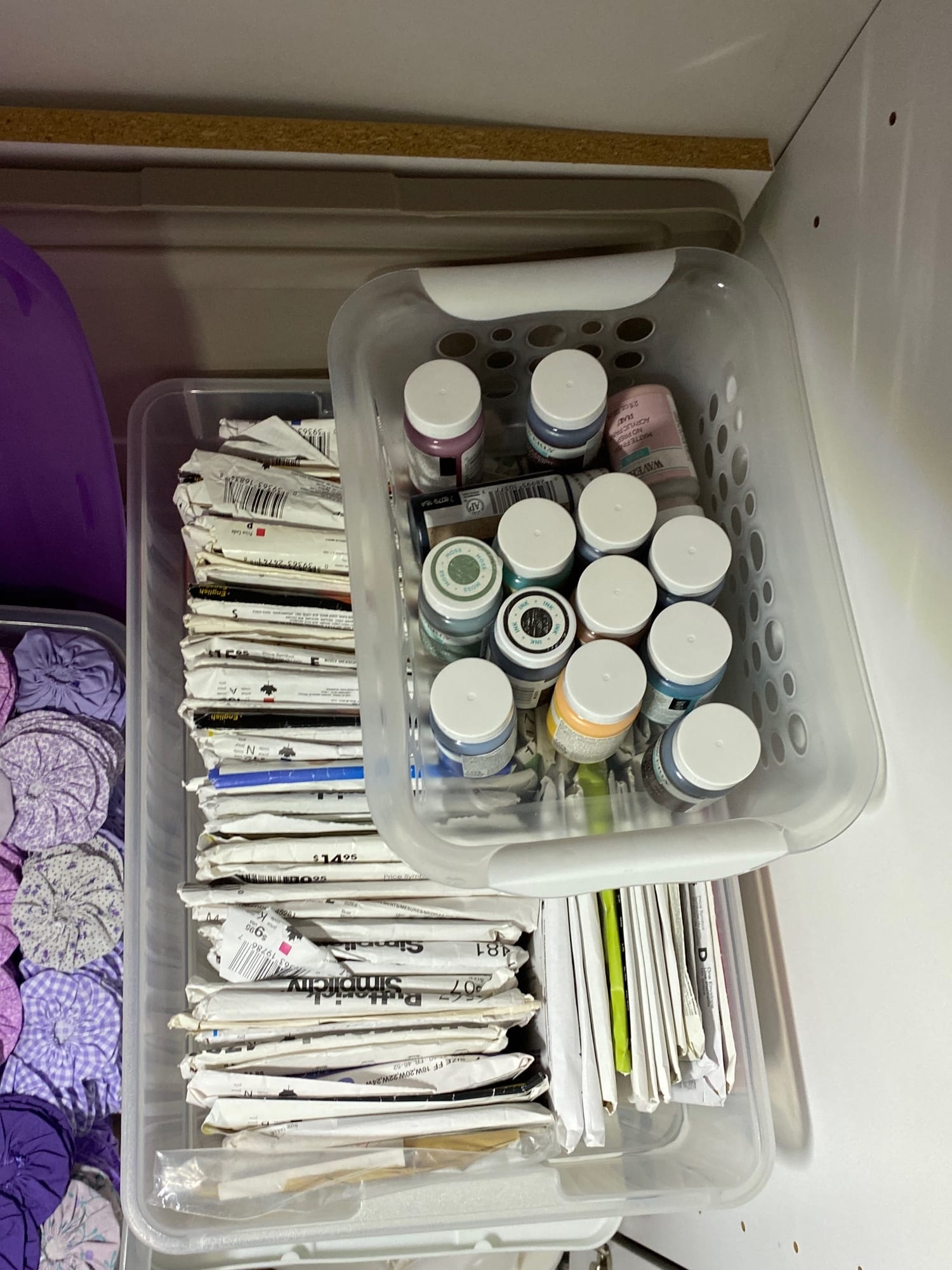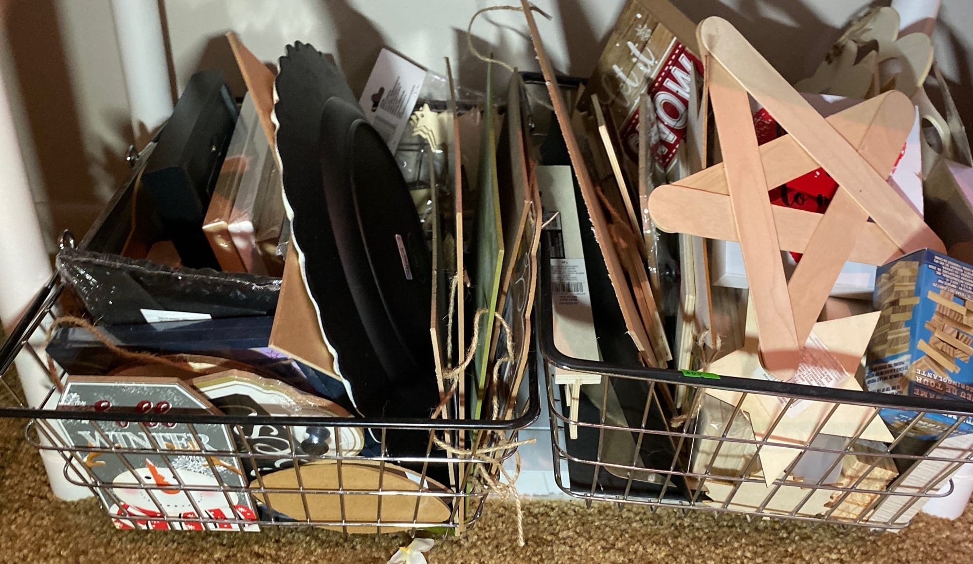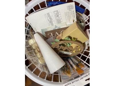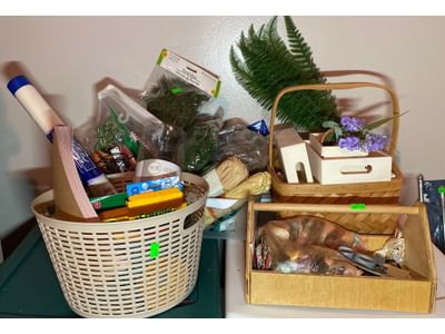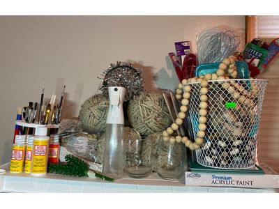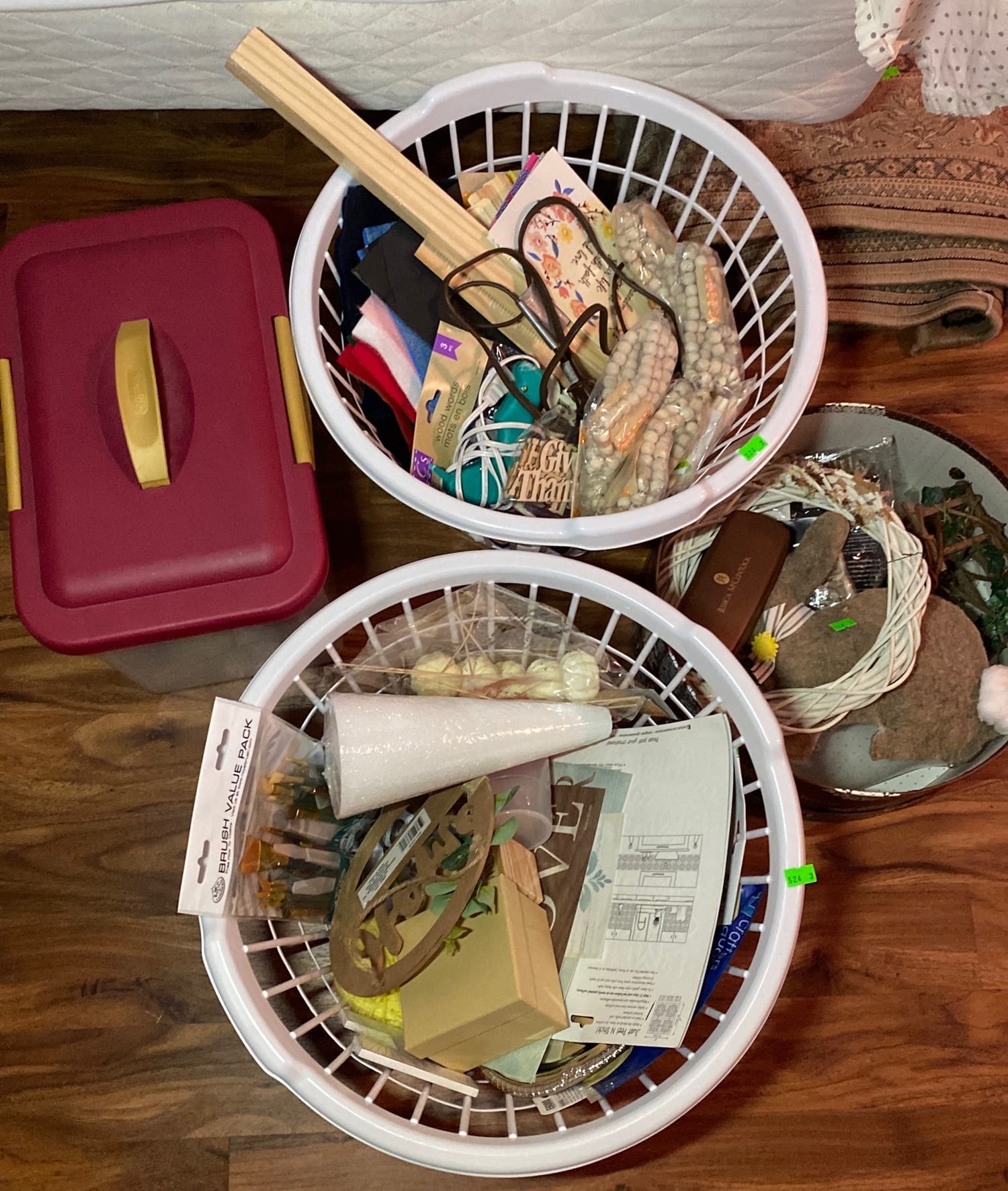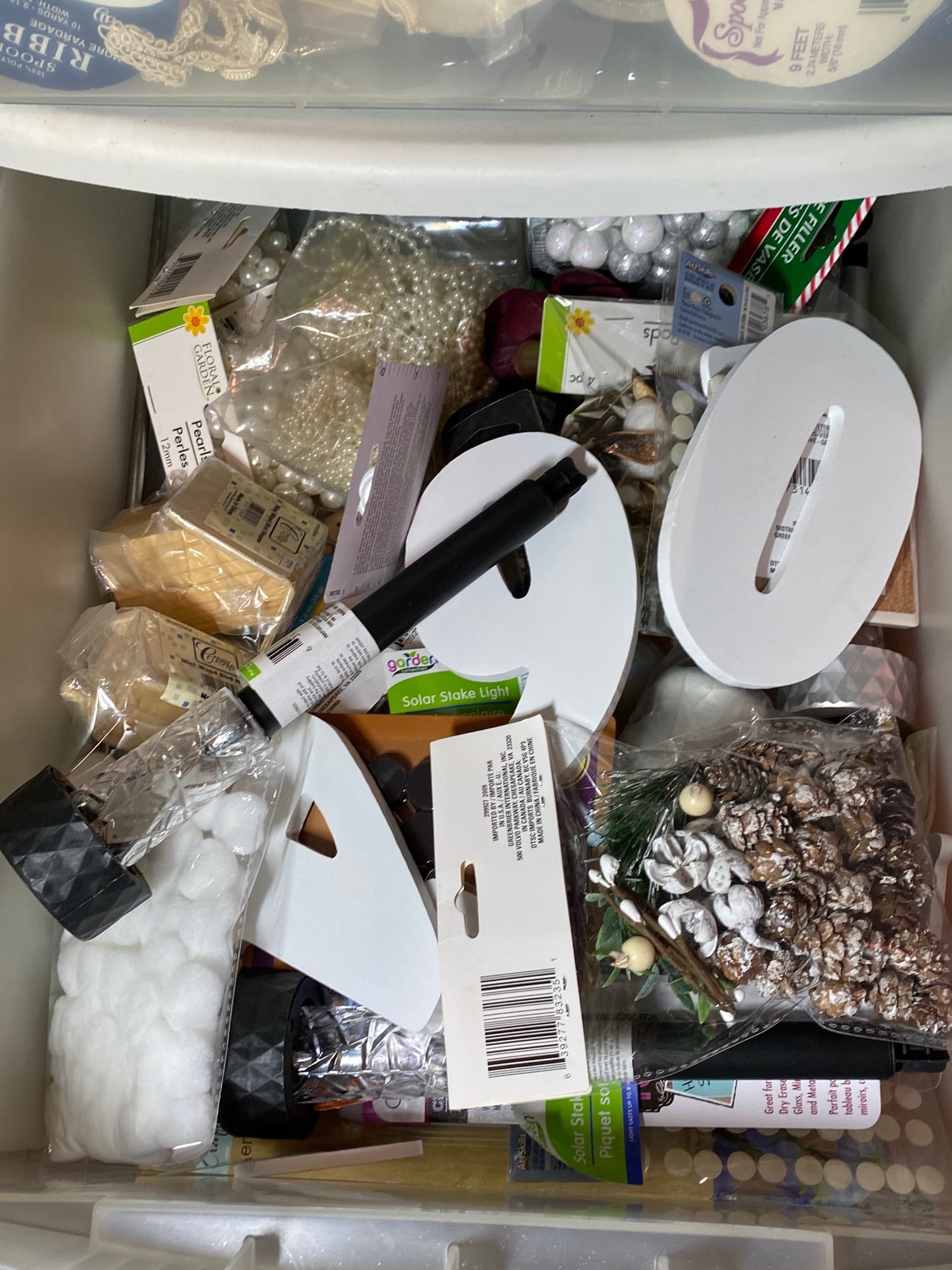 143 Craft supplies, acrylic paints, plants, plant decor, baskets, plastic organizers, misc.