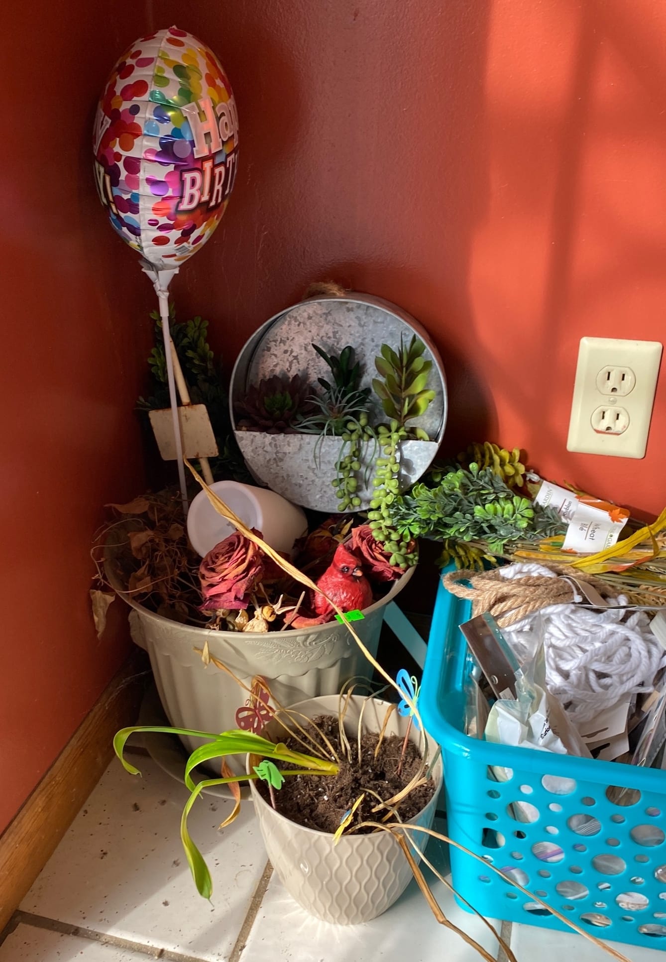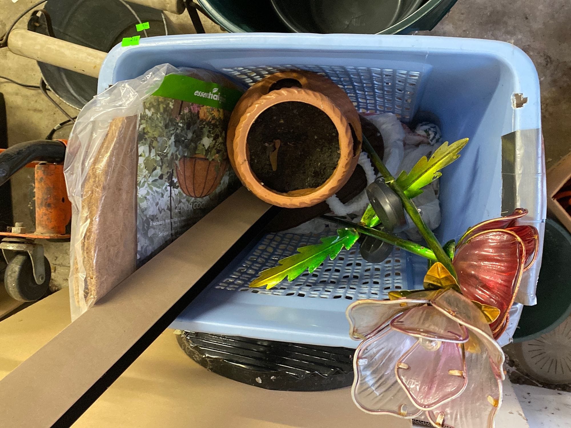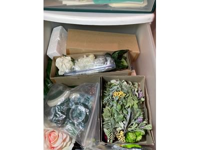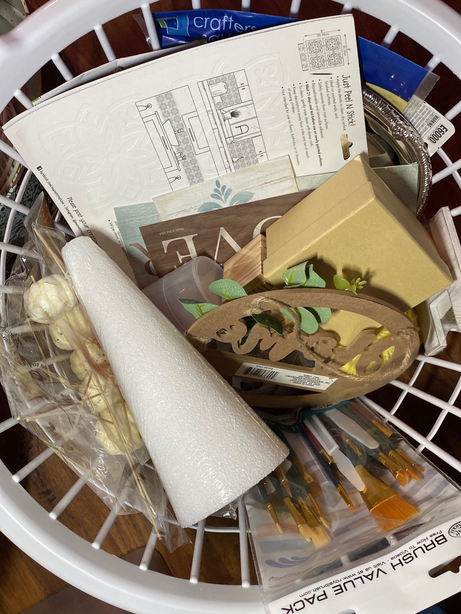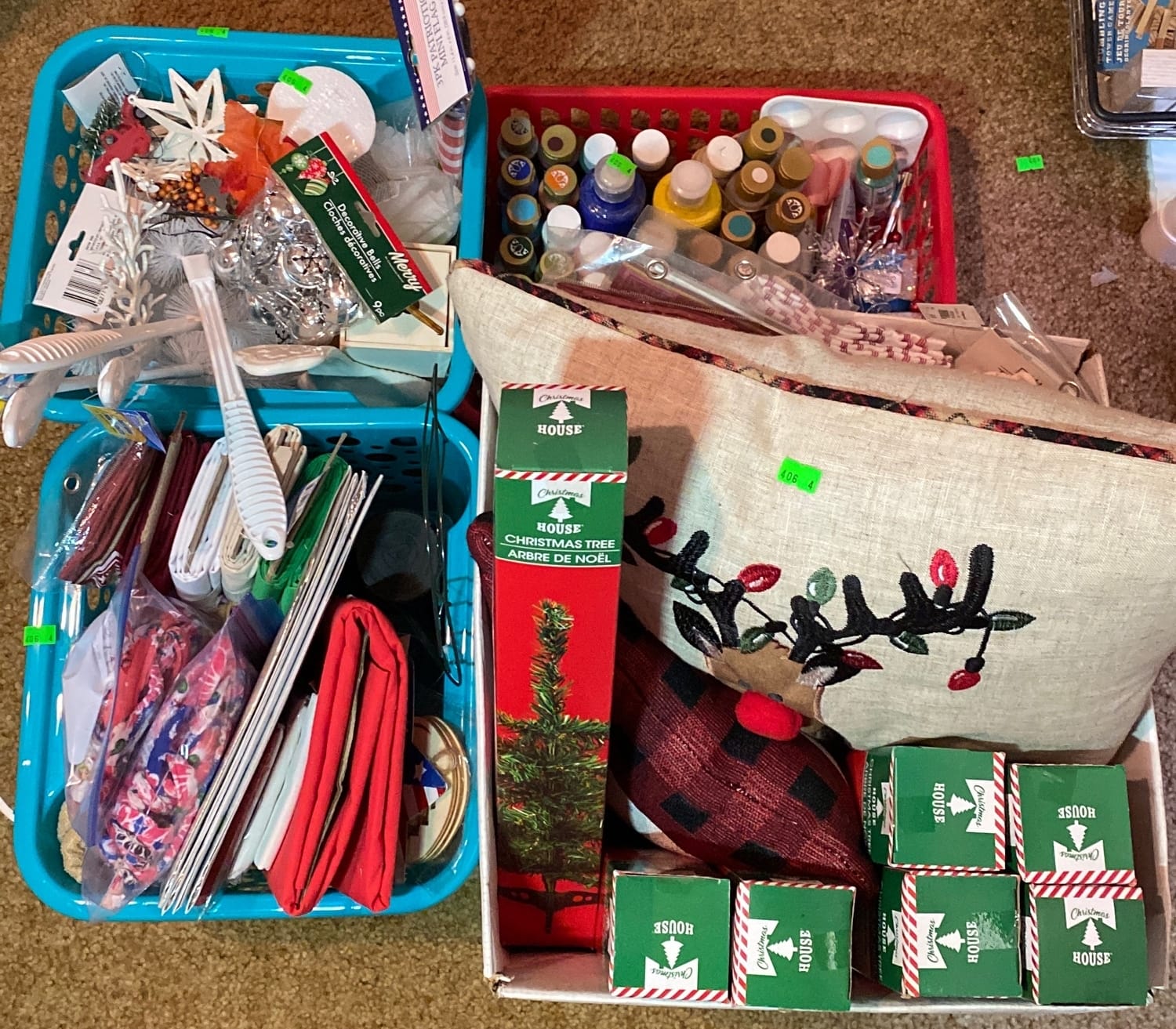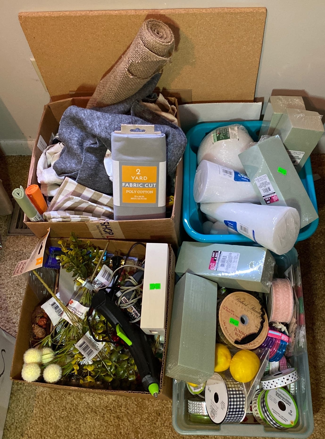 143 Craft supplies, acrylic paints, plants, plant decor, baskets, plastic organizers, misc.