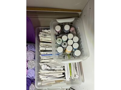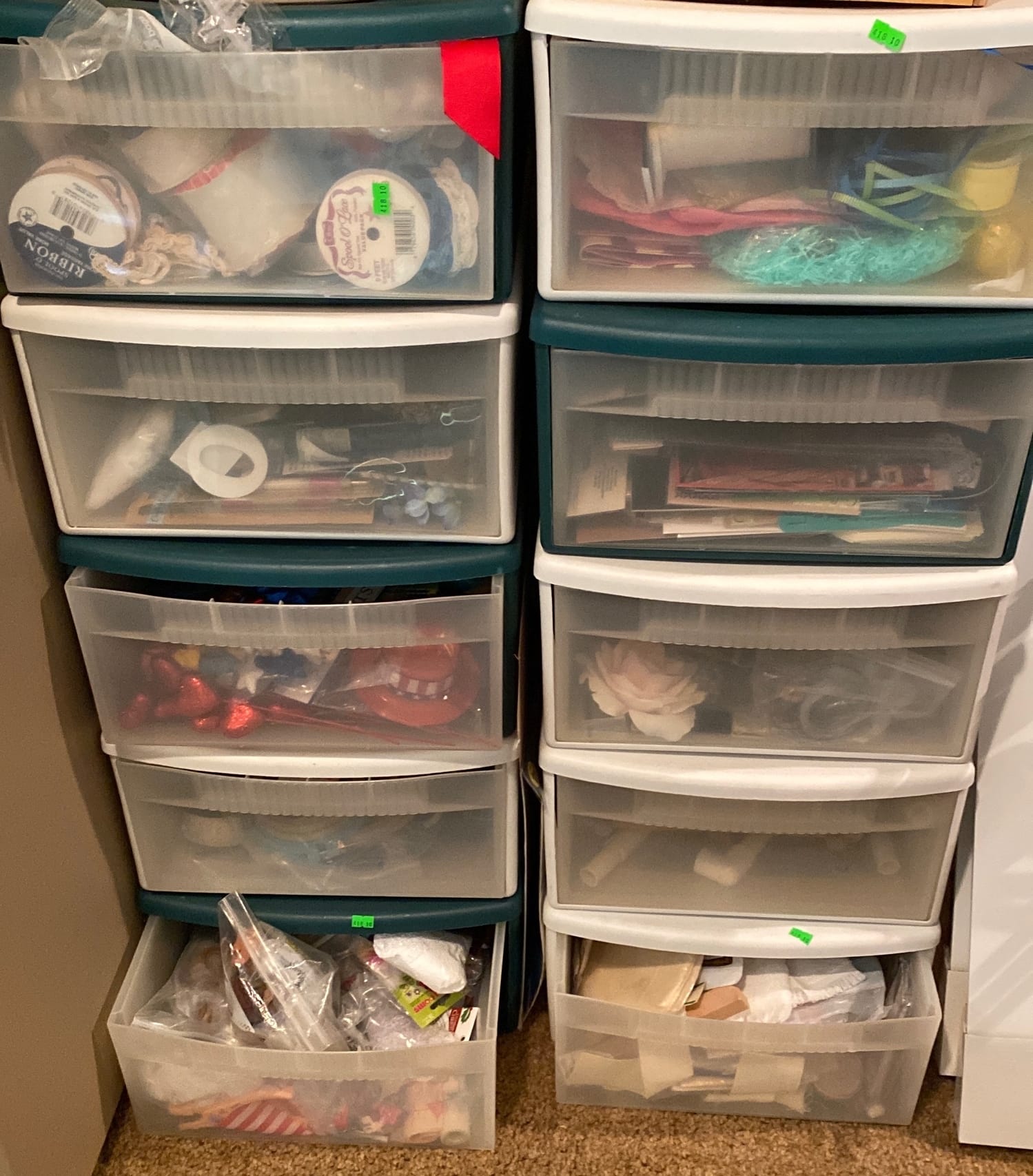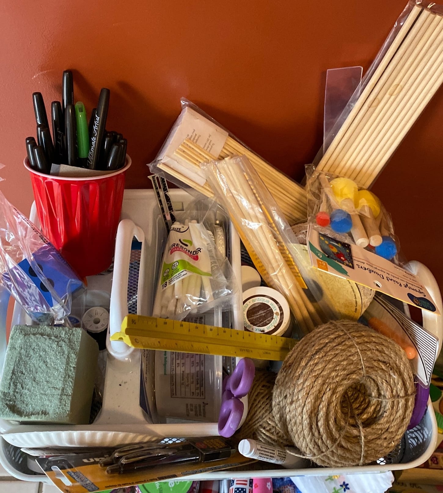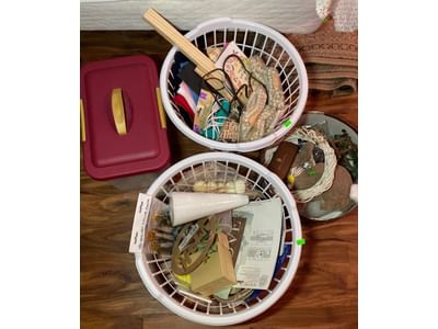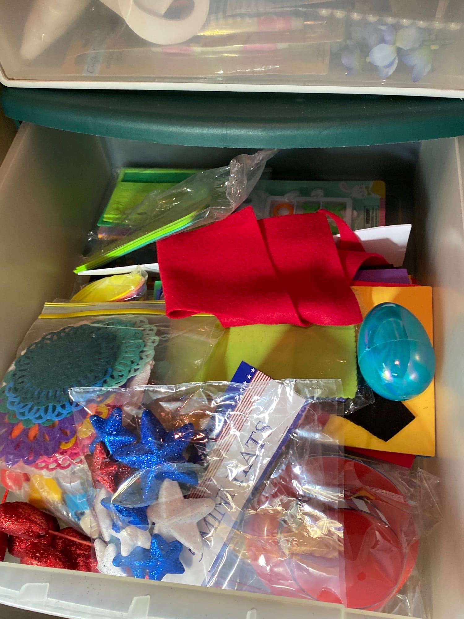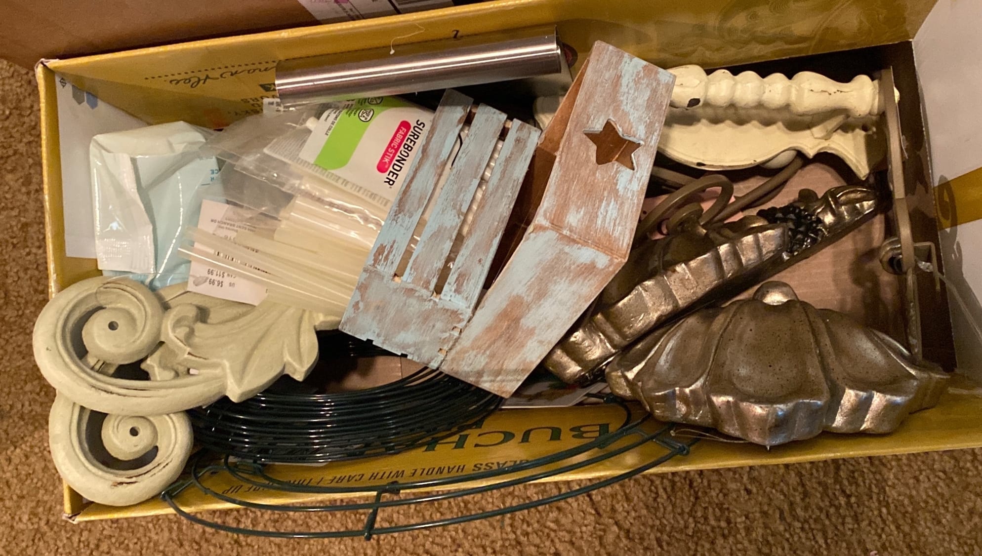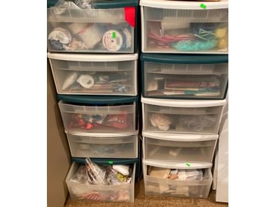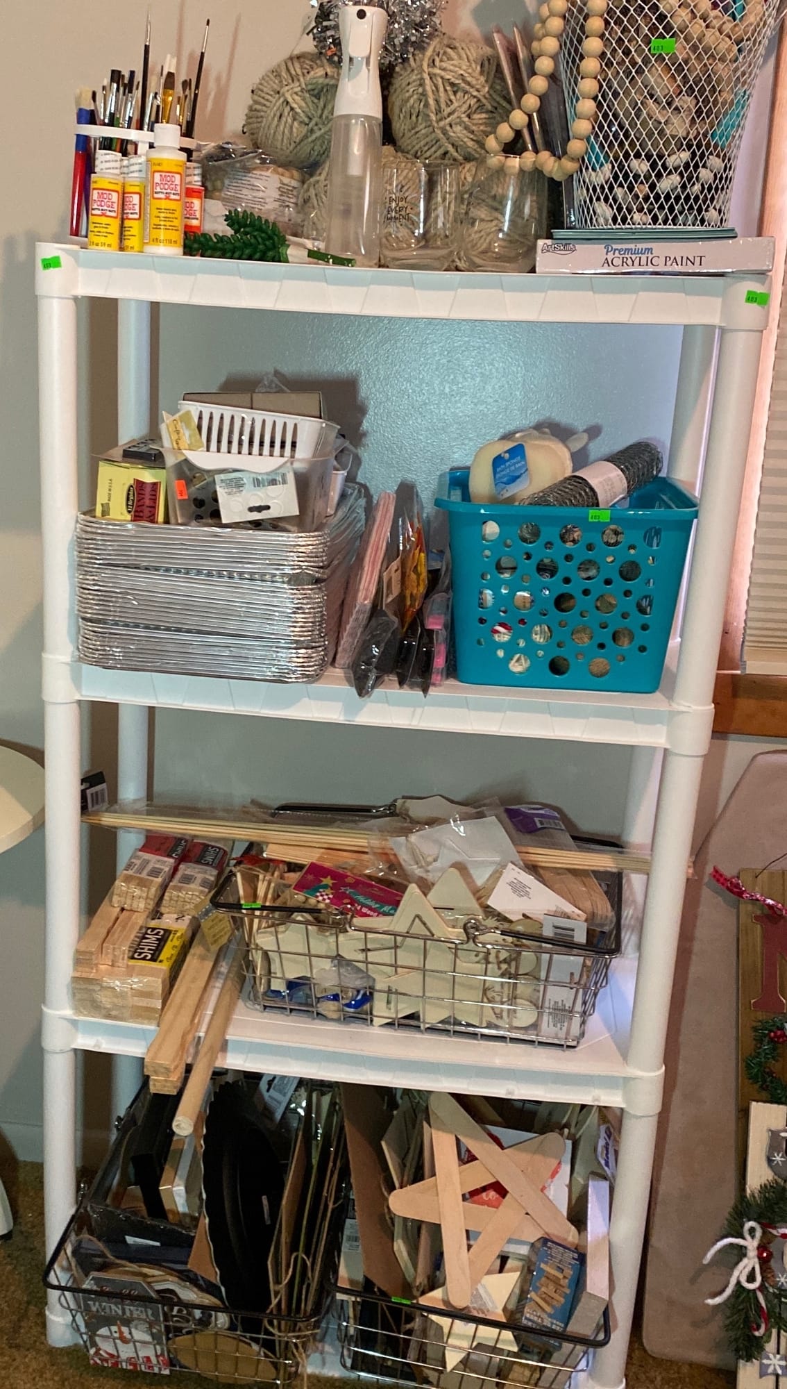143 Craft supplies, acrylic paints, plants, plant decor, baskets, plastic organizers, misc.