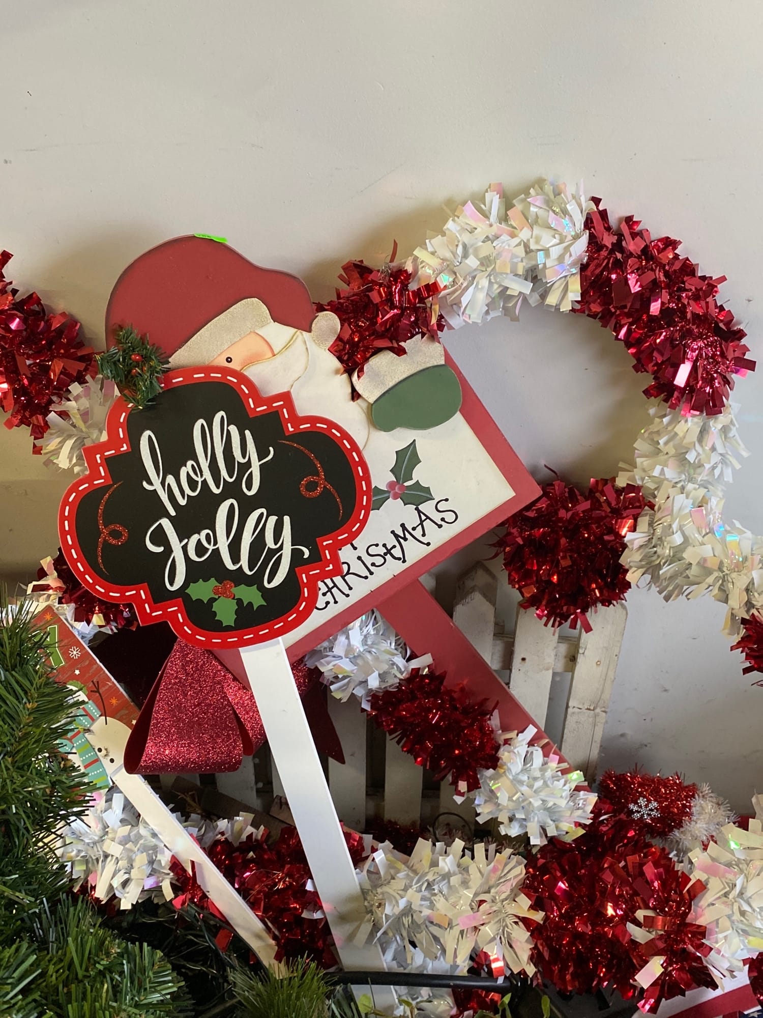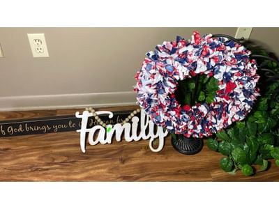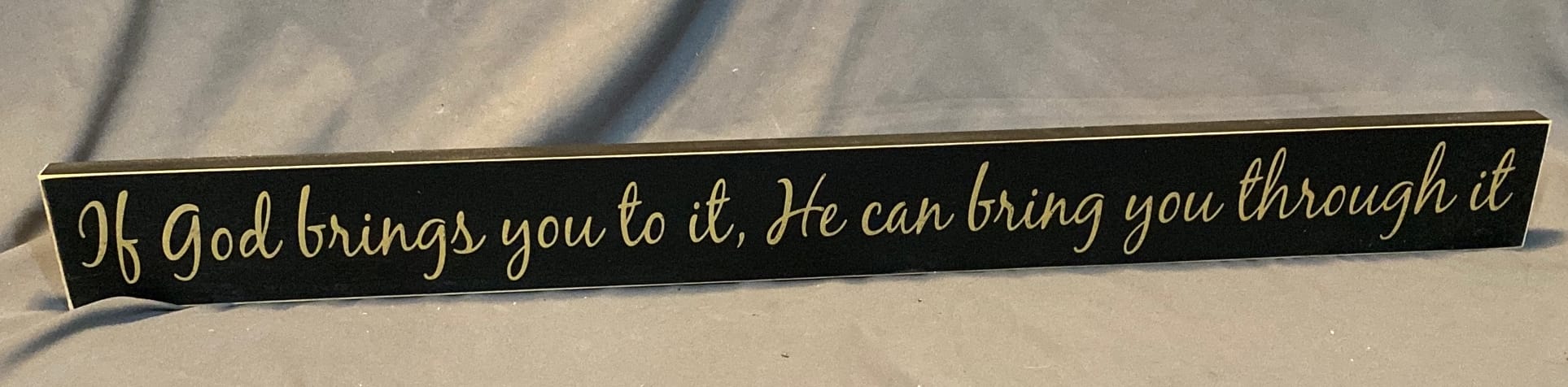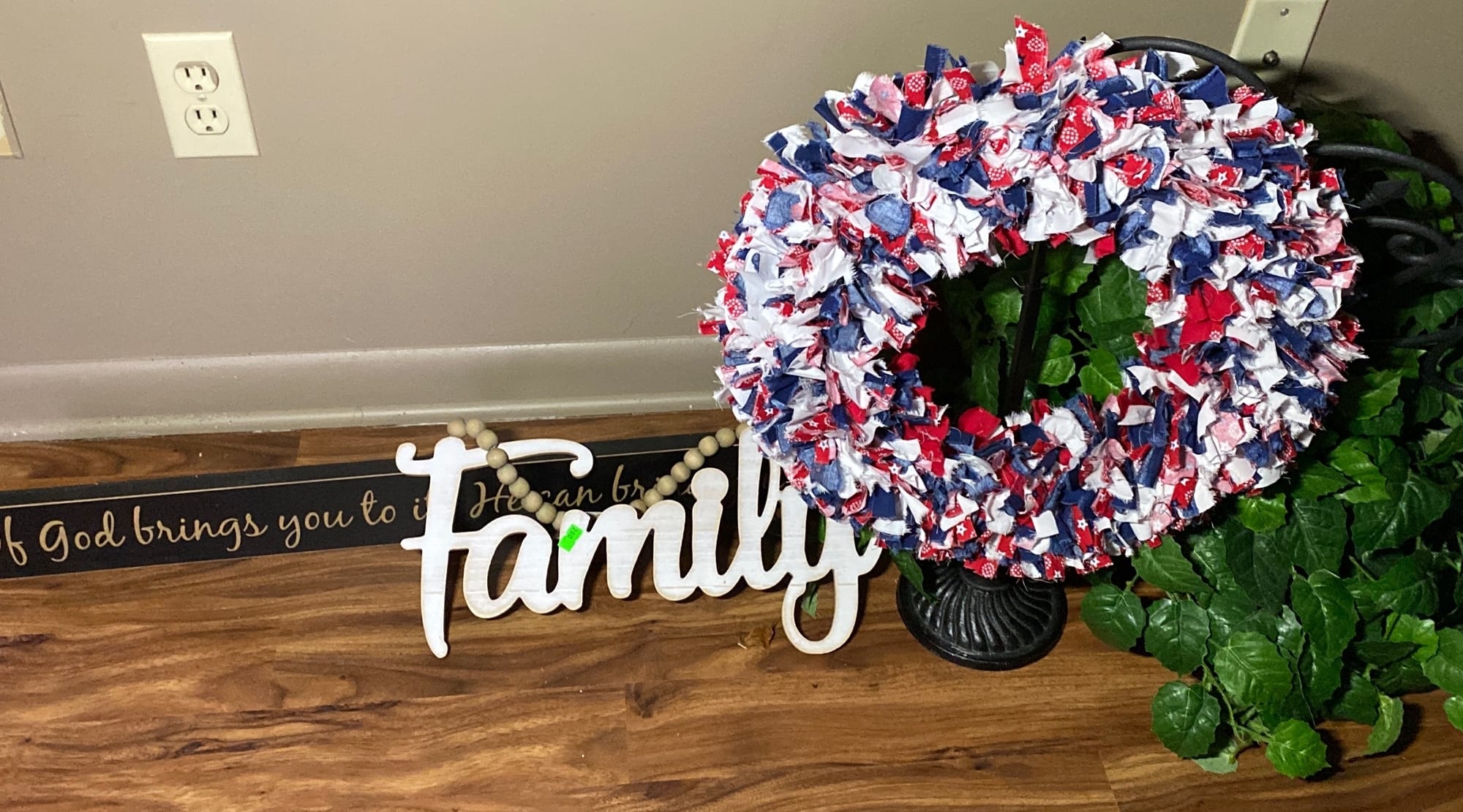 200 Wreath with stand, family wood sign, "If God Brings You to it, He Can Bring You Through it" wood sign, plastic decor