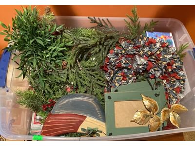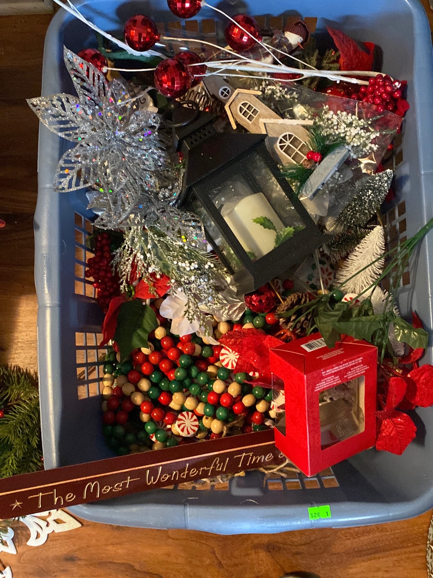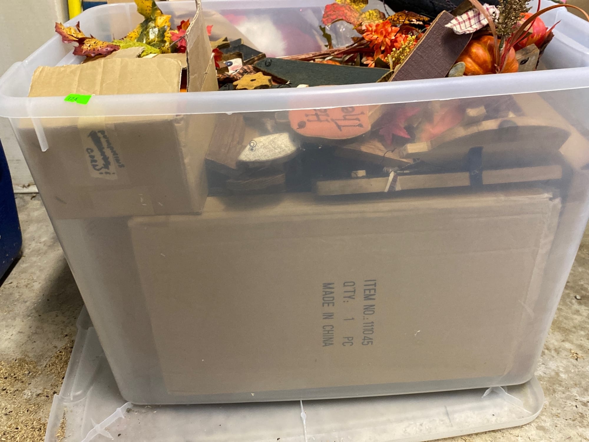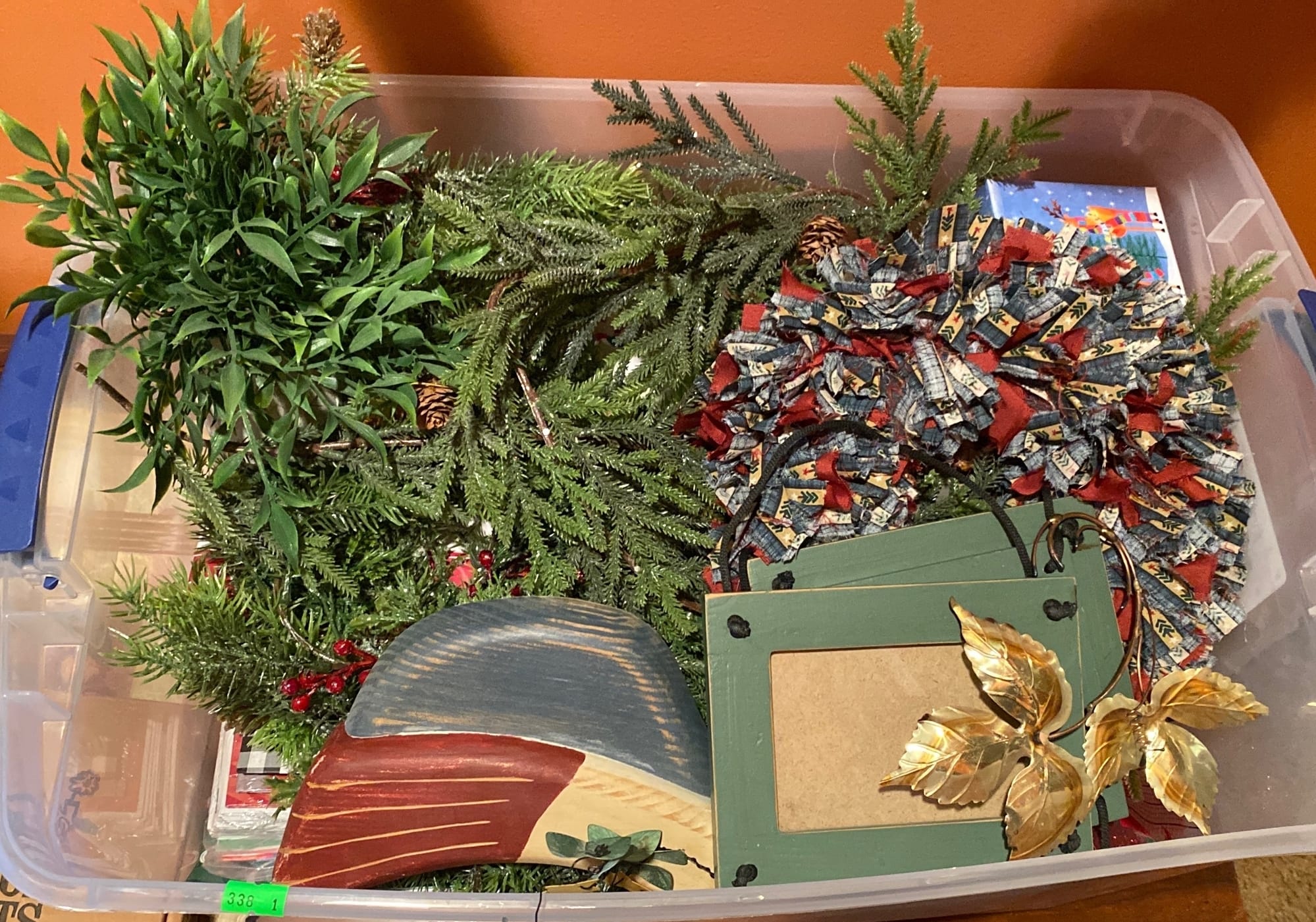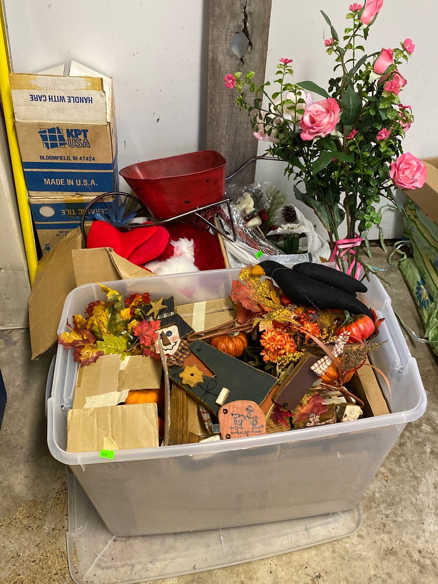 724 Country, faux flowers, garland, holiday decor in plastic tote w/ lid