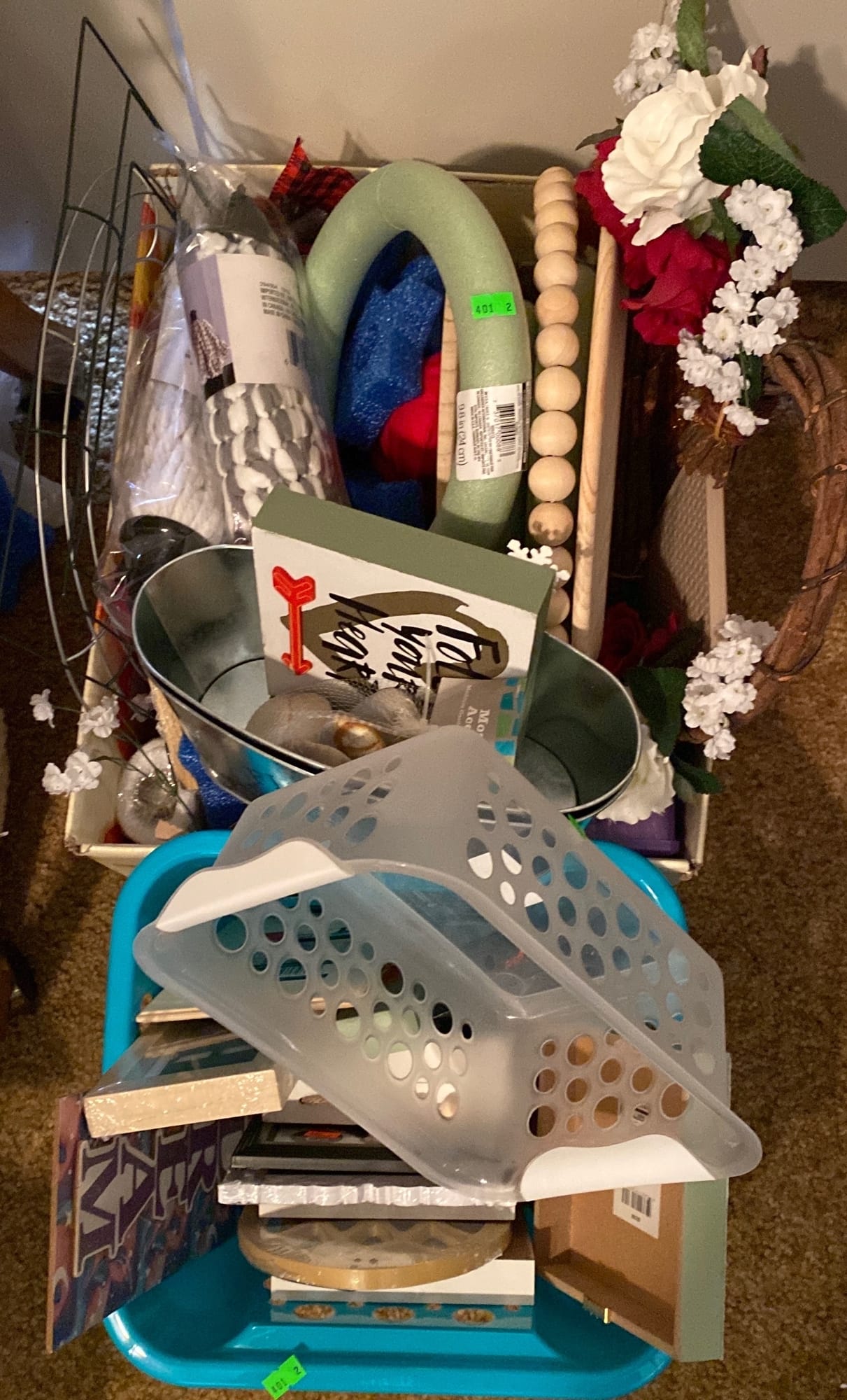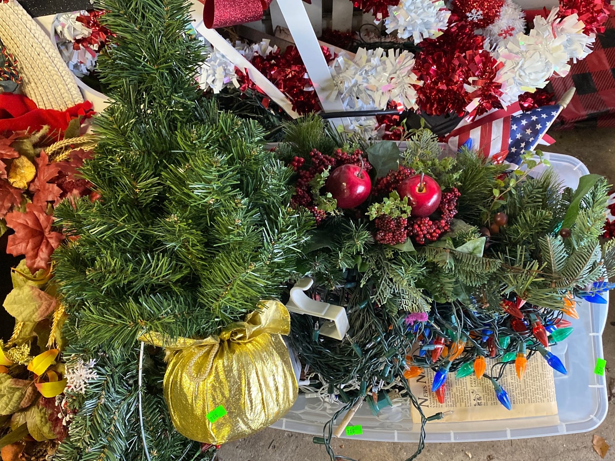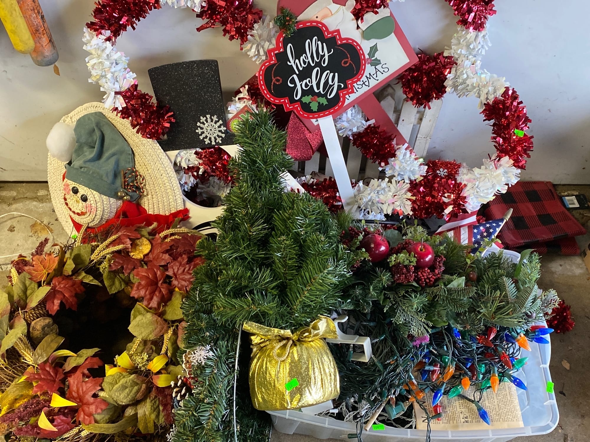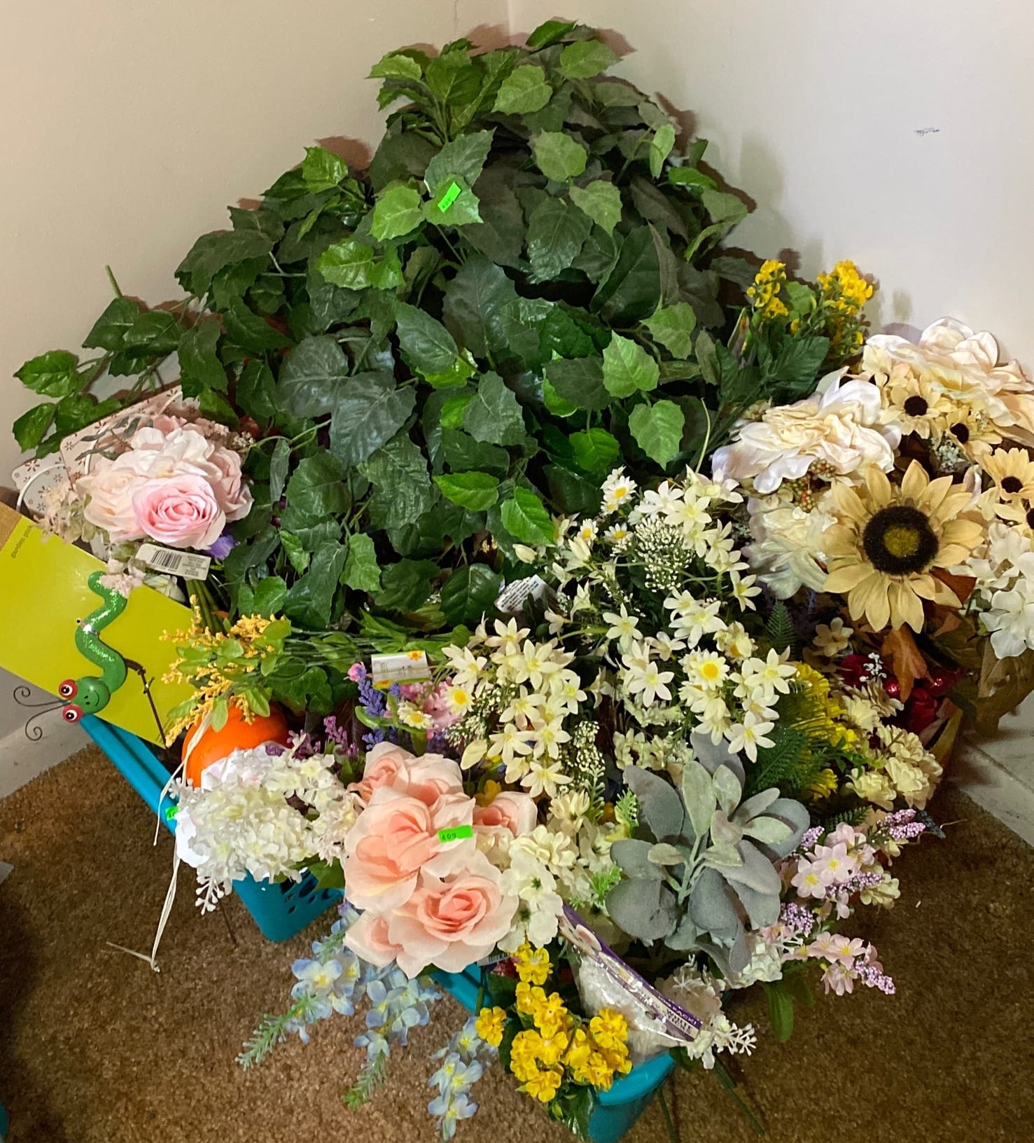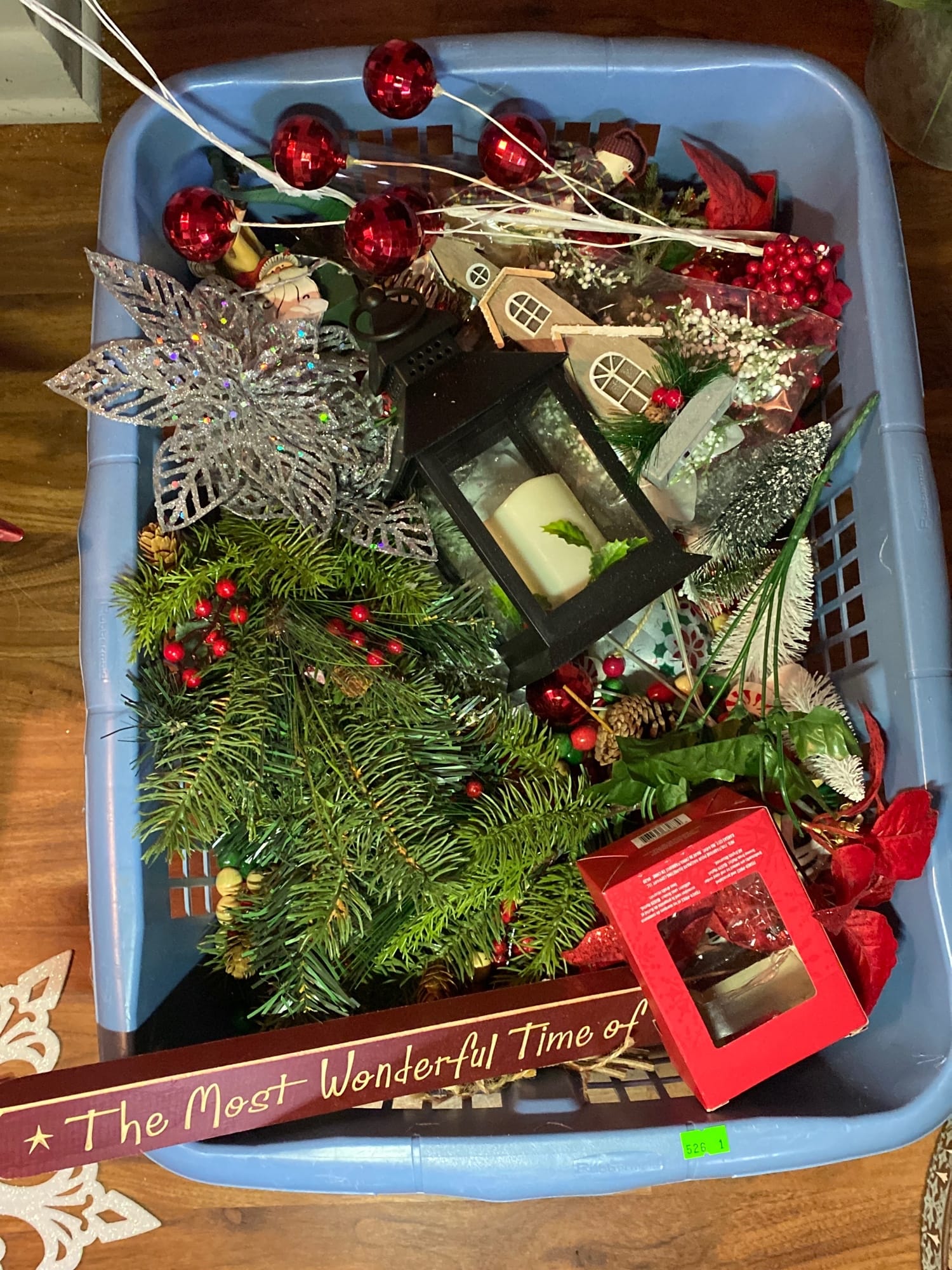 724 Country, faux flowers, garland, holiday decor in plastic tote w/ lid