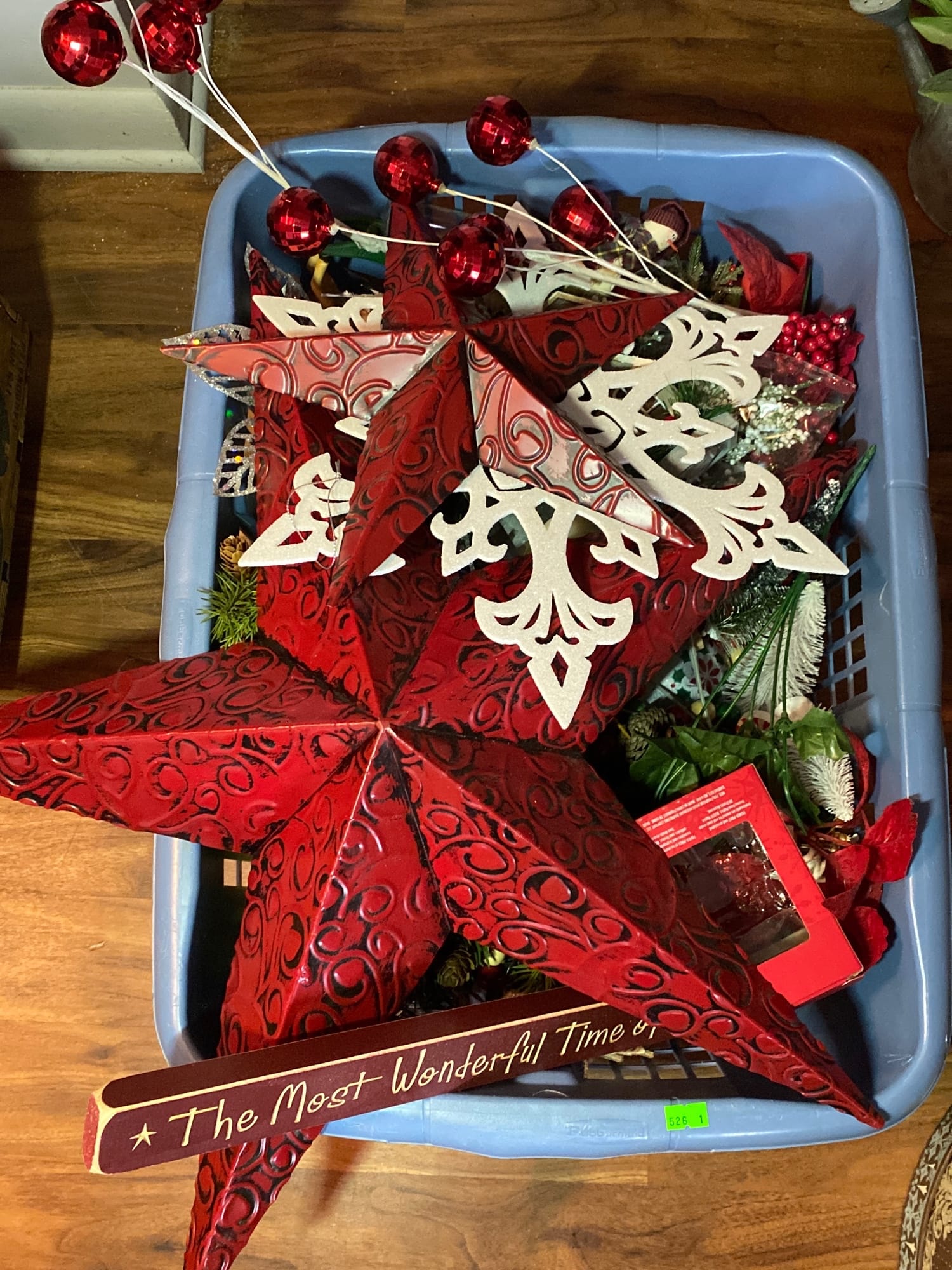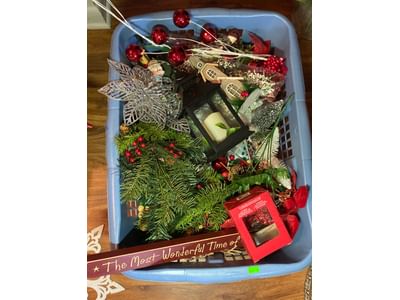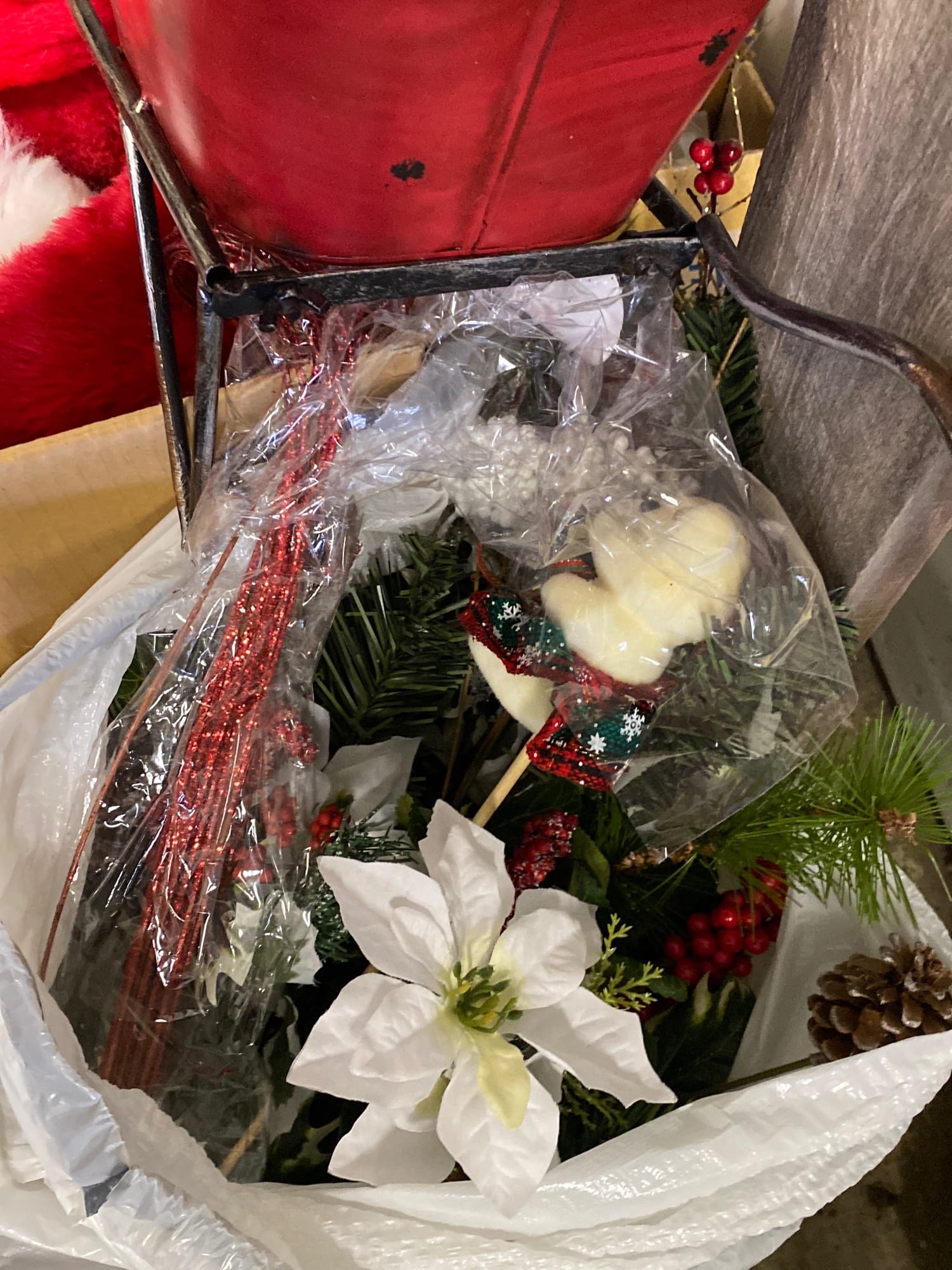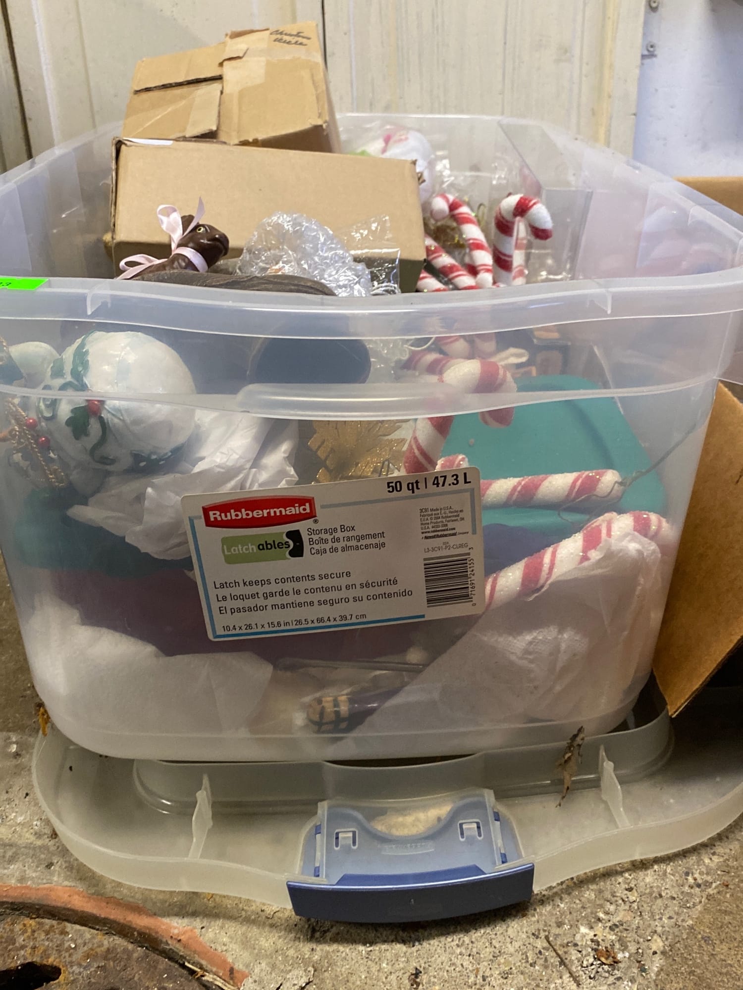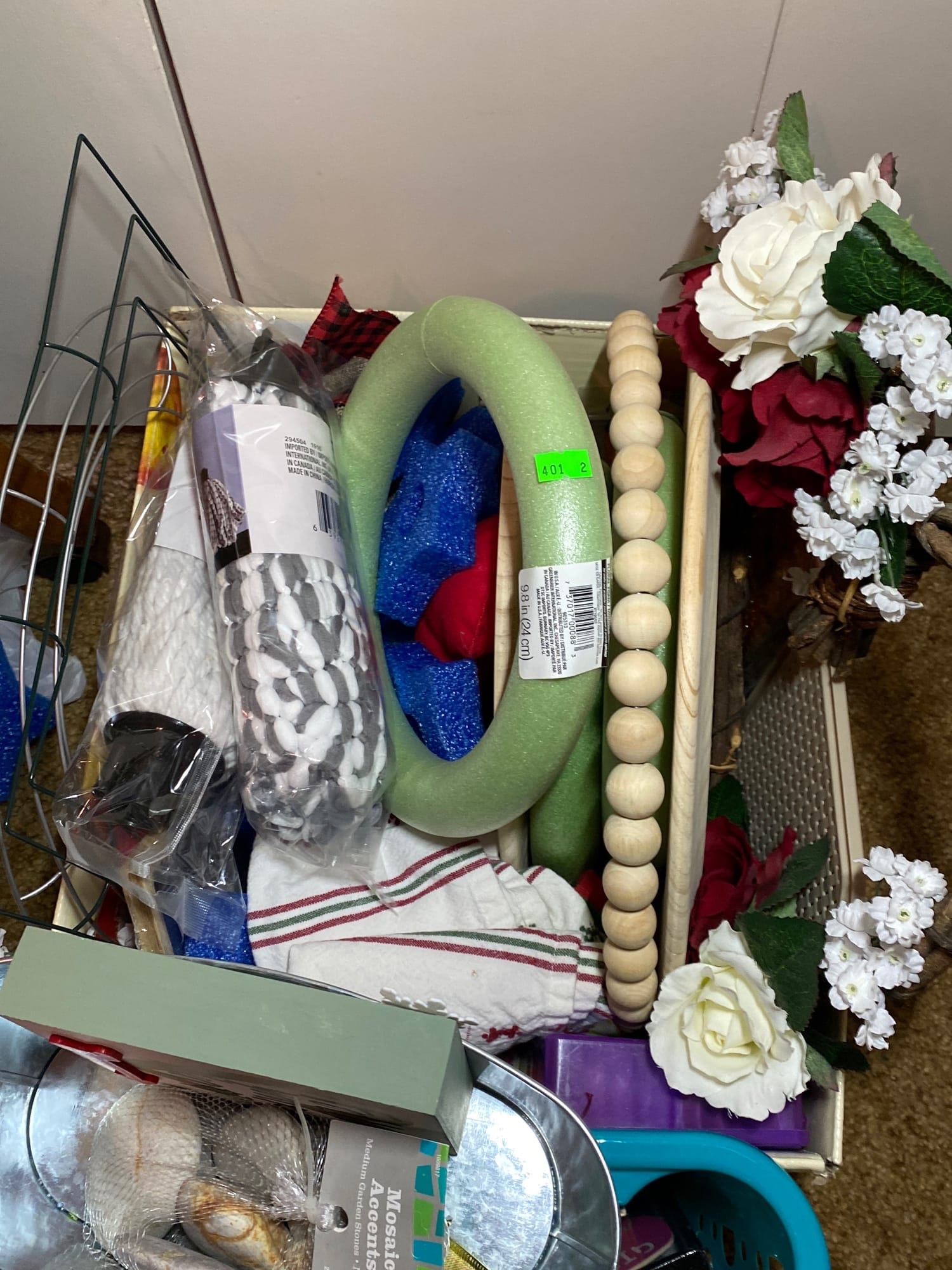 724 Country, faux flowers, garland, holiday decor in plastic tote w/ lid