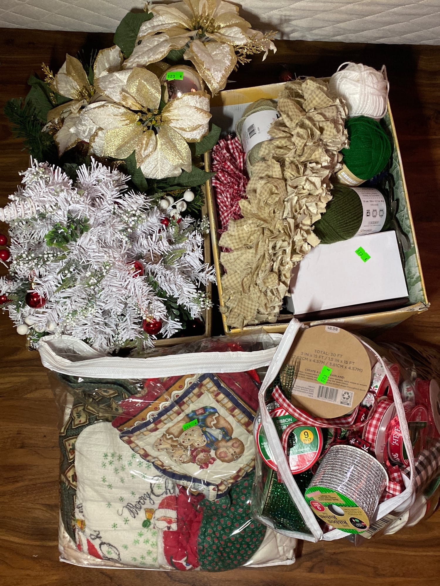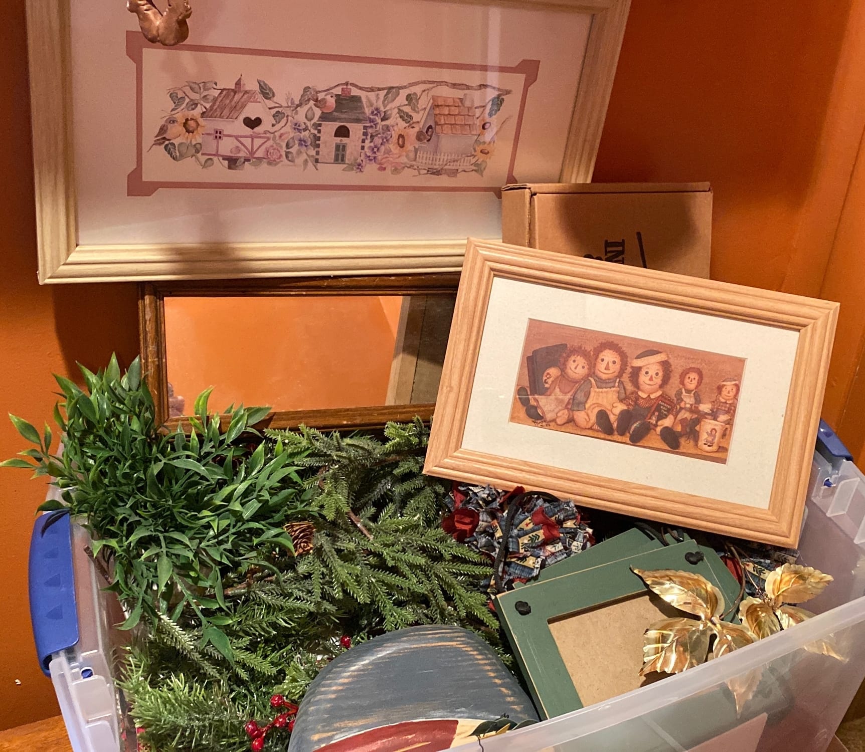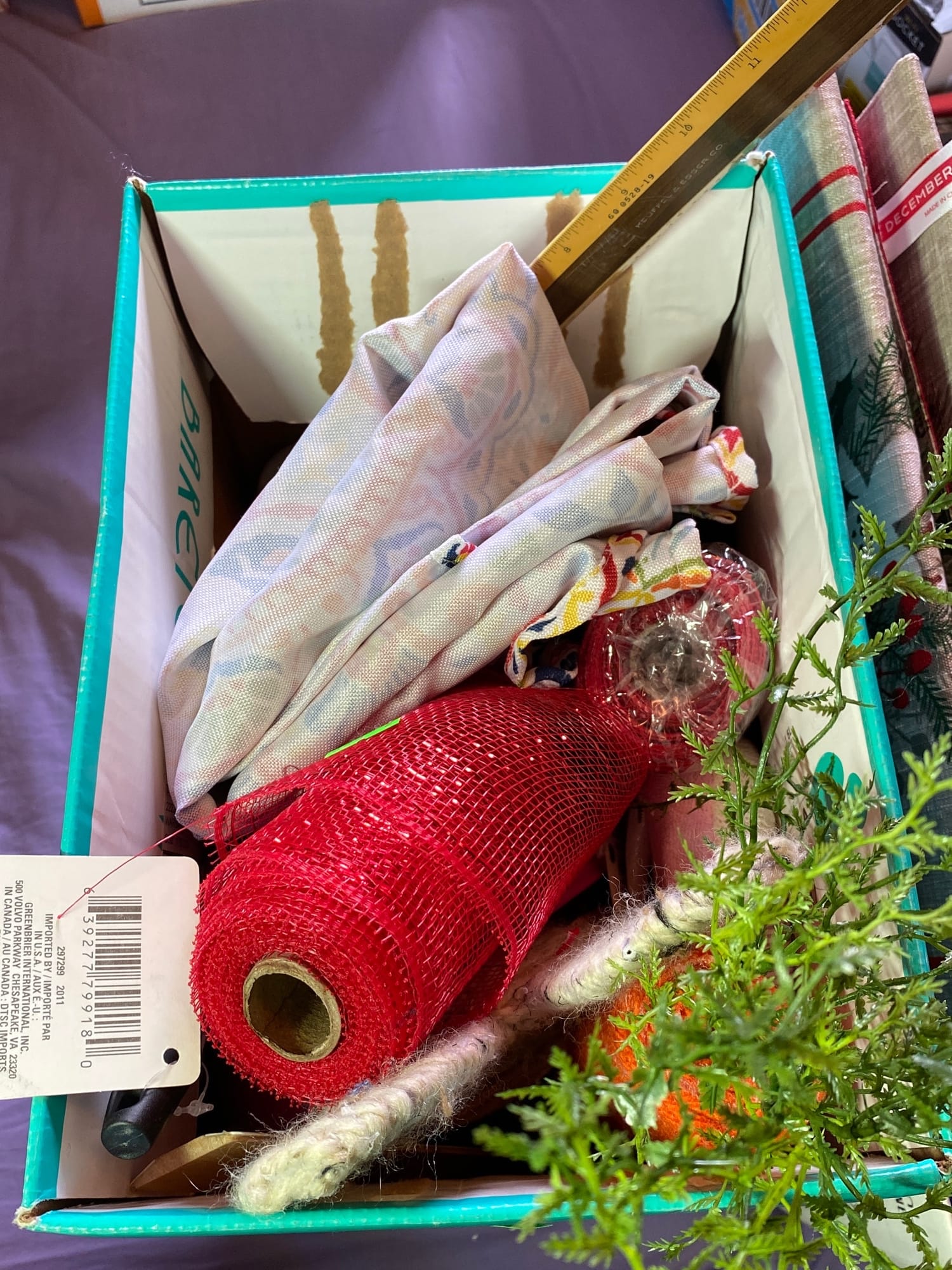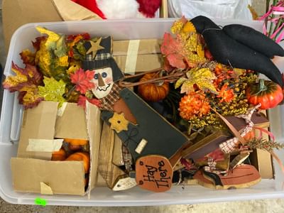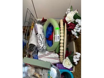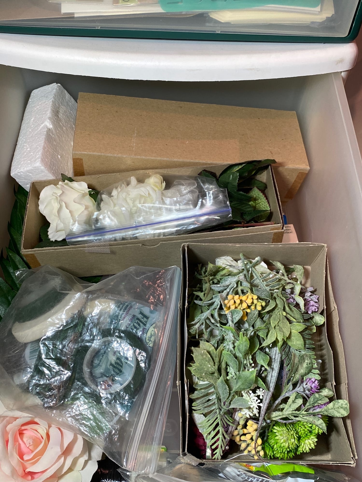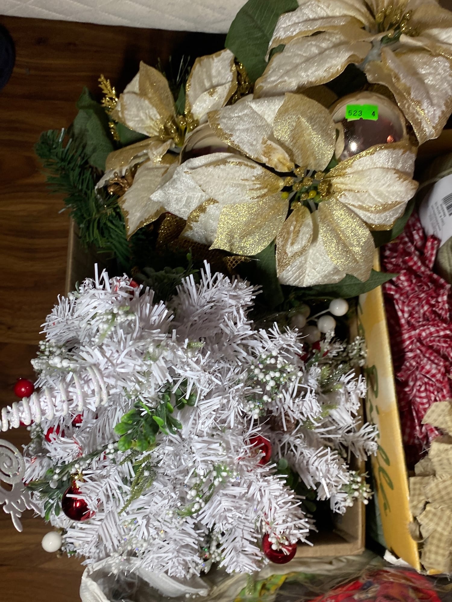 724 Country, faux flowers, garland, holiday decor in plastic tote w/ lid
