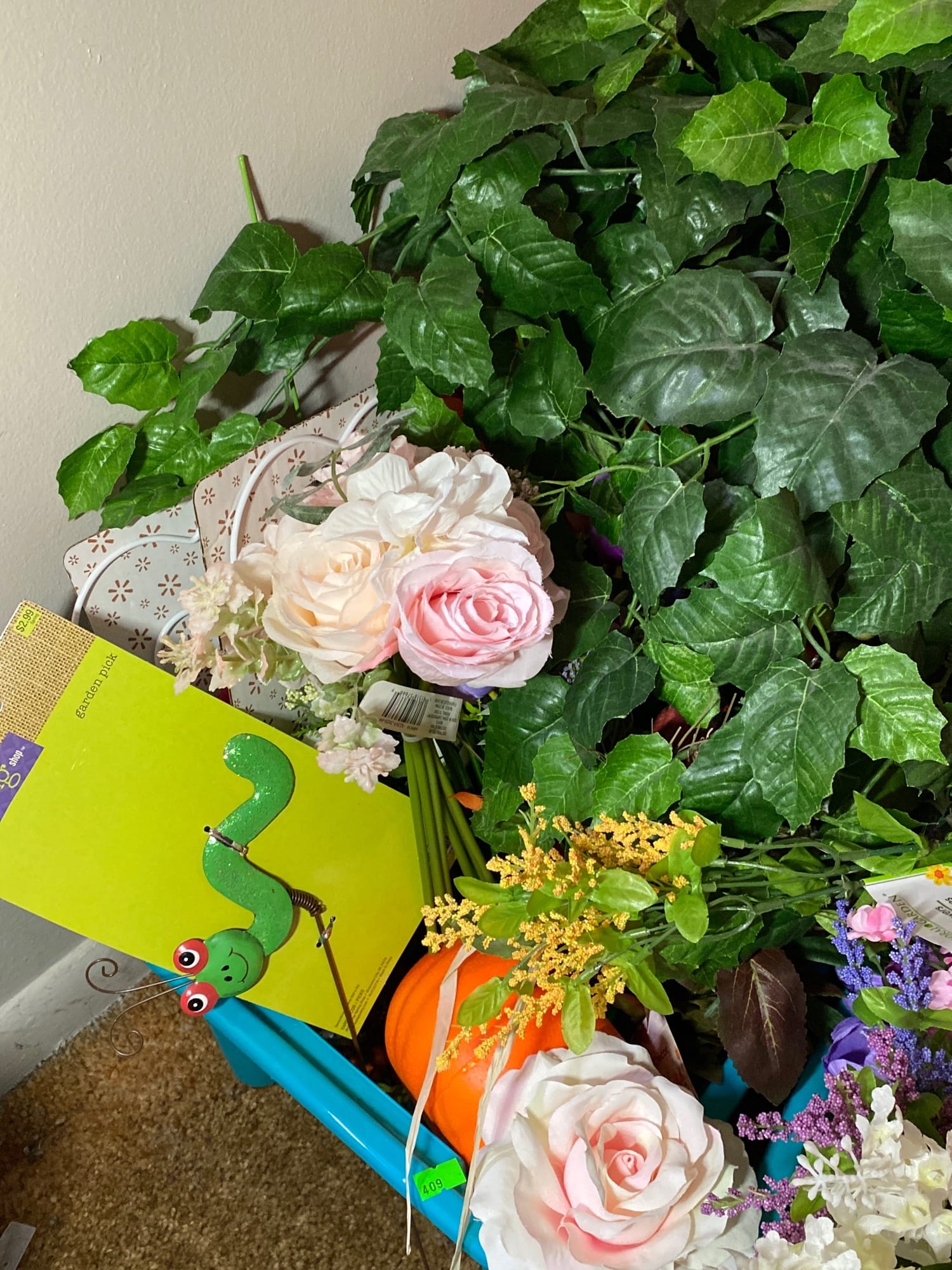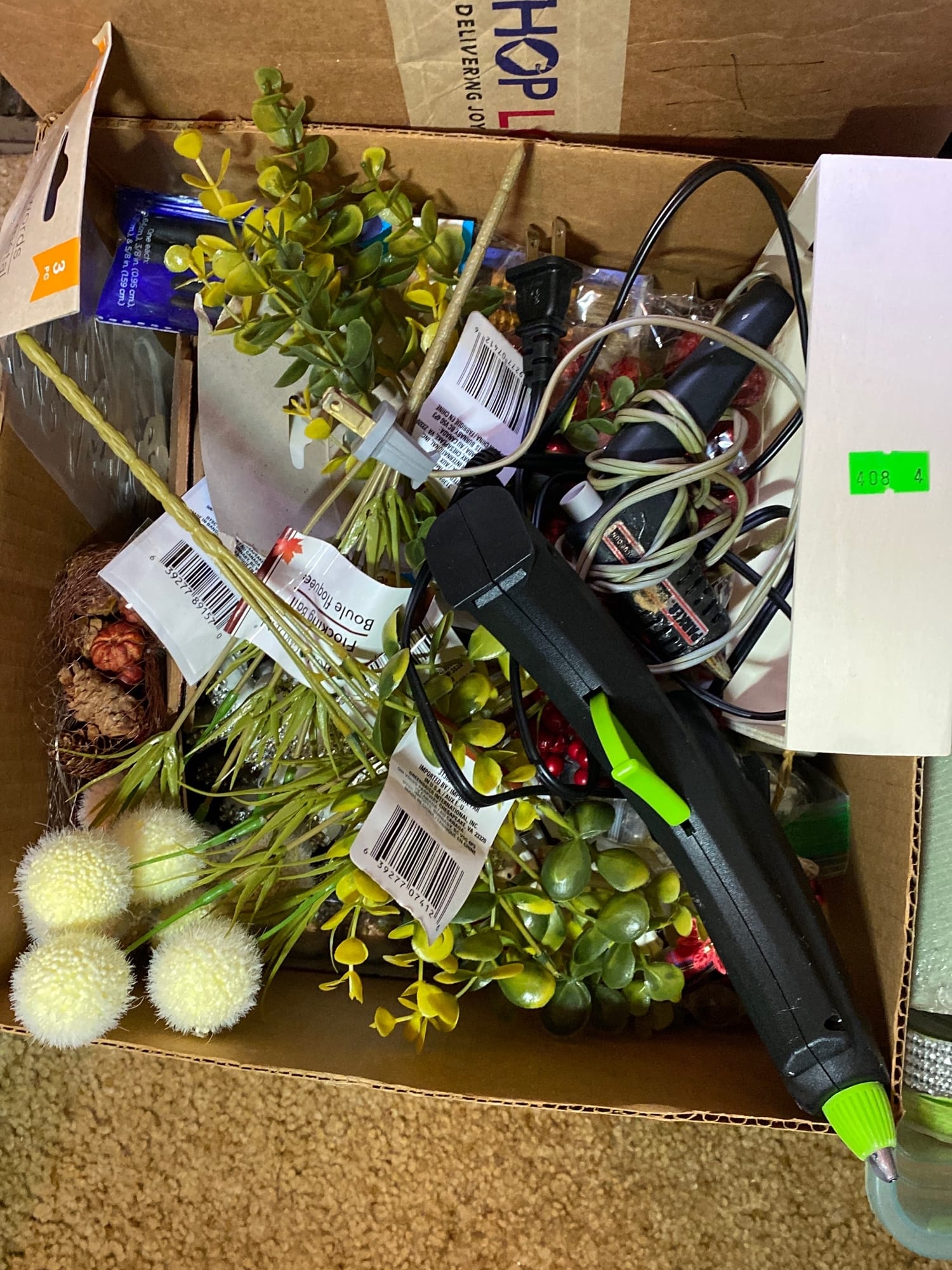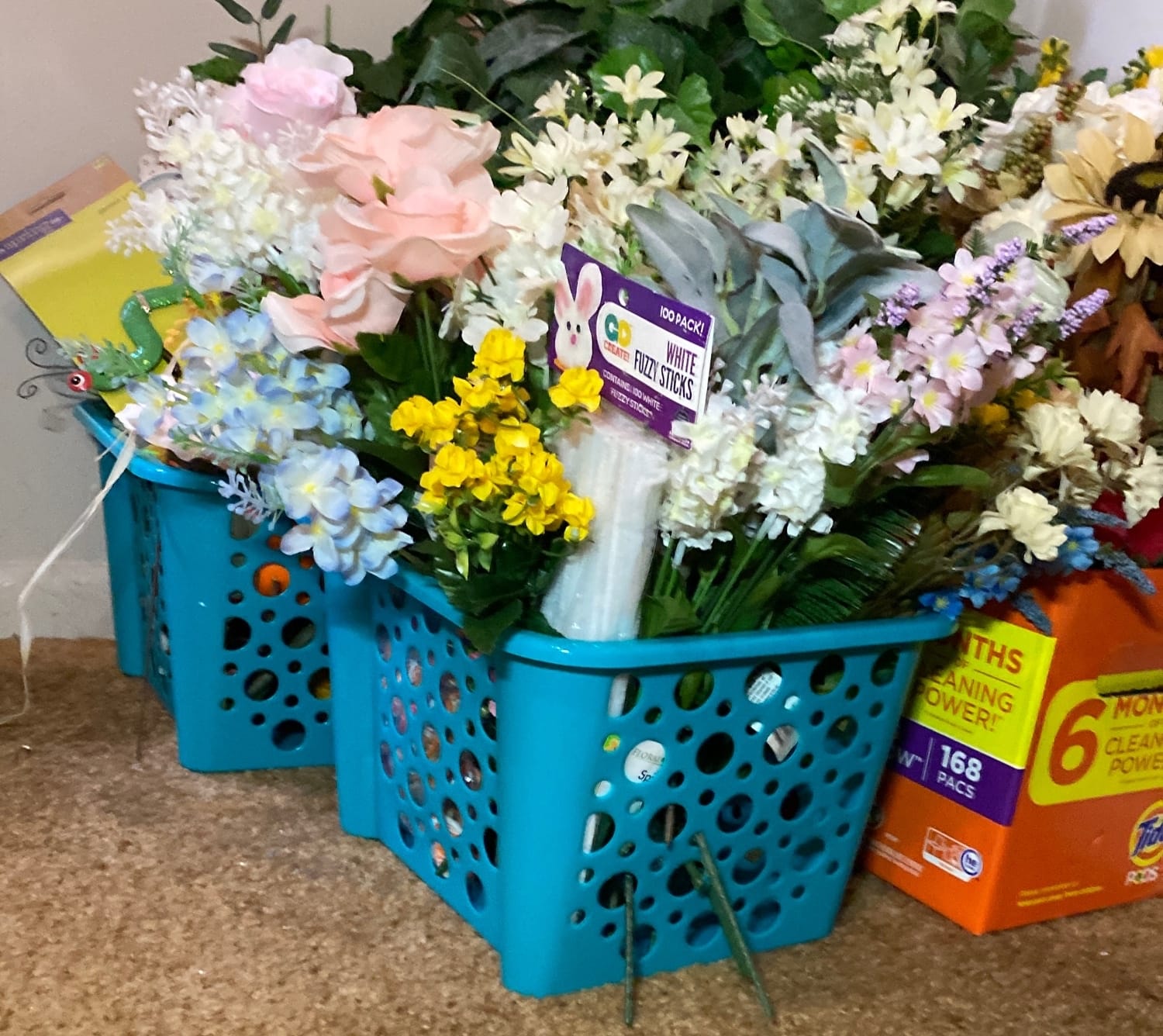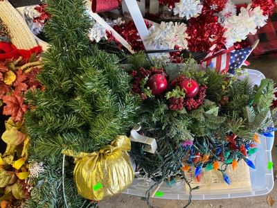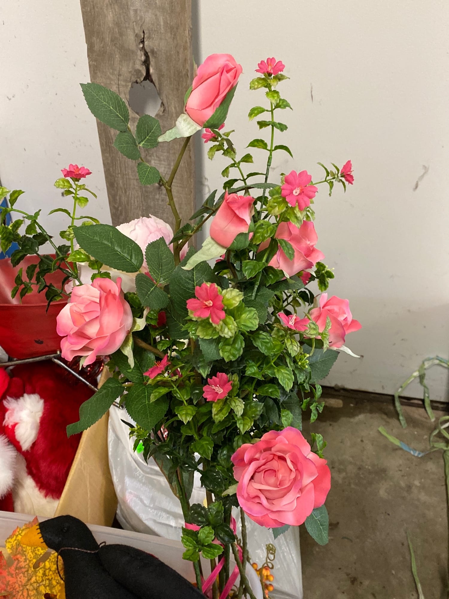 724 Country, faux flowers, garland, holiday decor in plastic tote w/ lid
