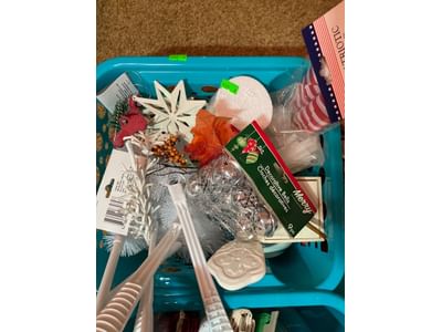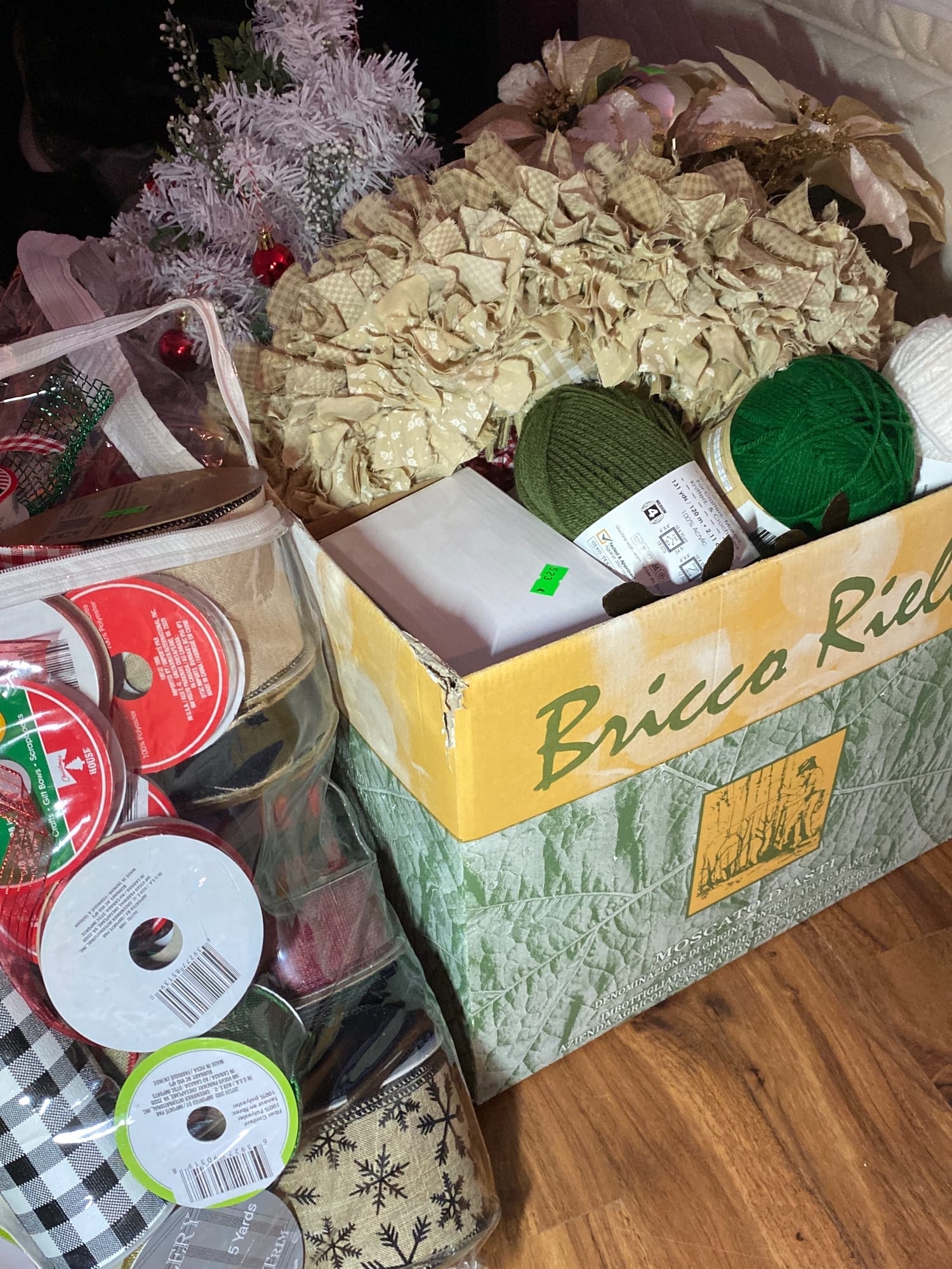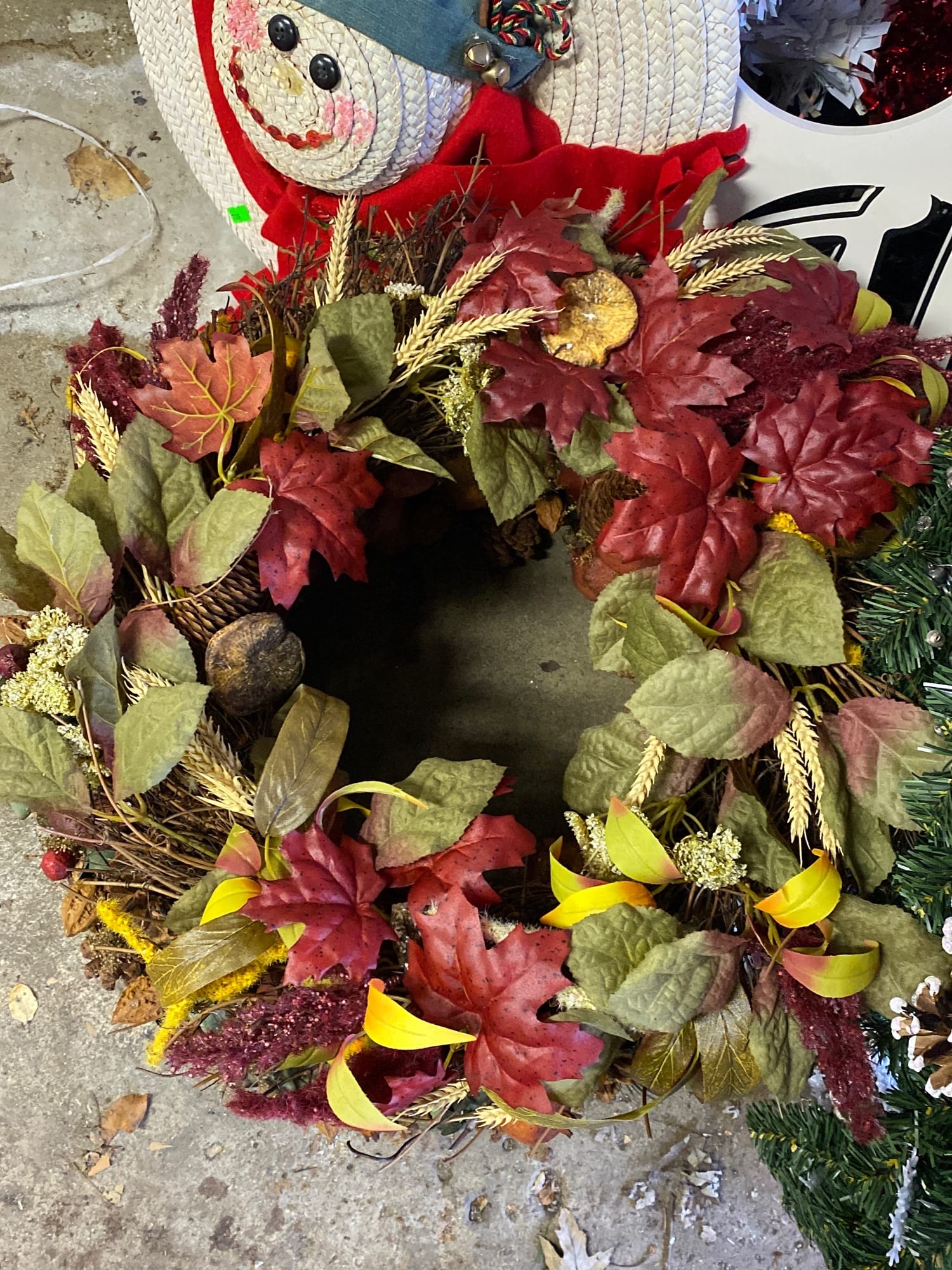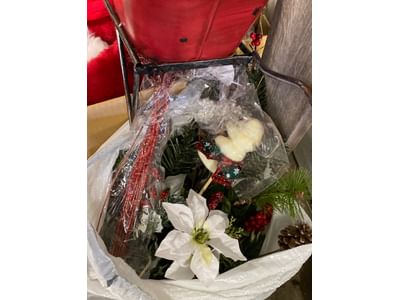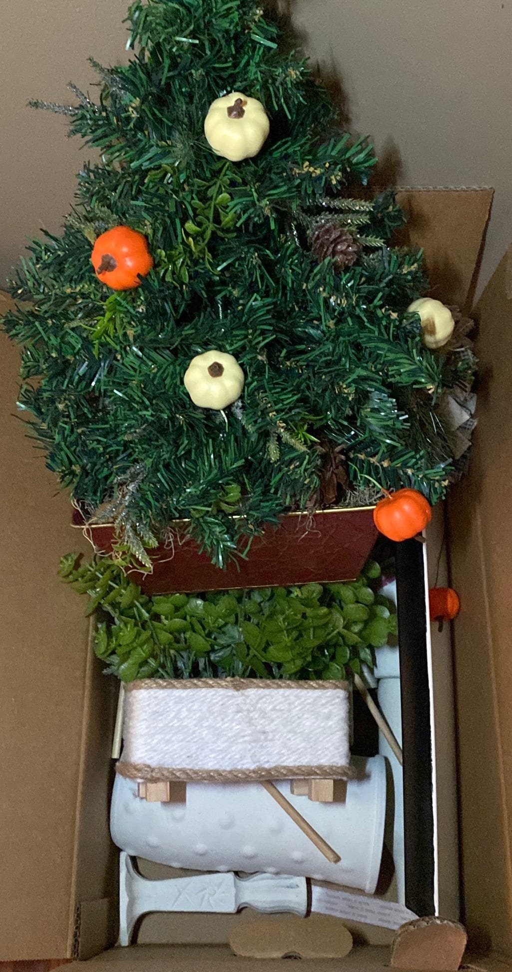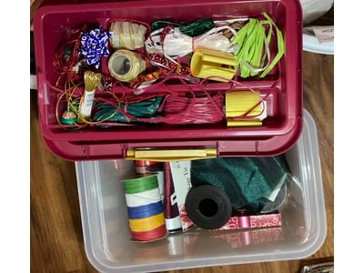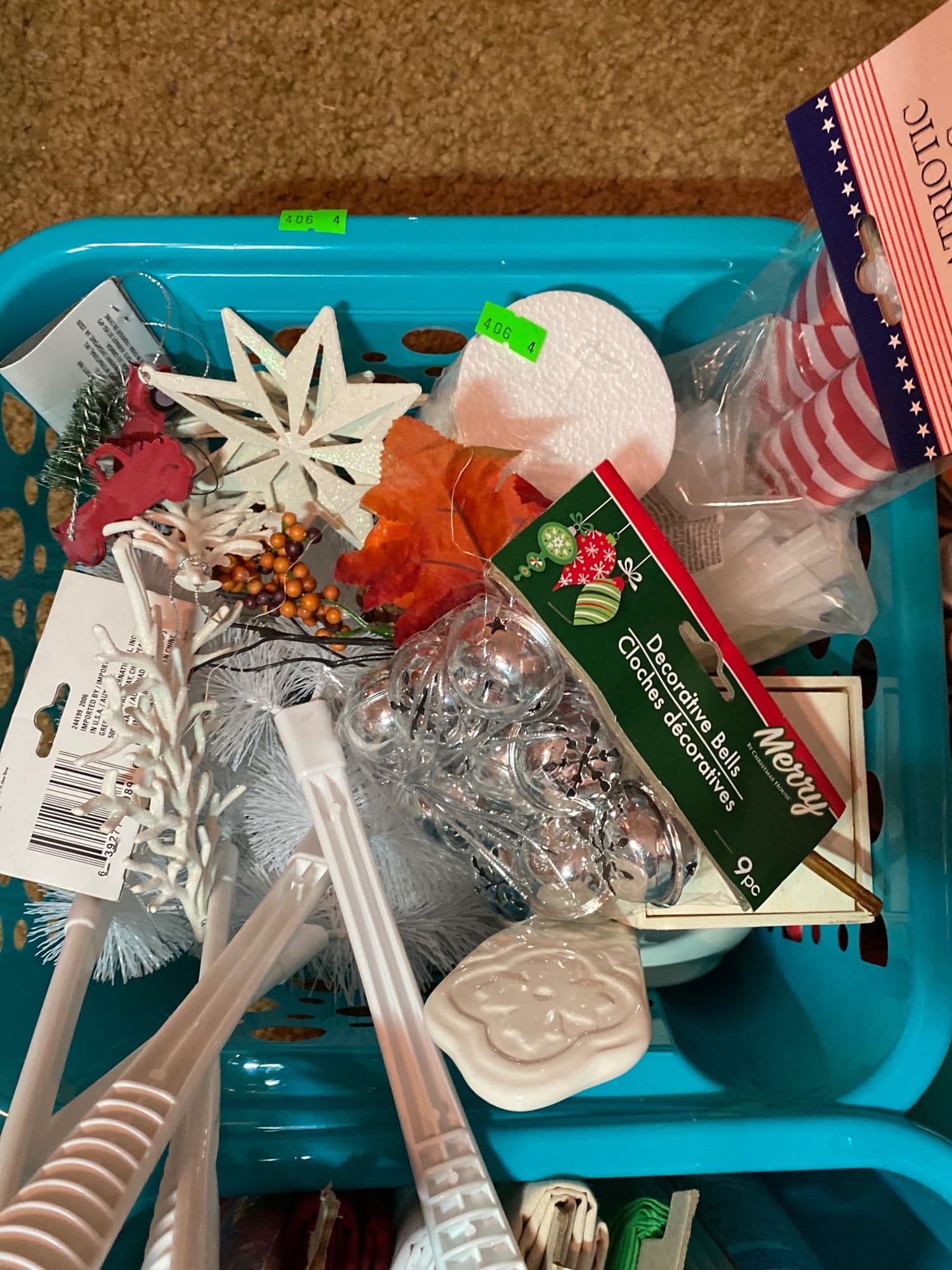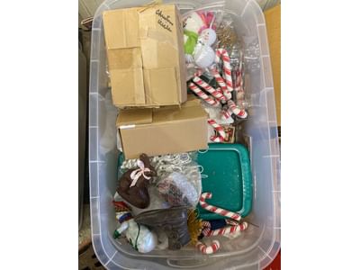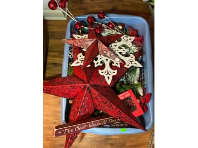 724 Country, faux flowers, garland, holiday decor in plastic tote w/ lid