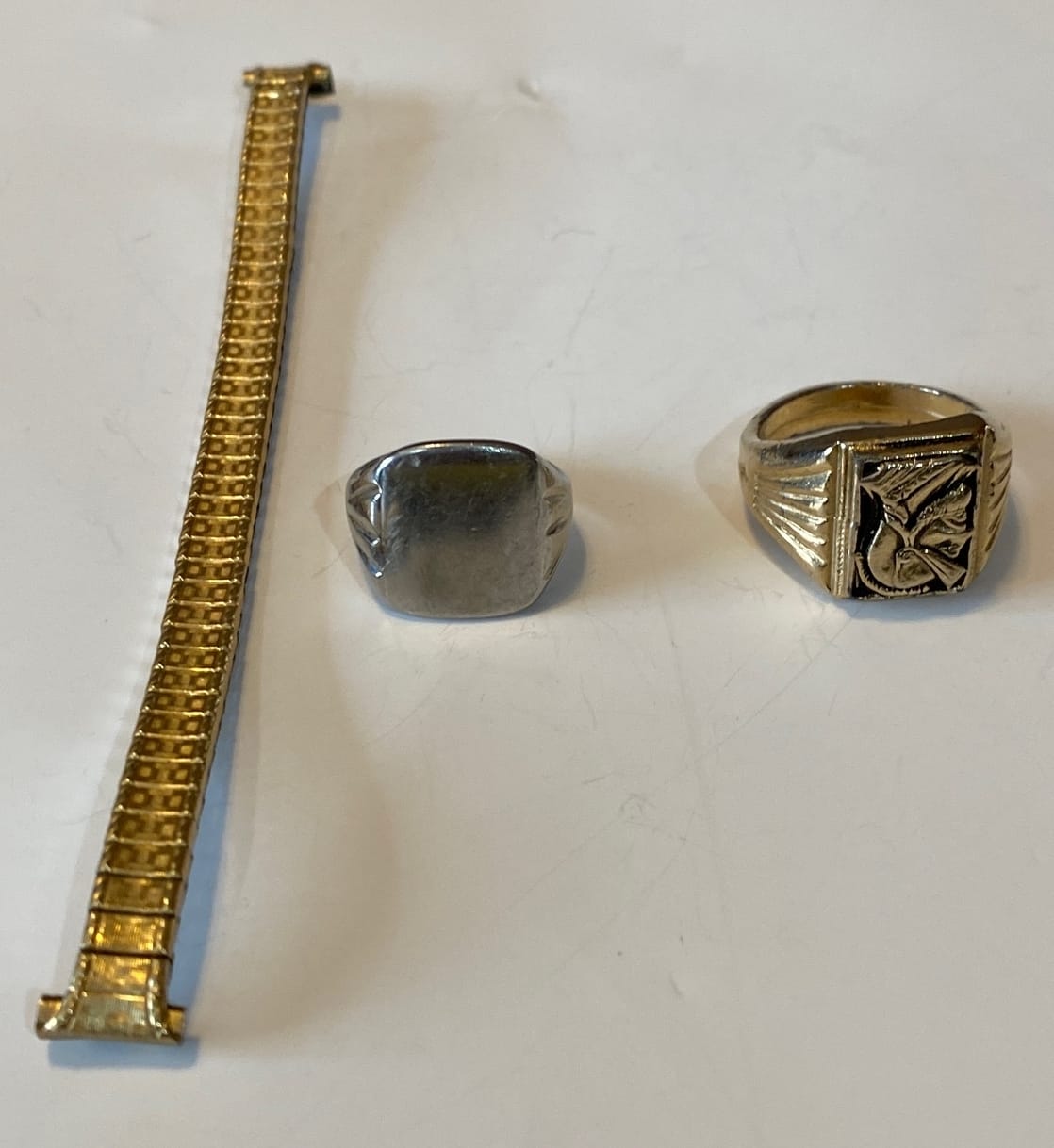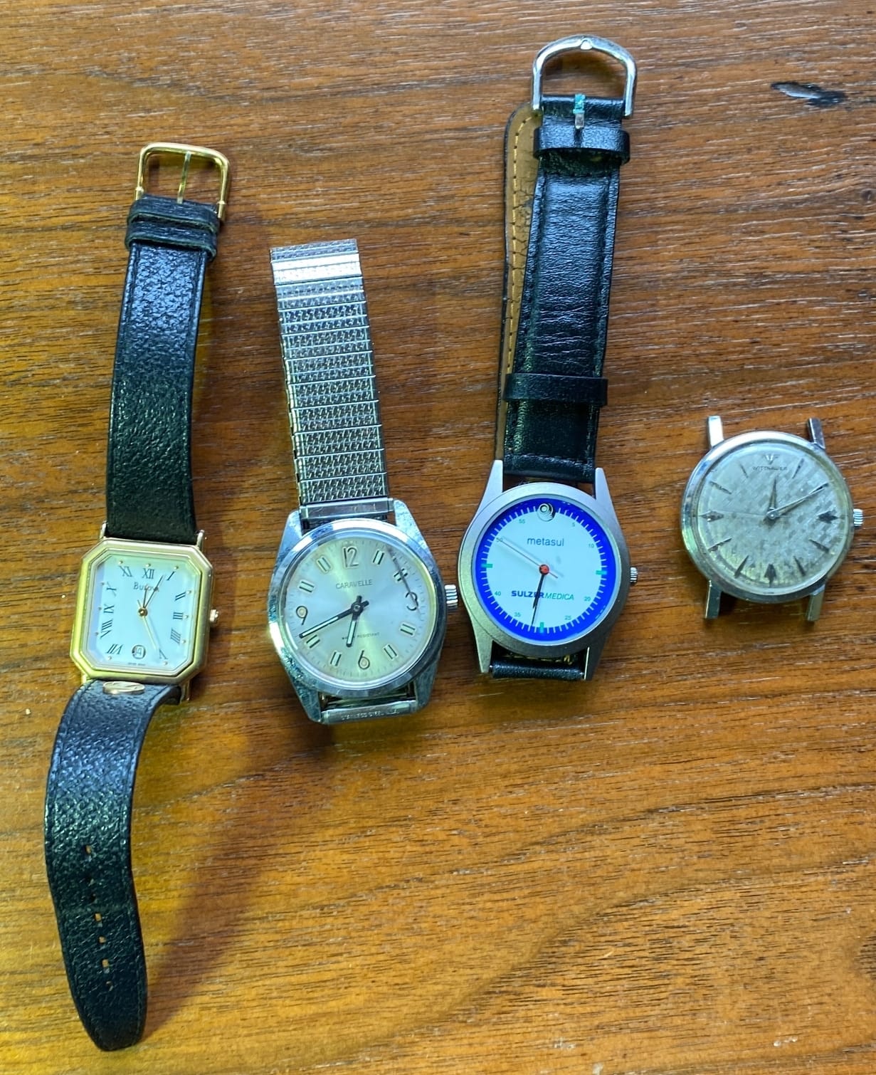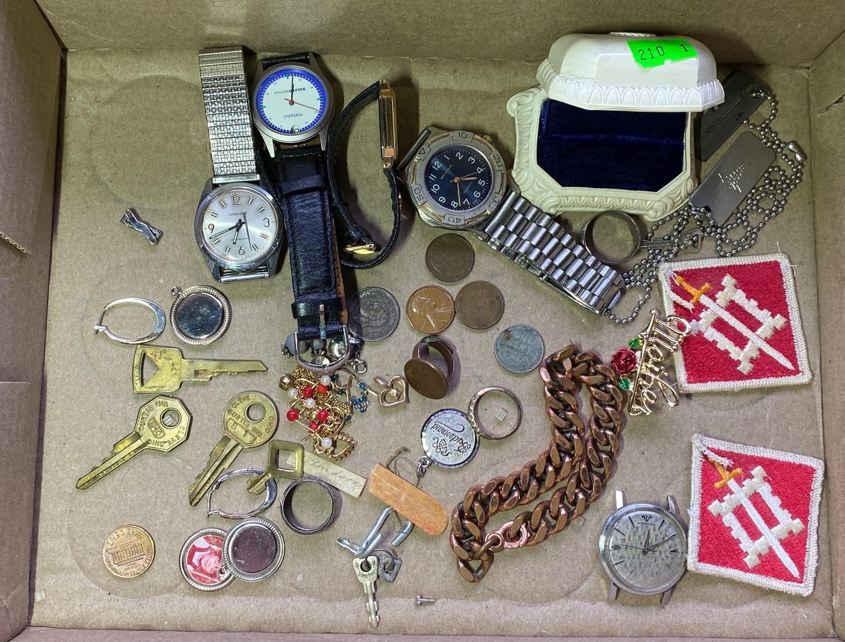 210 Caravelle and Bulova watches, wheat pennies, rings, misc.