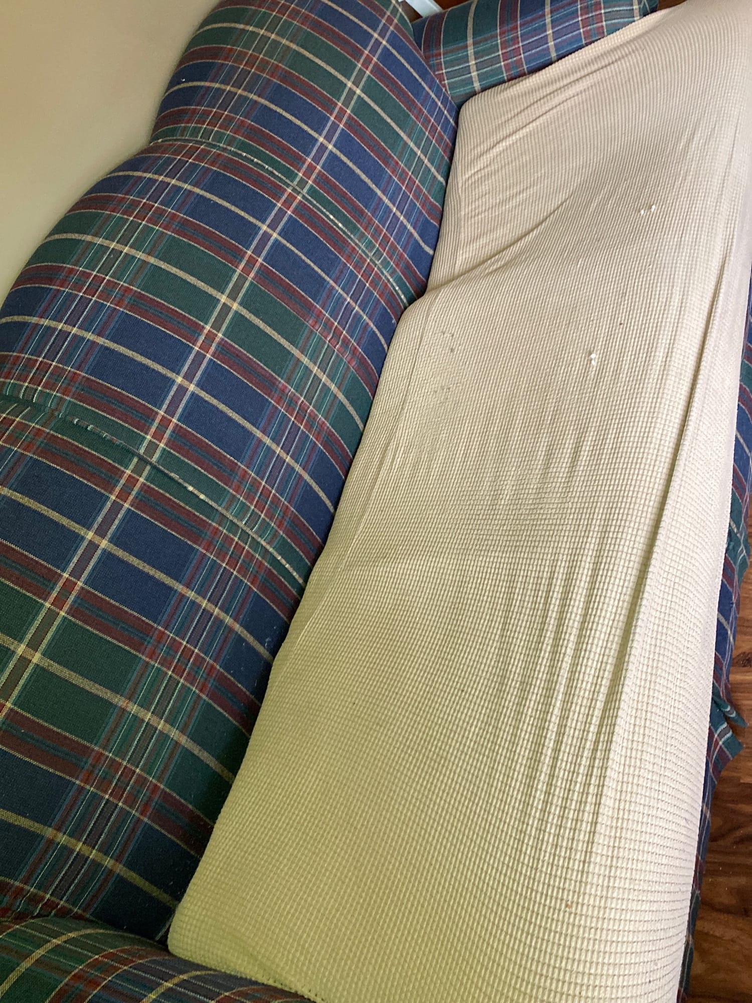 216 Smith Brothers sofa, has tears cushions need recovered 84in