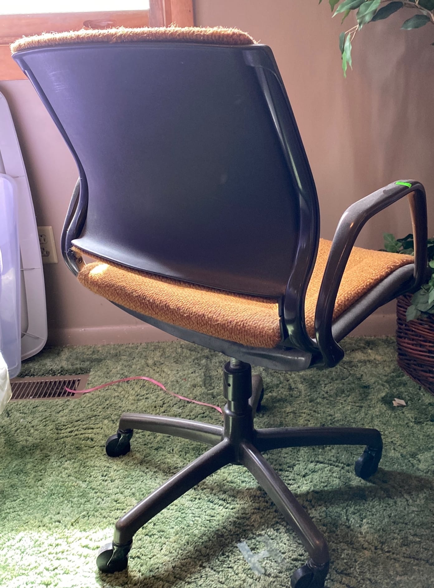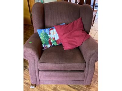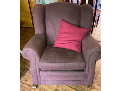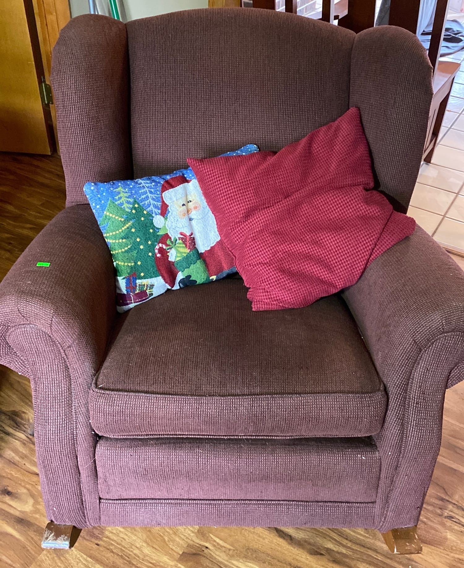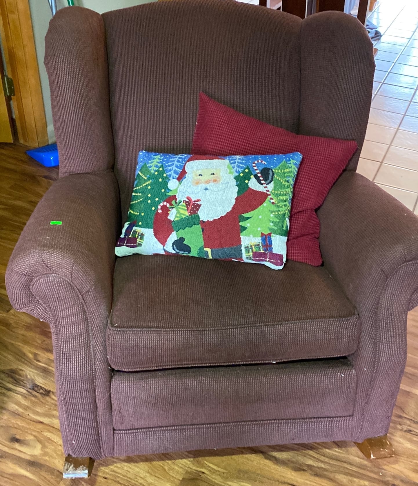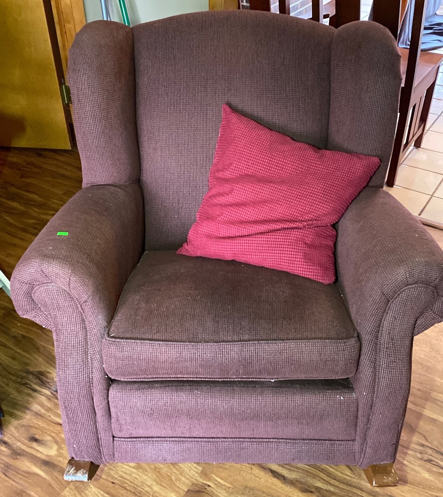 219 Smith Brothers Upholstered rocking chair, lots of wear